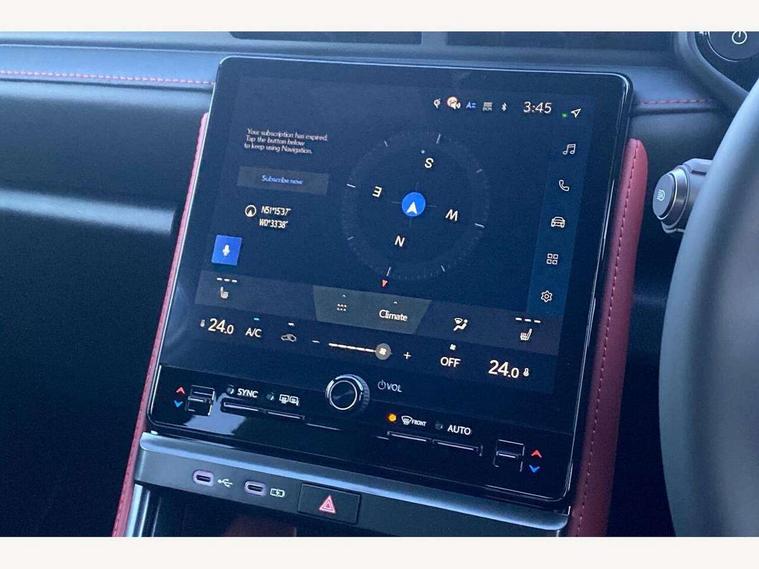 12.3" Digital instrument binnacle, Active Noise Control, Bluetooth connectivity, Cloud navigation, Digital speedometer with high-definition, e-Call (emergency call), Electric power steering, Emergency driving stop system, EV mode, Extended Lexus safety system+ 3 includes blind spot monitor, safe exit assist, camera washer and rear cross traffic alert, Front and rear parking sensors with intelligent clearance sensor, Front and rear smart entry, Lane change flasher function, Lexus link connected services, Lexus safety systems+ 3 includes dynamic radar cruise control, pre collision system day and night, lane tracing assist, road sign assist, Multi info display, Pre-collision system with driver monitor, Push button start, Rear pedestrian detection, Rear view camera, Tachometer/Hybrid system indicator, Tailgate electric lift and close, Tailgate height memory function, Trip meter, Wireless Apple CarPlay and wired Android Auto, Wireless Smartphone charger, Predictive efficient drive, Vehicle dynamic integrated management (VDIM), Vehicle Stability Control (VSC), 1 USB (Type-C) charging ports in bottom of the instrument panel, 1 USB (Type-C) multimedia communication ports in bottom of the instrument panel, 1 USB (Type-C) ports inside front console box, 2 USB (Type-C) ports for charging in rear, 6 speaker audio system, AM/FM and DAB radio, Lexus Link Connect with 9.8" Touchscreen, Rear side monitor, Steering wheel mounted controls, Acoustic glass windscreen, Active brake lights, Auto dimming interior rear view mirror, Auto headlights, Automatic rear flashing hazard lights, Black film door belt moulding, Black outer mirror cover with black ornament, Black resin rocker panel, Black stainless steel moulding side windows frame, Black wheel arches, Chrome plated rear badge LBX, Electric adjustable/heated/auto folding door mirrors, Front and rear electric windows, Full body colour bumpers, Glass breaking sensor, Jet Black bumper and grille garnish, LED 3rd brake light, LED daytime running lights, LED front indicators, LED rear fog light, LED rear lights, Manual levelling headlights, Metallic paint, One touch electric front/rear windows, Power back door without kick function, Privacy UV glass, rear doors and tailgate, Rain sensing wipers, Rear bumper with hidden exhaust, Rear side wing doors, Rear wiper, Roof spoiler, Shark fin antenna, Side indicator lights integrated into door mirrors, Silver plated unified grille, Single bulb LED headlights with auto high beam, Trailer sway control, Wet arm wipers, 12V accessory connector in front console box, 12V socket in front and rear, 2 way manually adjustable front headrests, 2 way manually adjustable rear headrests, 3 bench rear seats in 2nd row, 3 rear headrests, 3 spoke leather trimmed steering wheel, 6 way adjustable front passenger seat, 60/40 split folding rear seat, 8 way electrically adjustable front seats, Aluminium scuff plates, Armrest with sliding cup holder, Automatic air recirculation control, Black roof lining, Black steering wheel and gearshift knob, Centre armrest with storage, Clean air filter with pollen removal and deodoriser, Cup holder in centre console, Driver and passenger door pocket, Driver's lumbar support, Driving position memory for 3 users (seat, steering wheel & door mirrors), Dual zone automatic air conditioning, Front centre console in Wood grain finish, Front headrests, Glovebox, Heated front seats, Humidity sensor for climate control, Illuminated entry system (cabin, footwell, console and door handles), Leather gear lever, LED light in luggage compartment, Luggage cover manually folding, Manually multi adjustable steering column, Memory function for driver seat, Multi colour ambient lighting, Nanoe-X Technology, Organ type accelerator pedal, Red interior accents, Remote climate control, Semi-aniline leather upholstery, Sequential shift and paddles, Single passenger seat, Sport front seats, Storage tray under audio panel and lower tray, Synthetic leather steering wheel, Tahara door panel finish, Tahara upholstered knee pads on front centre console, Touch Sensor Buttons on Steering Wheel, Tsuyasumi interior ornamentaion, Under deck storage, Vibrant edition floor mats, 2 x Isofix child rear seat restraints, 3 point ELR (Emergency Locking Retractor) front seat belt with pretensioners, 3x3 point rear seat belts, ABS/EBD, Active Traction Control (TRC), Adjustable seatbelt anchor points, AVAS - Acoustic Vehicle Alerting System, Dark rose seatbelt, Driver and front passenger side airbags, Driver and front passenger single stage airbags, Driver and passenger seatbelt not fastened - visual and audible warning, Driver knee airbag, E-Latch electric door release, Electronic parking brake, Electronically controlled braking regeneration, ESP, Front and rear curtain shield airbags, Front centre airbag, Front wheel brake - 15inch discs, Hill assist control, Manual rear child locks, Passenger airbag cut-off switch, Rear wheel brake - 15inch discs, Tyre pressure monitoring system, Alarm/anti-theft (with siren and 2 sensors), Auto door locking when driving, Double door lock, E-latch door lock system, Engine immobiliser, Intrusion sensor, Smart keyless entry, Thatcham approved locking wheel nuts, Tilt sensors, Two motion door lock with double lock, VIN etching, Wireless door lock, Double line Tatami stitch door trim ornament, Double line Tatami stitch with double stitch on bolsters, Rear quarter panel in Vibrant edition film, Satin paint door inlays, 18" Matt black alloy wheels, Tyre repair kit,