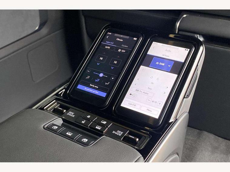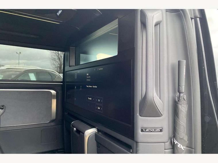 5 Drive modes - EV/Normal/Sport/Rear Comfort/Custom, Active cruise control, Auto remote parking, Blind spot monitoring, Driver monitoring camera, E-call, Front cross traffic assist, Intelligent park assist, Lane change assist, Lexus link pro with 14" touchscreen, Lexus safety system + 3, Panoramic view monitor, PAS, Road sign assist - RSA, Smart entry and push button start, Two wireless charging boxes in rear cabin, Wireless charging pad for front seats, 220v AC Inverter, AVS - Adaptive variable suspension, Mark Levinson 3D surround sound system with 23 speakers, Rear 48-inch monitor with 2 HDMI inputs, Daytime running lights, Fixed moon roof, Heated, auto-folding outside mirrors with memory function, and turn indicators, LED headlights with AHS, Rear side wing doors, Third brake light, 2 Fully reclining rear seats with swede inserts, 2 seat bench in 2nd row, Air type lumbar support for rear first row seats, Electric sunshade, Electrically adjustable steering column, Front and rear 2 Zone air conditioning with Nanoe-x technology, Front and rear cabin divider screen, Front and rear head restraints, Heated and ventilated front seats, Heated and ventilated rear seats, Heated leather steering wheel, Illuminated entry system, Massage rear seats with seven programs and five levels of pressure, each program lasting 15 minutes, Power adjustable front seats with driver memory and driver 4 way lumbar support, Rear refrigerator, Semi-aniline leather upholstery, Single front passenger seat, Stowable table in outer side armrest for rear passengers, Touch steering switches, Child locks on rear doors, Pre collision system, Two 3 point rear seatbelts, Digital key, 19" Alloy wheels,