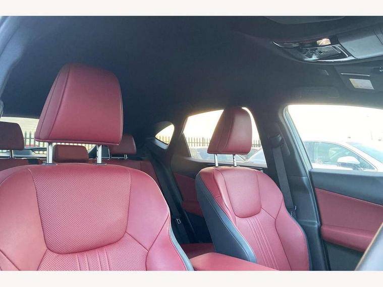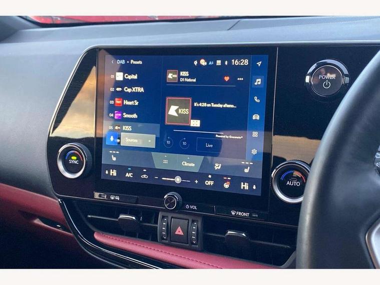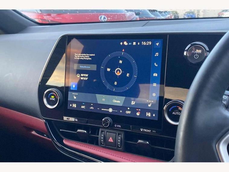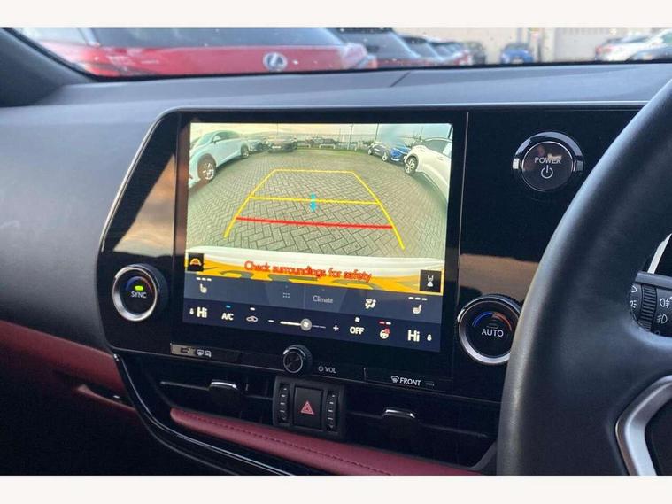 7" display in instrument binnacle, Blind spot monitoring with rear cross traffic alert, Bluetooth telephone connectivity, eCall emergency system, Electric speed sensitive power steering, Intelligent parking sensors - 4 front and 4 rear with object and pedestrain detection, Lane change flasher function, Lexus link connect - Cloud based navigation, cloud based voice assistant, always online and 9.8" VGA touchscreen, Push button starter, Reversing camera with back guidelines, Service interval indicator, Tailgate, Wireless Apple CarPlay/Android Auto, Wireless Smartphone charger, 6.6 kW onboard charger, All Wheel Drive (AWD), Hybrid automatic transmission, Vehicle Dynamics Integrated Management (VDIM), Vehicle Stability Control (VSC), 10 speakers, 4 USB ports - 2 front, one USB C, 2 rear USB C, DAB Digital radio, Auto dimming interior rear view mirror, Automatic headlights, Black roof, Double hidden exhaust pipes, Front and rear one touch power windows, with anti-jam protection, Heated and auto folding door mirrors, Illuminated door handles with puddle light, LED brake lights and rear lights with emergency brake signal, LED cornering lights, LED daytime running lights, LED front fog lights, LED Indicators, LED low beam and Hi-beam headlight, Power back door system, Privacy glass, rear doors and tailgate, Rain sensor windscreen wipers, Rear side wing doors, Rear wiper, Roof rails, 12V accessory port centre console and luggage compartment, 2 cupholders in front centre console, 2 way electrical lumbar adjustment for driver, 2 x fixed shopping bag hooks in boot, 2 x sun visors with vanity mirror and lamp, 3 seat bench in 2nd row, 4 x tie down hooks in the boot, 60/40 split folding rear seat, 8 way driver/passenger electrically adjustable front seats, Adjustable rear seat backrest, Ambient light in 64 colours, Card holder installed in driver and passengers sun visors, Centre armrest with storage box, Dual climate control air conditioning system, Front and rear head restraints, Front and rear textile carpet mats, Front passenger seat, Heated front seats, Heated steering wheel, LED interior illumination, Power adjustable leather steering wheel with paddle shifts, Premium Tahara leather upholstery, Rear centre armrest with 2 cupholders, Whiplash Injury Lessening (WIL) feature (active headrest) for seats, 3 point ELR front seatbelts with pretensioners, 3x3 point rear seat belts, ABS, Adjustable seat belt anchor points, Driver and front passenger 2 stage airbag, Driver/front passenger side airbags, Drivers knee airbag, E-Latch with safe exit assist, EBD + Brake Assist, ECB (Electronically Controlled Brake System), Electronic parking brake, Front and rear curtain shield airbags, Front center airbag, Front passenger seat cushion airbag, Hill assist control, Lexus safety system - dynamic radar cruise control, pre collision system day and night, lane tracing assist, road sign, automatic high beam, OTA, Manual rear child locks, Passenger airbag cut-off device, Traction control, Tyre pressure warning, Anti-theft system with alarm, intrusion sensor, glass breakage sensor, tilt sensor and engine immobiliser, Locking wheel nuts, Smart entry ( front/rear/boot), Speed sensitive auto door locking, Ultra Wide Band (UWB) Anti-theft system, VIN Window etching, 3D prism black Inlay, Organic inlay, Tyre repair kit,