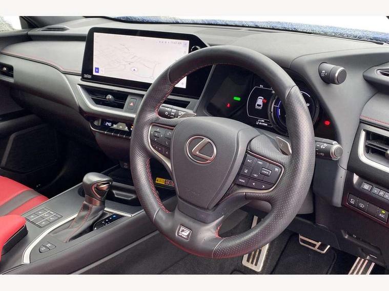4 driving modes EV/Eco/Normal/Sport, 7" Lexus media display, 8" LFA inspired TFT meters with movable meter ring, Analogue clock with GPS function, Apple car play/Android Auto, Compatible mobile phone bluetooth with audio streaming, E-call, Electric power steering (EPS) with speed sensitive features, Front and rear parking sensor with intelligent clearance sonar, Lane change flasher function, Lexus link connected services, Lexus navigation system, Lexus safety systems + includes dynamic radar cruise control, pre collision system day and night, lane tracing assist, road sign assist, Push button start, Remote touch interface, Reversing camera with back guide lines, Trip computer, F Sport suspension tuning and rear performance dampers, Vehicle Dynamics Integrated Management (VDIM), Vehicle Stability Control (VSC), 2 front USB and 2 rear USB charging points, 6 speakers, AM/FM and DAB radio, AUX socket with VTR compatibility, CD player, Acoustic windscreen, Aero stabilising arch mouldings, Aero stabilising rear lights, Aero ventilated wheels, Aluminium roof rails, Auto dimming interior rear view mirror, Bi-LED (low and high beam) headlights with Auto High Beam (AHB), Black roof drip mouldings, Body adhesive, laser screw welding and laser brazed roof structure, Body coloured bumpers, Colour coded wheel arches, Electric adjustable/heated door mirrors, F SPORT exterior styling consists of black Mesh front grille, enhanced side rockers, metallic coated front bumper and F SPORT badging, Front and rear one touch power windows, with anti-jam protection, Headlight cleaners, LED cornering headlights, LED daytime running lights, LED front and rear fog lights, LED tail lights, LED third brake light, Privacy glass, rear doors and tailgate, Rain sensor windscreen wipers, Rear side wing doors, Rear wiper, Shark fin roof aerial, Single hidden exhaust pipe, Towing preparation, Variable front intermittent wipers, 12V accessory port centre console and luggage compartment, 2 cup holders in the front and rear centre console, 2 way electrical lumbar adjustment for driver, 2 x folding shopping bag hooks in boot, 2 x sun visors with vanity mirror and lamp, 3 seat bench in 2nd row, 4 x tie down hooks in the boot, 5 headrests, 60/40 split folding rear seat, 8 way driver/passenger electrically adjustable front seats, Active sound control, Card holder installed in driver and passengers sun visors, Centre armrest with storage, Driver and passenger door pocket, Dual zone electronic climate control + Nano-E humidity sensor, F Sport aluminium sports pedals, F SPORT dimpled leather gear lever, F SPORT front seat headrest adjustable forwards and backwards, F Sport interior styling, F Sport leather steering wheel with paddle shifts, Fabric/Tahara leather upholstery, Glovebox, Heated steering wheel, Illuminated entry system, LED interior illumination, Map pockets in the rear of passenger's front seat, Rear air vents with 2 USB chargers, Rear armrest with 2 cupholders, Single front passenger seat, Storage tray under audio panel, Textile carpet mats, Tilt/reach adjustable steering column, Under deck storage, Under desk side storage, 2 x Isofix child rear seat restraints, 3x3 point rear seatbelts, Anti-lock braking system (ABS), BAS (Brake Assist System), Driver and front passenger 2 stage airbag, Driver and front passenger knee airbag, Driver/front passenger side airbags, EBD - Electronic brakeforce distribution, ECB (Electronically Controlled Brake System), Electric child locks, Electric parking brake, Front adjustable seatbelt anchor points, Front and rear curtain shield airbags, Front outer seatbelt+pre-tensioners, force limiter+tension reduction: 3-point with active safety link to PCS, Hill start assist control (HAC), Passenger airbag cut-off device, Rear outer seatbelt+pre-tensioners, force limiter+tension reduction: 3-point with active safety link to PCS, Centre belt w/o pre tensioner+force limiter, Secondary Collision Brake (SCB), TRC (Traction Control), Tyre pressure warning, 2 x remote key fobs, Anti theft system : Alarm instruction sensor, glass breakage sensor and engine immobiliser, Locking wheel nuts, Remote central door locking, Speed sensitive auto door locking, Two motion door lock with double lock, VIN Window etching, 18" F Sport alloy wheels with run flat tyres,