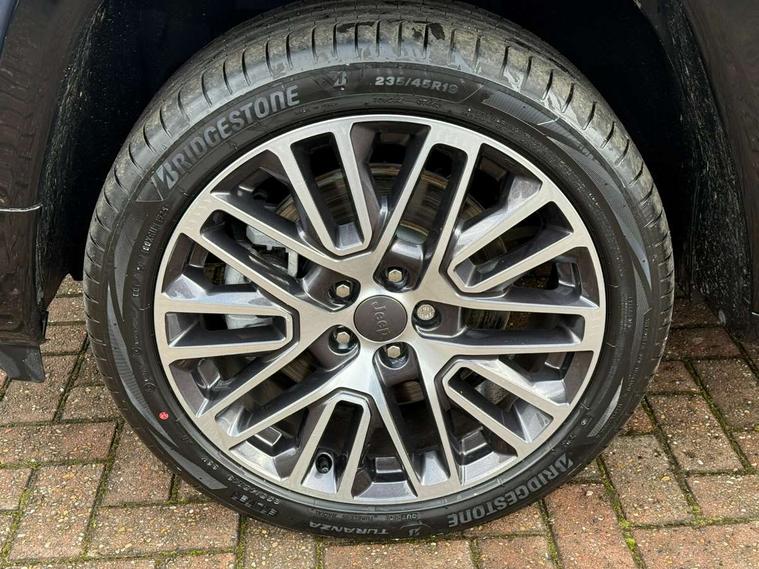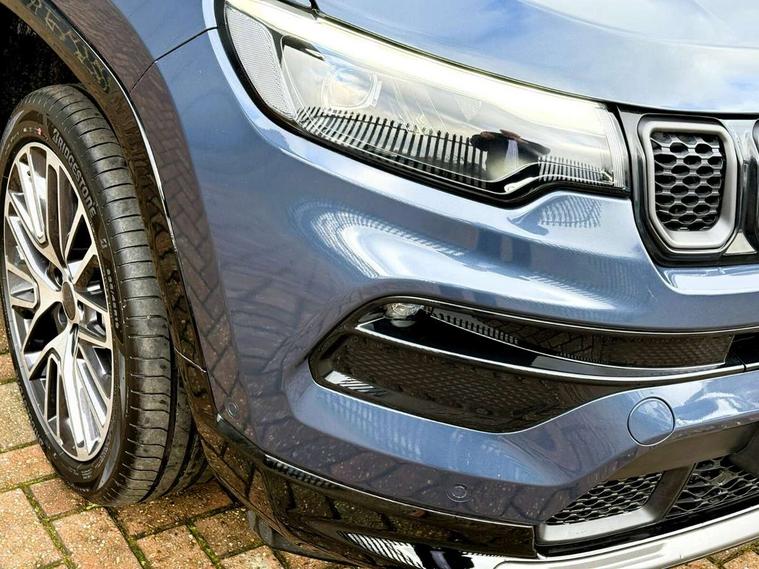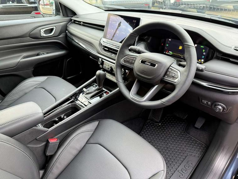 Active lane management, Active speed limiting device, Adaptive cruise control with Stop and Go, Digital speedometer switchable from MPH to KPH, Drowsy driver detection, E-call, Electric power steering, English owners handbook, Extended Guide in English, Full speed forward collision warning plus mitigation, Instrument cluster- 10.25" TFT Colour display, Instrument panel, Intelligent speed assist, Media centre electronic storage, Outside temperature display, Parallel and perpendicular park assist with exit, Parksense front and rear park assist system, Selec terrain system with sport mode, Tachometer, TBM - Connected services (e-call), Traffic sign recognition (TSR), United Kingdom equipment group, Vehicle information centre, Wireless charging pad, Battery run - down protection, Battery skid plate, CO2 improvement, E- launch, E-creeping, E-Parking, E-Queueing, Electric drive, Electronic roll mitigation, Mode 3 cable, 6 speakers, Bluetooth audio streaming, DAB Digital radio, Global telematics box module (TBM), Media hub (USB A-C TYPE), Steering wheel mounted audio controls, USB A and C type - second row, USB host flip, Wireless CarPlay/Android Auto, 4XE badge/e-Hybrid badge, Accent/body colour bumpers, Aspherical driver's exterior mirror, Auto dimming rear view mirror, Automatic headlights, Belly pan - underbody protection, Black mic grille with chrome rings, Black painted lower exterior finish, Black side roof rails, Body colour door handles, Chrome window surround, Chromed DLO, Coastdown and run-in optimization, Compass badge, Daytime running lights, Deep tint privacy glass, Door mirrors: power adjustable and folding, heated with auto folding function and indicators, Exterior door mirrors with heating element, Front fascia/belly pan skid plate, Gloss black exterior door mirrors, Gloss black fascias, Headlamp leveling system, Headlamp off time delay, Heated rear window, Hood decal, Jeep badge, LED 3rd brake light, LED front fog lamps, LED projector headlamps, LED rear lights, LED tail lights, Lower bodyside cladding in black, Manual day/night rear view mirror, Partial body cover protection, Power windows - driver and passenger express up/down, Rain sensitive windscreen wipers, Rear fascia, Rear fog lamps, Rear Jeep Badge, Rear side wing doors, Rear windshield washer/wiper, Removable short mast antenna, S badge, Smartbeam headlights, Summit version, Sunscreen glass, Trailer sway damping, UK front number plate bracket, Windshield wiper de-icer, 12V auxiliary power outlet - 2nd row, 3 rear seat head restraints, 3 seat bench in 2nd row, 4 way power lumbar driver seat, 4 way power lumbar passenger seat, 60/40 split folding rear seat, 8 way power adjust front passenger seat, 8 way power adjustable driver seat, All weather floormats with Jeep logo, Cargo area lights, Cargo compartment carpet, Cargo compartment cover, Cargo compartment organiser, Cargo load floor, Cargo tie down loops, Centre console with sliding armrest, Centre rear 3 point seat belt, Child seat anchorage points, Coat hooks, Dash insulation, Driver assist handle, Driver seat memory function, Dual zone temperature control with preconditioning capability and heater, Fold flat front passenger seat, Front head restraints, Front height-adjust seatbelts, Front map pocket LED lamps, Front map reading lights, Front seats back map pockets, Full length centre console, Glovebox light, Glovebox with damped soft close door, Heated front seats, Heated steering wheel, Illuminated door entry system, Interior door handle LED lamps, Internal rear grab handles, Leather upholstery, Leather wrapped gear knob, Leather wrapped steering wheel, No Alternator, Overhead console, Overhead dome LED lamps, Passenger assist handles, Rear air conditioning and heater vents, Rear seat armrest with cupholder, Single front passenger seat, Spare wheel storage insulation, Sunvisors with illuminated vanity mirrors, Tilt/telescopic steering column, Ventilated front seats, AEB with pedestrian and cyclist detection, All speed traction control, Automatic electronic hold brake, Driver's front airbag, Dual note electric horns, Dual tyre pressure - turn changes, Electrical steering column shaft lock, Electronic parking brake, Electronic stability control, Energy recovery system, Front and rear side curtain airbags, Front passenger airbag, Front side airbags, Hill descent control, Hill start assist, Jeep call assistance label, Passenger airbag deactivation switch, Rain brake support, Rear door child protection locks, Rear seat belt reminder, Tyre pressure monitoring display, Capless fuel filler, Occupant detection system, Passive entry and keyless go (Key fob without panic button), Power locking fuel filler door, Premium security alarm, UK Warranty, Front and rear air vents, Speakers in satin chrome silver, 19" diamond cut painted granite crystal medium gloss alloy wheels with summer tyre class A+, Fix and Go tyre label - GROUP B,