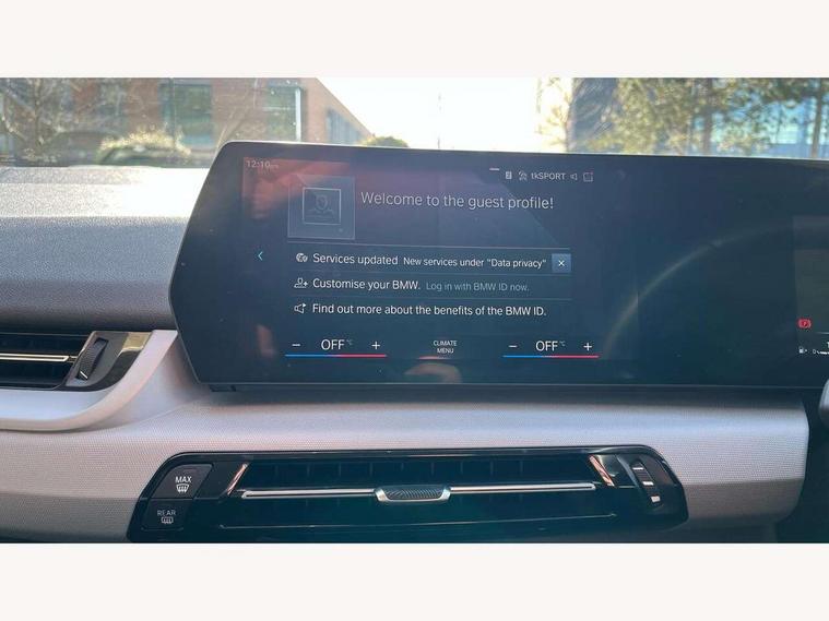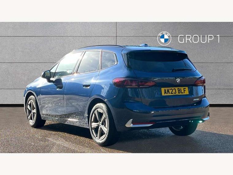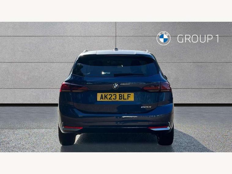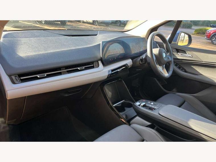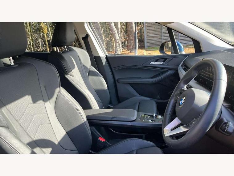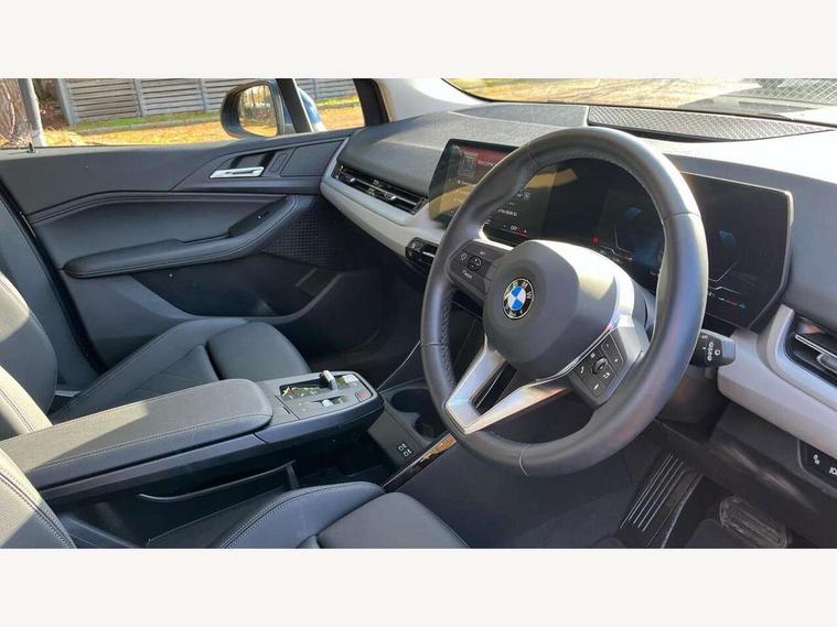Active Guard incl speed limiting and lane departure functions with auto steering, and front collision warning with brake intervention, Automatic powered tailgate, Automatic start/stop function, BMW Online services, BMW Teleservices, Brake pad wear indicator in front and rear, Condition based service, Drive off assistant, Flat air vents on instrument panel in high gloss black, adjustable slats with elements in pearl chrome, iDrive controller, Language version English, On board computer - average speed+fuel consumption, service interval, clock/date, odometer/trip meter, outside temperature display and ice warning, Parking assistant with active park distance control, reversing assistant, lateral parking aid and rear view camera, Servotronic variable electric power steering (EPS), Smartphone integration, Widescreen display, Drive performance control with ECO PRO comfort + sport mode, Gear selector switch with toggle operation, Petrol Particulate Filter, Standard suspension, Steptronic transmission with double clutch, 2x USB Type C ports in front centre console for charging and data transfer, 2x USB Type C ports in rear centre console for charging, DAB Digital radio, Welcome sound upon opening of the front driver or passenger door, Automatic headlights, BMW emblem, engine compartment lid and tailgate, BMW radiator grille with grille struts, end face black high-gloss, radiator grille frame chrome high-gloss, Body colour sill covers, Body coloured door mirror caps, Contoured rear roof spoiler in vehicle colour with side aeroblades in black high-gloss, Driver side exterior mirror lighting with BMW logo projection, Dynamic brake lights, Electric adjustable heated door mirrors, Electric windows - front and rear, with open/close fingertip control, anti-trap facility and comfort closing, Folding door handles integrated flush with surface, Front and rear windscreen wipers with heated front washer nozzles, Front bumper cover with air inlet trims for air curtains in matt black, Front door exit lights, Heated rear window, Hidden exhaust pipe, High gloss shadow line, High gloss shadowline roof rails, LED Daytime running lights and parking lights with turn indicators, LED number plate light, LED third brake light in rear spoiler, Manual headlight range control, Matt black roof strips, Model inscription on right tailgate, Rain sensor, Rear bumper cover with two L-shaped trims in Pearl chrome, Rear side wing doors, Shark fin antenna, Trailer stabilisation logic, Visible VIN plate, Welcome lighting, Windscreen washer nozzle for rear view camera, 12V power socket in luggage compartment and front centre console, 12V socket in right side trim panel, 2 bag hooks in luggage compartment, 2 front reading lights, 2 open cup holders in front centre console, 3 seat bench in 2nd row, 40:20:40 split folding rear seat backrests, Ambient lighting front and rear, Automatic two zone climate control air conditioning, Bottle trays in all doors, Child seat ISOFIX attachment for two outer rear seats and front passenger seat with anchorage points, Driver and front passenger sports seats, Footrest and pedals in black plastic, Four grab handles integrated in roof lining, Front and rear door pockets, Front and rear footwell lighting, Front and rear side armrest integrated into door trim, Front and rear velour floor mats in anthracite, Front centre console storage compartment, Front head restraints, Glovebox with light, Height adjustable 3 rear head restraints, Interior door handle recess light on all doors, Luggage compartment lighting, Map pockets, Mechanical rear seats with fore/aft adjustment, Multi-function controls for steering wheel, One piece parcel shelf opens together with tailgate and removable, Rear cloth hooks, Single front passenger seat, Sliding rear seat bench, Steering wheel column manual adjustment, Storage compartment lighting in centre console and storage tray in centre stack, Storage compartment net in left side trim panel, Storage compartment with folding cover under centre console armrest cushion, Sunvisors with illuminated vanity mirrors, Three spoke sport leather steering wheel, Connected pack professional - 2 Series Active Tourer, 3 point seatbelts on all seats, front pyrotechnic belt tensioners, stopper and belt force limiters, rear coded belt buckles, Airbag - Front driver and passenger, front and rear head, front side, curtain head protection, manual deactivation of front passenger airbag possible, Anti lock braking system (ABS) with brake assist, Automatic hold function, BMW emergency call, Brake drying, Braking readiness, Child proof locking system in rear door, Cornering brake control, Crash Sensor - activates hazard/interior lighting + unlocks doors, DSC - Dynamic Stability Control, Dynamic brake control, Dynamic Traction Control - DTC, Electromechanical parking brake, Energy recovery system, Front disc brakes, Integrated braking system, PC iBrake PostCrash approach control warning with light braking function, Rear disc brakes, Tyre pressure monitoring system, Warning triangle and first aid kit, Anti theft alarm system, Closing system with central locking, Engine immobiliser, Locking wheel bolts, Front centre console trim in high gloss black with my mode expressive, BMW mobility tyre sealing system, Reduced rolling resistance tyres,