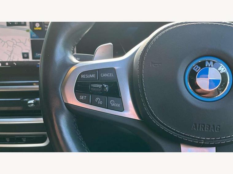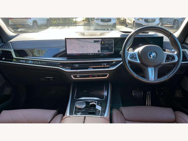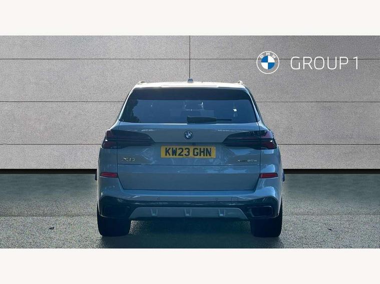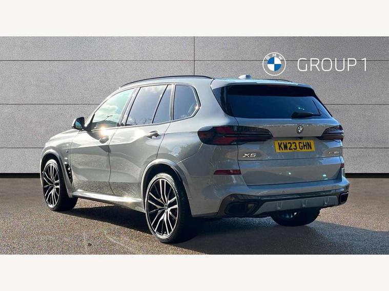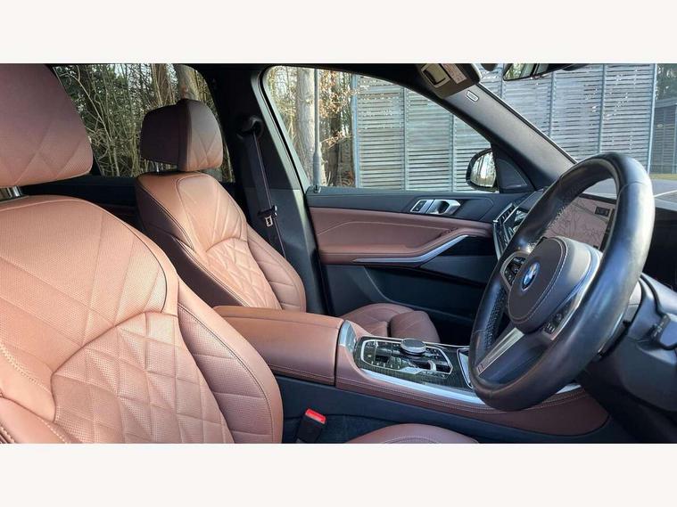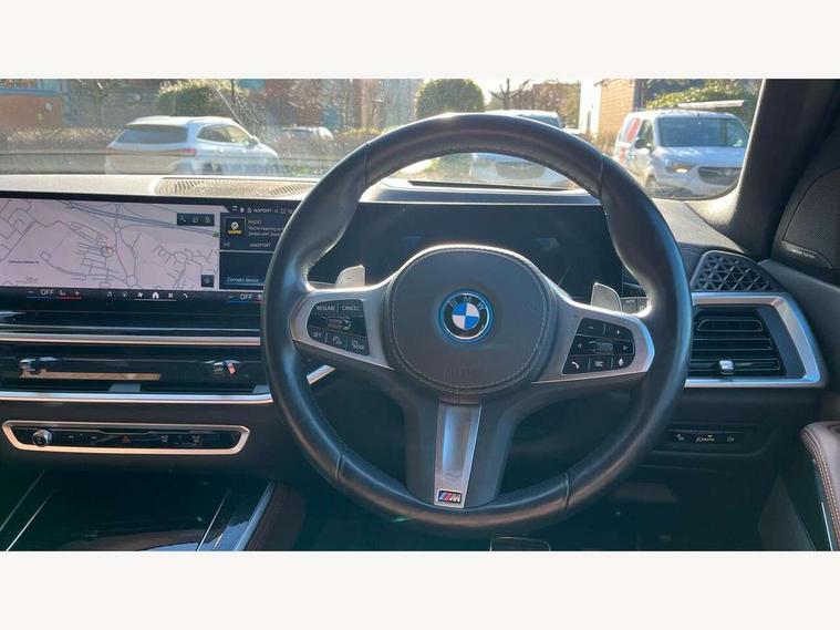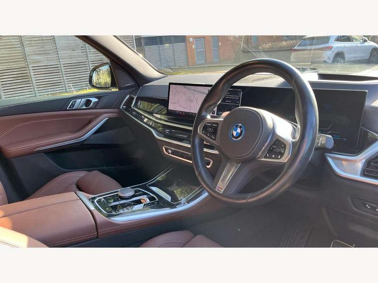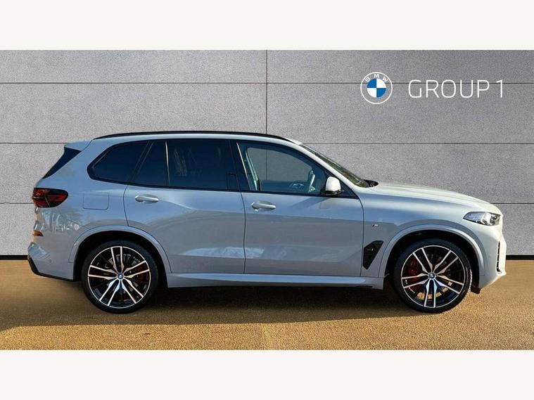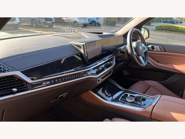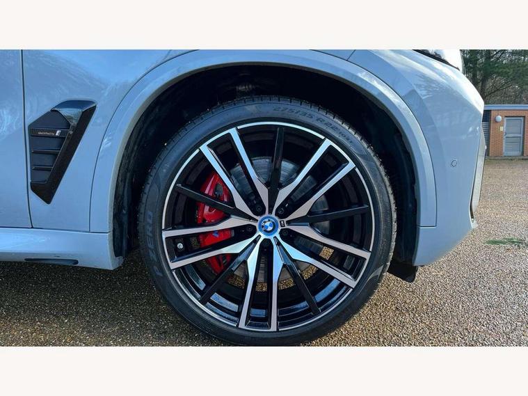 Attentiveness assist, Automatic tailgate operation, BMW ConnectedDrive online services, BMW live cockpit + with curved 12.3 instrument cluster/14.9 central display, nav/Tuner with diversity reception, RDS/4GLTE/remote software upgrade, BMW Teleservices, Condition based service, Cruise control with brake assist, eCall emergency call system, Enhanced bluetooth with wireless charging, Integrated owner's handbook, PAS, Speed limiter, Wi-Fi hotspot, Adaptive 2-axle Front and rear air suspension, Drive performance control with ECO PRO comfort + sport mode, Eight speed steptronic sport automatic transmission and gearshift paddles on the steering wheel, Flexible charger (Mode 2), Hi-Fi loudspeaker system, Adaptive LED Headlights, Front and rear electric windows, High beam assistant, High gloss black shadow line roof rails, LED daytime running lights, Rear side wing doors, Third brake light in rear spoiler, Variable intermittent rear wash/wipe, 12V - Power sockets with 2x centre console and 1x luggage compartment, 3 seat bench in 2nd row, Foldable rear centre armrest with 2 cupholders and storage compartment, Front and rear side armrest integrated into door trim, Headrests for all seats, Luggage compartment separating net, Single front passenger seat, Three spoke sport M leather steering wheel, Velour floormats, Ambient light interior pack - X5, Driving assistant pack with radar based driver assistance system - X5, Expanded exterior mirror pack - X5/X5 M, M aerodynamics pack - X5, 3 rear seatbelts, Acoustic protection for pedestrians, Active protection, Airbags - driver/front passenger, rear and side, first and second row seats head airbags, front passenger seat airbag deactivation + knee airbag, Anti-lock braking system (ABS), Automatic Stability Control (ASC), Brake energy regeneration, Cornering brake control (CBC), Crash sensor activating central locking release, hazard warning lights, fuel cut off, interior lighting + activation of safety battery terminal clamp, DSC - Dynamic Stability Control, Dynamic Traction Control - DTC, Electromechanical parking brake with automatic drive away release and auto hold function, Electronic brake force distribution, Hill start assistant, M Sport blue painted brake calipers with 'M' designation, Mechanical child proof lock on rear doors, Tyre pressure monitoring system, Tyre pressure sensors, Ventilated front and rear disc brakes, Warning triangle and first aid kit, Closing system with central locking, Comfort access system, Locking wheel bolts, Sensatec instrument panel,