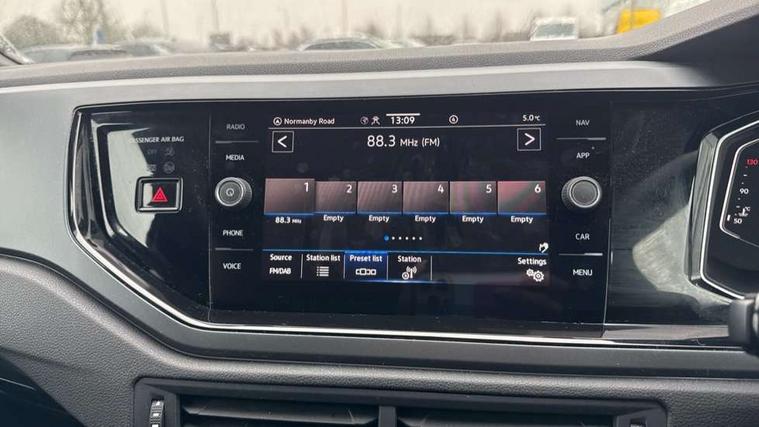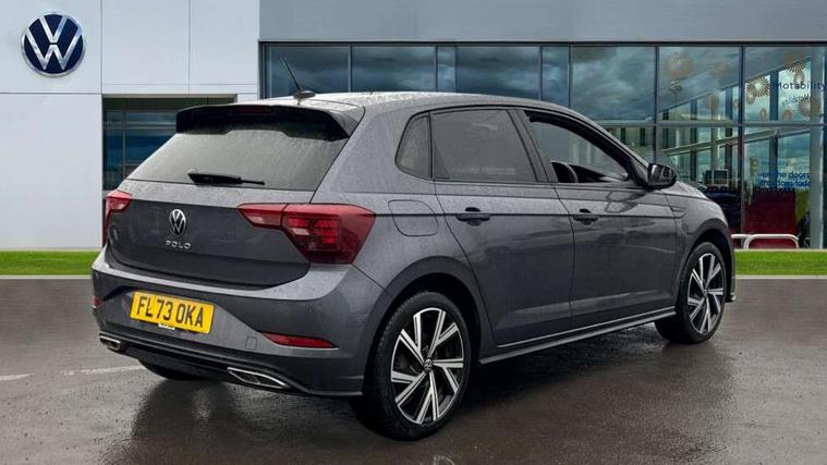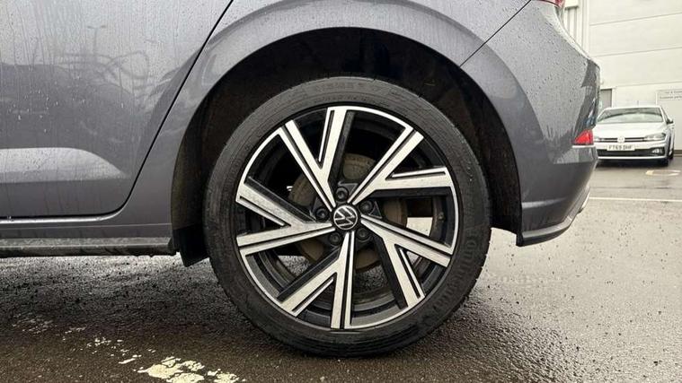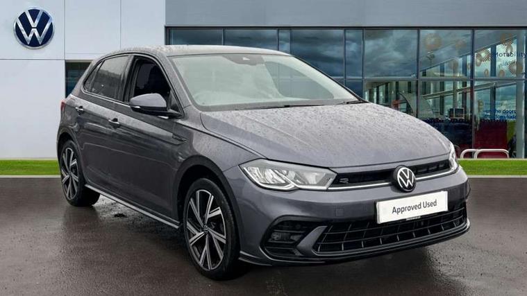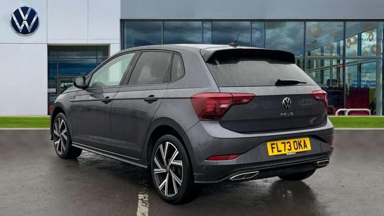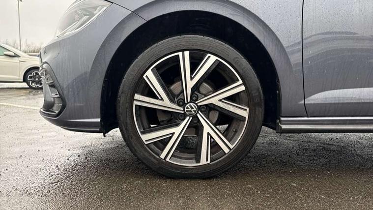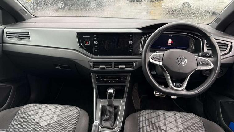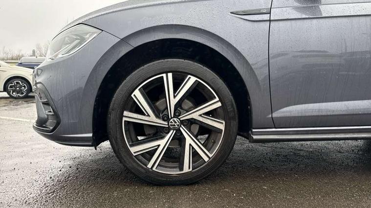 Adaptive cruise control with follow-to-stop and speed limiter, Bluetooth mobile phone interface, Digital Cockpit Pro with 10.25" Display, Driver alert system, Dynamic road sign display, Emergency call service, Power assisted speed sensitive steering, Preparation for We connect and We connect plus, Speedo and rev counter, electronic odometer, trip, service interval display and fuel gauge, Standard rear axle, Travel Assist - Lane keeping system and traffic jam assist, Travel assist including emergency assist, Trip computer, Warning signal and warning light for front and rear seatbelts not fastened, Washer fluid level indicator, Wireless app connect, Front wheel drive, Rear shock absorpion, Start-stop system with battery regeneration (recuperation - energy recovery during braking), DAB Digital radio, Diversity antenna for FM reception, Front and rear 6 speakers, Body colour bumpers, Body colour door handles, Body colour door mirrors, Electric front windows, Front scuff plates with R-Line logo, Heat insulating darkened glass in side and rear windows, Heat insulating glass windscreen, Power folding adjustable/heated exterior mirrors and front passenger exterior mirror lowering function, Rear electric windows, Rear fog light, Rear side wing doors, Rear tinted glass from B-pillar backwards approx 65% tinted, Rear windscreen washer and wiper with interval delay, Third brake light, 12V power socket in centre console, 2 USB-C ports in the front, 2 USB-C charging sockets on the center console in the rear, 3 rear head restraints, 60/40 split folding rear seat and rear seat bench not split, Air care climatronic air conditoning system with active combination filter and 2-zone temperature control, Black roof lining, Chrome plated radiator grille inserts, air vent surrounds and light switch surrounds, Door and side trim panel, Driver and front passenger seat height adjustment, Driver/passenger sunvisors with illuminated vanity mirrors, Front + rear carpet mats in recycled material, Front centre armrest, Front footwell illumination, Front seat backrest storage pockets, Front sports comfort seats, Handbrake lever handle in leather, Headliner in recycled material, Isofix child seat preparation easy-fit (for two outer rear seats, and front passenger seat) compatible with I-size, Karoso artvelours cloth upholstery, Leather trimmed gear knob, LED interior light with switch off delay and dimmer, 2 reading lights front and rear, Luggage compartment cover, Luggage compartment floor, Luggage compartment lighting, Lumbar adjustment for front seats, Single front passenger seat, Stainless steel pedals, Standard pedal cluster, Three spoke leather wrapped multifunction steering wheel with shifting paddles, Light and sight pack - Polo R-Line/Black Edition, 3 point height adj front seatbelts + pretensioners, 3x3 point rear seatbelts, ABS, Driver and front passenger airbag with front passenger airbag deactivation, Drivers and front passengers safety optimised head restraints, ESC (Electronic stability control) + EDL (Electronic Differntial lock) and ASR (Traction control), Extended and predictive pedestrian/ cyclist protection, Front curtain and side airbags with center airbag, Hill hold control, Manual child lock in rear doors, Single tone horn, Tyre pressure loss indicator, Alarm with interior protection, Anti-theft alarm system with interior monitoring, backup horn, and towing protection, Anti-theft wheel bolts, Electronic engine immobiliser, Chrome applications on rotary light, mirror adjustment, window regulator switches, outlet with frame in black, Dark grey anodised matt decorative inserts in dash and front door panels, Low rolling resistance tyres,