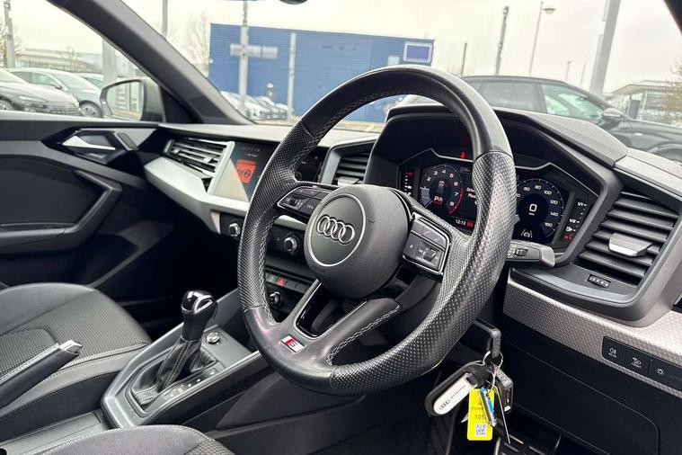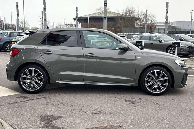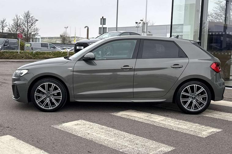10.25" Digital instrument cluster display classis style instrument dials + speed, odometer, time, outside temperature, telephone menu + fuel level warning, Audi drive select - power steering assistance + engine + gear shift 3 preset modes (auto, dynamic, efficiency and an Individual mode), Audi smartphone interface with connect compatible smartphone via USB directly MMI display + Nav, music, third party apps controlled via MMI controller, Automatic start/stop system, Bluetooth interface, Cruise control, Driver's information system, Electromechanical power steering, Emergency e-call, Lane departure warning system, Rear parking sensor, Service interval indicator, Speed limiter, Voice control system, Washer fluid level indicator, Sports suspension, 2 x USB type C connection points, 6 passive loudspeakers, DAB Digital radio, MMI radio plus with 10.1" colour MMI display screen and MMI touch, Auto dimming rear view mirror, Body coloured door mirrors, Door sills with aluminium inlays and S Line logo, Electric front and rear windows, Electrically adjustable, heated, folding door mirrors with integrated LED side indicator, Front side air inlets in grained matt black and C frame in anthracite black, Heat insulating glass windscreen and side windows, Heated rear windscreen, High level LED brake light, LED headlights with LED rear lights + dynamic rear indicators + headlight adjustment and high beam, turning light + LED daytime running lights, Privacy glass, Radiator grille and rear diffuser in matt anthracite black, Radiator protective grille frame in matt aluminium silver, Rain and light sensors, Rear fog lights, Rear side wing doors, Rear wiper, S line badges on front wings, Side front spoiler lips in grained matt black, 12V socket in centre console with two cup holders, 3 rear seats with headrests, 3 seat bench in 2nd row, 3 spoke leather multi-function plus steering wheel features S badging and grips in perforated leather with contrast stitching, 40:60 Split folding rear seat or folded fully, Black cloth headlining, Driver and passenger seat with manual height adjust with forward and backwards adjustment, Front and rear black floor mats with contrast stitching in fine silver, Front head restraints, Front passenger seat, Height and reach adjustable steering wheel, ISOFIX child seat mounting for front passenger and outer rear seats including top tether attachment point of outer rear seats, Leather gear knob with aluminium trim, Leather handbrake grip, Luggage compartment light with front and rear reading lights, Manual air conditioning, Manually adjustable lumbar support in front seats, Stainless steel pedals, LED interior lighting pack - A1, Luggage compartment pack - A1, S line exterior styling pack - A1 Sportback, 3x3 point rear seatbelts, Audi pre-sense front with pedestrain and cyclist recognition, Brake assist function, Driver and front passenger airbag with front side and head airbags, Electronic Stability Control including ABS, EBD, ASR and EDL, Front passenger airbag deactivation switch, Hill hold assist, Manual rear child locks, Seatbelt height adjustment for front seats, Seatbelt monitoring, Tyre pressure warning light, Warning triangle and first aid kit, Anti theft alarm, Anti theft wheel bolts and loose wheel warning, Immobiliser, Remote central locking with 2 foldaway keys, Aluminium trim for control switches, air vents and digital instrument cluster, Black dashboard, Silver grey inlays polygon structure in diamond paint finish, Structured grey accent areas including air vents, door handle recesses and centre console in quartz paint finish,
