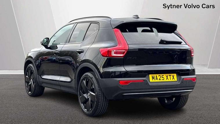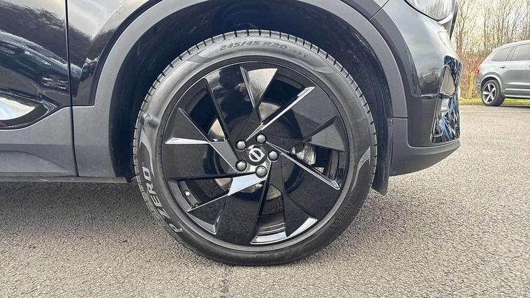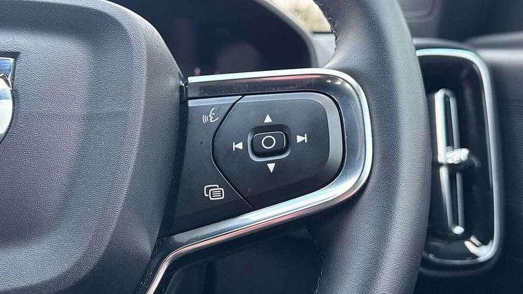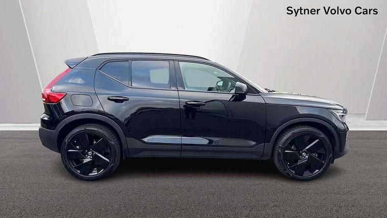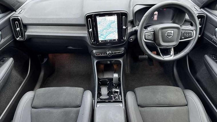 12.3" Progressive Driver Display, 9" centre console portrait touch screen, Adjustable steering wheel force, Android auto (Wired), Apple carplay (wired), Bluetooth handsfree system, Driver alert control, Driver assistance (pilot assist and adaptive cruise control), Driver awareness - Blind spot information system with steer assist, cross traffic alert with autobrake and rear collision warning and mitigation, E-call, Front park assist, Google automotive services - Enabled entertainment apps, navigation with google maps, voice recognition with google assistant, Hands free power tailgate, Intelligent speed assistance, Lane keeping aid, Oncoming Lane Mitigation, Rear park assist, Speed sensitive steering, Volvo cars services with app - Driving journal, emergency and breakdown call, engine remote start, remote door locking/unlocking and vehicle dashboard, Wireless/Inductive Mobile Phone Charging, Automatic transmission with start/stop and manual change functions, Dynamic chassis, DAB Digital radio, Steering wheel mounted remote controls, Adaptive brake lights with high level LED brake lights, Auto dimming feature for exterior door mirrors, Auto dimming interior mirror, Automatic headlamp levelling, Automatic LED Headlights + Active high beam incorporating daytime running lights, Colour coordinated auto folding and heated power door mirrors, Dark tinted windows - rear side windows and rear screen, Front aluminium tread plates, Front and rear electric windows, High gloss black front and rear skid plate, High gloss black front bumper deco, High gloss black front grille strikethrough and ironmark, High gloss black rear model, engine and volvo logo badges, High gloss black window trim, Home safe and approach lighting, Integrated roof rails in high gloss black, LED front fog lights, Puddle lights, Rain sensor with automatic windscreen wiper activation, Rear side wing doors, Rear wiper, Roof antenna, Roof spoiler, Visible VIN plate, 12V socket in front tunnel console and luggage compartment, 2-Zone electronic climate control with CleanZone air quality system and pollen filter, 3 seat bench in 2nd row, 3 Spoke tailored steering wheel with chrome trim, 60/40 versatile split folding rear seat, Centre console cupholders and storage, Charcoal headlining, Connect textile/microtech upholstery, Flexible load floor and grocery bag holder, Floor mats, Front cabin courtesy lights, Front door pocket, front cupholder, ambient front door, rear reading, rear courtesy, instrument panel and tailgate lighting, Front footwell illumination, Front headrests, Front reading lights, Front seat cushion extensions, Front side step illumination (under door), Glovebox bag hook, Heated front seats, Height adjustable passenger seat, Height/reach adjustable steering column, High gloss centre tunnel deco, Illuminated glovebox, Illuminated luggage compartment, Illuminated vanity mirrors + ticket holder, Integrated waste bin, Isofix attachments on outer rear seats, Load cover, Load protection net, Multi directional lumbar support for driver and passenger seat, Power driver seat with memory + exterior mirrors memory, Rear armrest with cupholders, Rear headrests, Single front passenger seat, Underfloor cargo storage, Climate pack without heated front seats - XC40, 3x3 point rear seatbelts, City safety with steering support with Pedestrian + cyclist + front collision warning with full auto brake and rear auto brake, Driver and passenger airbags, Drivers knee airbag, Electronic parking brake with auto hold, First aid kit, Front and outer rear seatbelt reminder and pretensioners, Front seats SIPS airbags, Hill descent control, Hill start assist, Inflatable curtain, Passenger airbag cut-off device, Power child locks on rear doors, Road sign information display, Run off Road Protection, SIPS (Side Impact Protection System), Slippery road and hazard light alert, Stability and Traction Control with Spin control, Engine Drag Control and Corner Traction Control, Tyre pressure monitoring system, Vehicle deceleration control with Anti-lock Brake System, Electronic Brake Distribution and Emergency Brake Assist, Warning triangle, WHIPS whiplash protection system - front, 2 x Key integrated remote control central locking including with deadlocking system and auto open/close windows, Anti-theft alarm including immobiliser/volume sensor + level sensor, Keyless drive includes keyless entry and keyless start, Locking wheel nuts, 20" 5 spoke high gloss black alloy wheels,