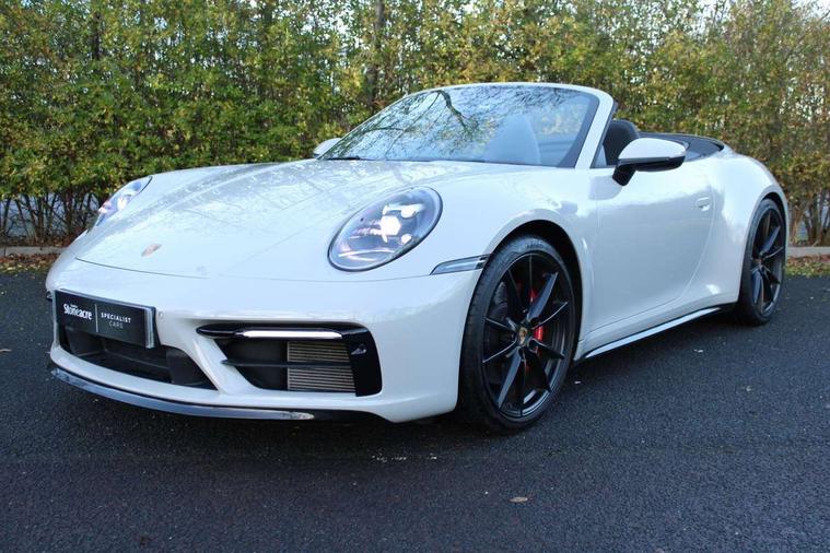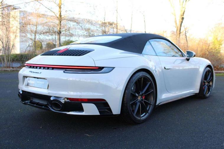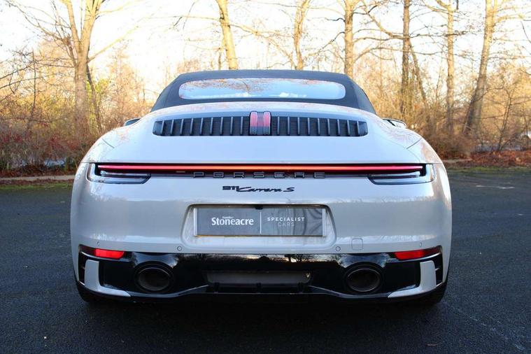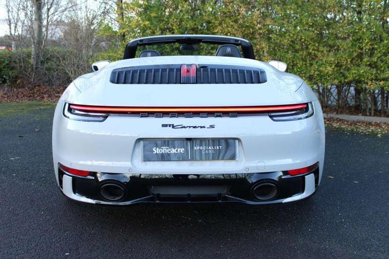10.9 inch centre display, Automatic start/stop system, eCall emergency system, Gear indicator in rev counter, Instrument cluster with central analogue rev counter and two 7-inch TFT displays, Porsche Communication Management (PCM) including online navigation module, mobile phone preparation, audio interfaces and voice control system, Porsche WET Mode, Service indicator, Smartphone integration with Apple CarPlay and Android auto, Stationary management with HOLD function, Trip computer, Warn and brake assist including pedestrian protection, 8 Speed Porsche Doppelkupplung (PDK), Aluminium block and cylinder heads, Direct fuel injection (DFI), Expansion intake manifold, Four valve per cylinder, Integrated dry-sump lubrication with an on-demand oil pump, McPherson-strut suspension with anti-roll bar at front, Multi-link suspension with anti-roll bar at rear, Porsche Stability Management (PSM), ABS with extended brake functions, Porsche Torque Vectoring Plus (PTV Plus) inc electronically regulated rear differential lock and fully variable torque distribution, Rear wheel drive, Twin turbocharger intercooled, Two gasoline particulate filter, Two three-way catalytic converters and on-board diagnostics for monitoring emission control system, VarioCam Plus variable valve timing and switchable valve lift, Water cooled with thermal management, 2 USB-C connectivity and charge ports in the centre console storage compartment, DAB Digital radio, "PORSCHE" lettering integrated in taillight strip, Auto deploying rear spoiler, Automatic headlight activation including welcome home lighting, Automatically dimming interior and exterior mirrors with integrated rain sensor, Body coloured bumpers, Electrically adjustable heated exterior mirrors on door waist rails, aspherical on driver's side, Fully automatic fabric hood, electrically operated heatable glass rear screen, operable approx 31mph and convenient operation by key remote, Green tinted heat insulating glass, Heated rear windscreen, Integral electrically powered wind deflector, Intelligent lightweight body in Aluminium/Steel composite construction, LED auxiliary light units in the front end with position lights, direction indicators and side indicators, Power rear side windows, Power windows with one touch operation and door seal protection, Rear boot, Rear lid grille with vertical slats in high gloss black, Retractable door handles, Side air intakes at front with active cooling flaps and air blades, Side skirts trim in black, Taillight strip including integral parking lights and rear fog light, Trims on sideskirts in black, Windscreen washer system with aero wiper blades and washer jets, 12V socket in front passenger footwell, 2 individual seats in 2nd row, 2+2 seater with rear engine, 2-zone automatic climate control with separate temperature settings for driver and front passenger, Ascending centre console with storage compartment, Clothes hooks on seat backrests, Driver and front passenger illuminated vanity mirrors, Embossed leather on front center seat, side bolsters and front seat headrests, Front and rear head restraints, Heated front seats, Hood lining in black fabric, ISOFIX child seat mounting points on passenger seat, LED door lights, LED footwell lights, LED glove compartment lighting, LED ignition light, LED luggage compartment lighting, LED orientation light, LED reading lights, Lockable glove compartment, Luggage compartment at front, Luggage compartment lid release, Particle/pollen filter with active carbon filter, PDK gear selector with automatic mode, manual gear selection via shift paddles on the steering wheel, Single front passenger seat, Smooth finish leather on steering wheel rim, door handles, door panel armrests and centre console storage compartment lid, Split folding rear seats, Storage compartments in each doors, Two individual cupholders 1x as inlet in centre console and 1x passenger side, Auto deploying roll over protection system, Brake discs with 350mm diameter at front and 350mm at rear, internally vented and cross-drilled, Electric parking brake, Electromechanical power brake, Full size two stage airbags for driver and front passenger, Pedestrian protection, Porsche side impact protection system (POSIP) includes side impact protection in doors, head/thorax airbags for driver and front passenger, Tyre pressure monitoring system, Dashcam prep, Engine immobiliser with remote central locking and alarm system with ultrasonic sound based interior surveillance, Porsche vehicle tracking system (PVTS Plus), Tyre sealing compound and electric air compressor kit,