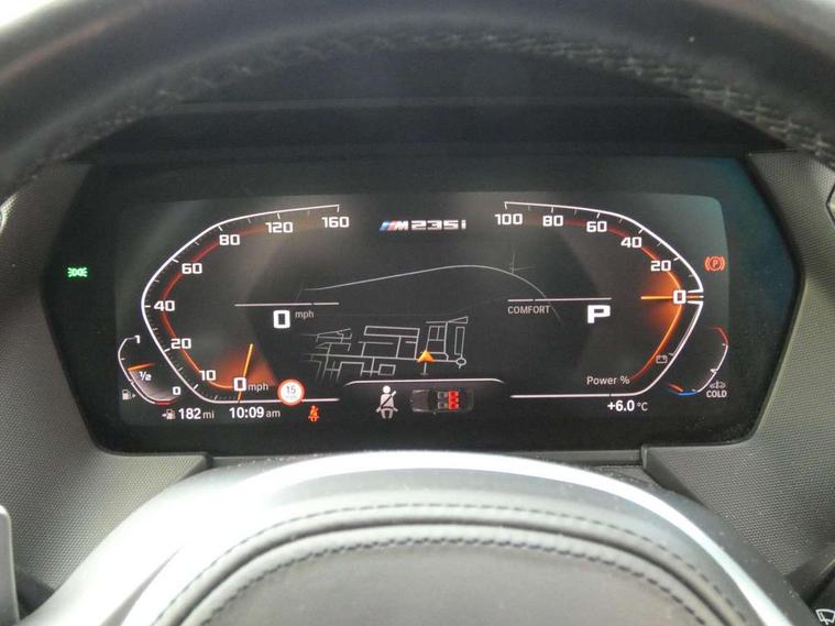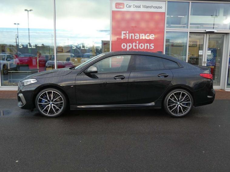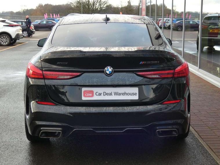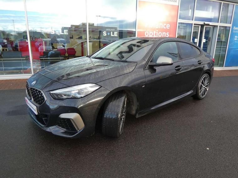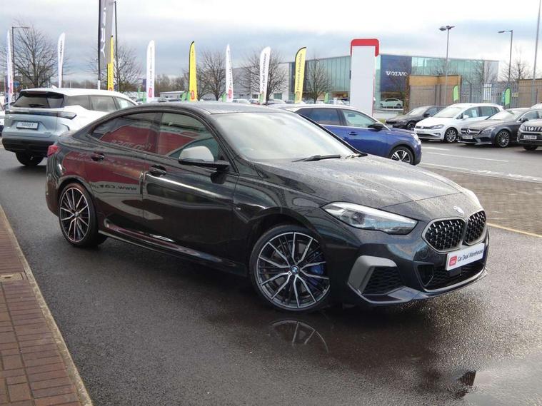 Active guard plus, Attentiveness assist, Auto start-stop, BMW Intelligent Personal Assistant, BMW Live Cockpit Professional with 10.25" high resolution instrument and control display, BMW Online services, BMW operating system with 7.0 mid interface, BMW Teleservices, Check Control warning system for monitoring of lights and door/luggage compartment open warning, Electro hydraulically controlled multi plate clutch in rear axle, Energy efficient operating strategy, iDrive controller with touch function and 7 short cut favourite buttons on centre console, Integrated navigation data with map data via USB +features such as 3D landmarks and micro city models, Integrated owners handbook, Intelligent voice assistant, M Sport steering with M235i xDrive M performance specific settings, On board computer - average speed+fuel consumption, service interval, clock/date, odometer/trip meter, outside temperature display and ice warning, Optimum shift indicator, Personal Profile, Pull away assistant, Speed limiting function, 2 balance shafts, 8 speed sport automatic transmission with electronic selector lever, auto P function, coasting idle, race track, sport, gearchange display manual mode, Aluminium lightweight construction, Double VANOS, Drive performance control with ECO PRO comfort + sport mode, Electronic differential lock, Engine cover with M performance designation, High precision injection, Larger fuel tank capacity (50 litres), Launch control, M235i specific heavily de-throttled engine intake air guide, M235i specific high-performance cooling package, M235i specific larger turbocharger with integrated divert-air valve, Performance Control, Petrol Particulate Filter, Power transmission of front wheel drive on the rear axle via angle transmission on the front axle differential and two part cardan shaft, VALVETRONIC engine management, Variable, stepless and infinitely adjustable distribution of drive torque between the front and rear axles, xDrive intelligent all wheel drive with M235i specific reinforced components, 2x USB Type C ports (for charging and data transfer), 4G LTE Connectivity with hard wied 4G network sim card, DAB digital radio, MP3 players and RDS double tuner, Automatically dimming rear view mirror, Body colour door handles, Direction indicator side lights integrated exterior mirrors, Electric windows - front and rear, with open/close fingertip control and trap release, Exterior mirrors - electrically folding with anti-dazzle, Fading support, Follow me home headlights, Front and rear bumper system with replaceable deformation elements, Front door sill finishers in black plastic with M235i designation, Heated, electrically adjustable exterior mirror aspheric on driver side, convex on passenger side, High gloss black B pillar finish, High gloss shadow line exterior trim, High level third brake light, LED daytime running lights, LED front fog lights, Lightweight engineering, M Performance exhaust system with valve control and minimised exhaust back pressure, M rear spoiler, Model designation on right side of tailgate includes xDrive designation onleft handside for M235i xDrive, Preparation for high beam assistant, Rain sensor with automatic headlight activation, Rear fog lights, Reinforced crank drive, new pistons and adapted con rods, Reversing light in rear light cluster, Welcome lighting, 12V power socket in centre console, 2 cupholders in front centre console, 3 rear seat head restraints, 3 spoke M sports design leather steering wheel finished in nappa leather with specific M badge, Additional under floor storage in luggage compartment, Anthracite finished floor mats with contrasting surround, Anthracite headlining, Automatic two zone climate control air conditioning, Child seat ISOFIX attachment for two outer rear seats and front passenger seat with anchorage points, Conditioned based service, Driver and front passenger seat heating, Front and rear door pockets including bottle trays, Front and rear side armrests integrated into door trim, Front armrest foldable with integrated storage compartment, Front centre interior light over interior mirror and rear centre automatic interior light when door is opened/ignition switched off or via remote key, Front head restraints, Front M Sport seats, Glove compartment, Glovebox with light, Luggage compartment lighting, Manually adjustment steering wheel column, Multi-function controls for steering wheel, Shift-by-wire selector shift, Steering wheel paddles, Sun visors with vanity mirrors and insert tab, Through loading system with 40/20/40 split folding rear seat, Two lashing eyes, Additional interior lighting pack - 2 Series Gran Coupe, Connected pack professional - 2 Series Gran Coupe, Extended storage pack - 2 Series Gran Coupe, M Sport exterior styling aerodynamics pack - 2 Series Gran Coupe 235i, 2 tone horn, Airbag - Front driver and passenger, front and rear head, front side, curtain head protection, manual deactivation of front passenger airbag possible, Anti lock braking system (ABS) with cornering brake control, BMW emergency call, Brake drying, Braking readiness, Crash sensor activating of airbags, Unlocking doors, hazard warning lights, interior light, safety battery terminal, Dynamic stability control + (DSC+), Dynamic Traction Control - DTC, Electrically operated hand brake, Integrated torsen mechanical limited slip differential on front axle, M Sport braking system in blue high gloss + blue painted brake calipers with M designation, M sport seatbelt, Rear brake discs, Rear child proof door locks, Seat belt security check for driver and front passenger, Seatbelt warning, Side impact protection, Three point seat belts on all seats including front belt stopper, pyrotechnic belt tensioners and belt force limiters, Trailer stability control, Tyre pressure monitoring system, Ventilated front disc brakes, Warning triangle and first aid kit, Central locking switch for all doors, fuel filler cap and luggage compartment, Deadlocking f