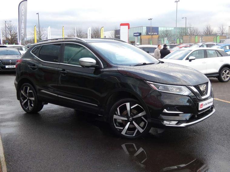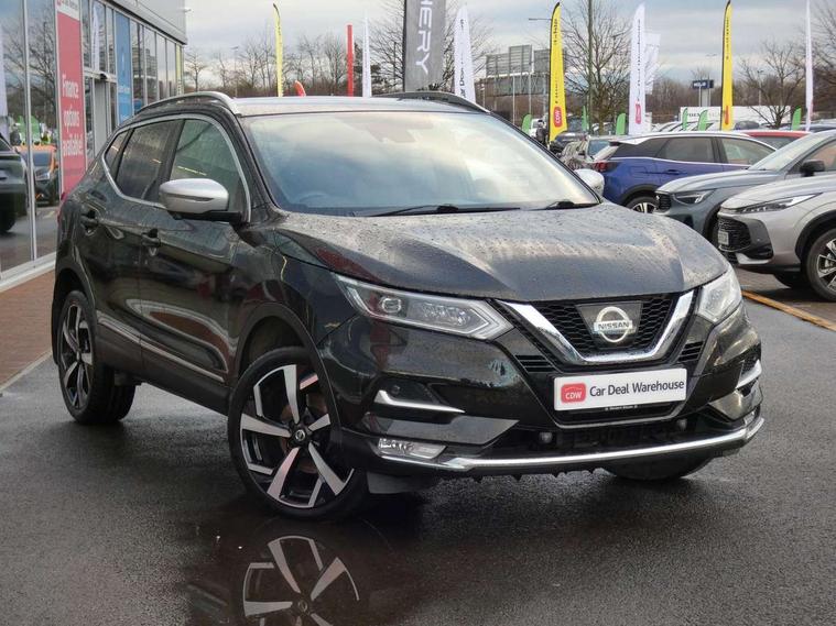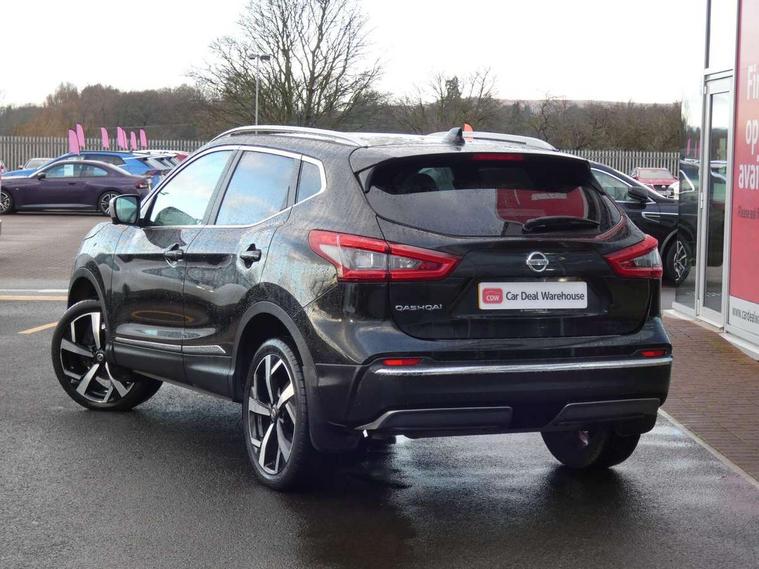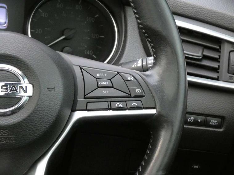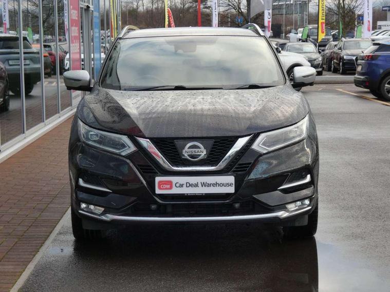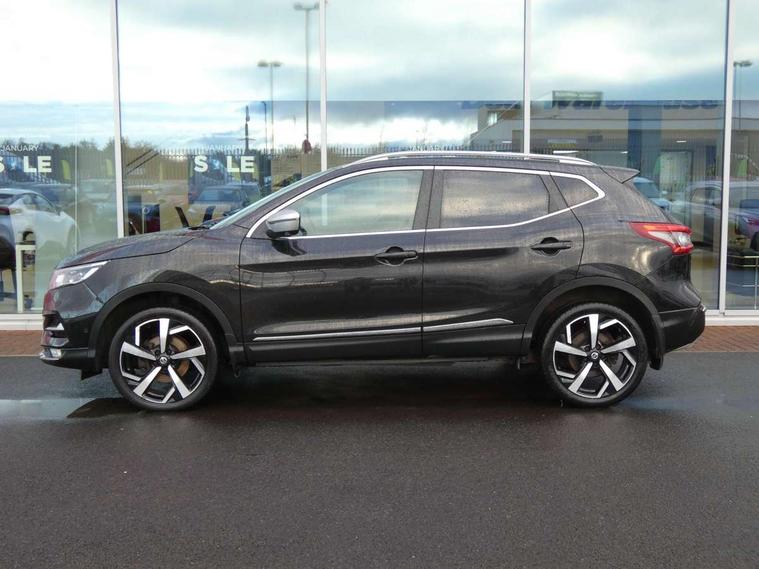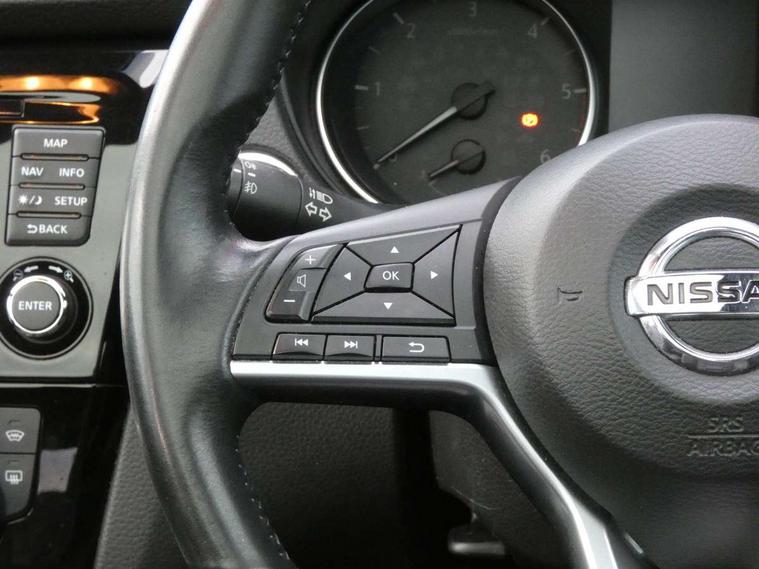 5" TFT driver information centre, Around View Monitor, Blind spot monitoring, Bluetooth phone integration system, Cruise control, Electric speed sensitive power steering, Front and rear parking sensors, Intelligent parking assist, Lane departure warning system, Nissan connect sat nav system, Outside temperature display, Push button starter, Rear view camera, Service interval indicator, Speed limiter, Traffic sign recognition, Trip computer, Diesel particulate filter, 'Shark fin' mobile antenna, Bose premium 8 speaker system, DAB Digital radio, Radio/CD, Smartphone apps, Steering wheel mounted audio controls, USB/aux input socket, Automatic headlamp activation, Body colour bumpers, Body colour door handles, Chrome window surround, Electric folding and heated door mirrors, High beam assist, Interior mirror with auto anti dazzle, LED indicators in door mirrors, One touch electric front/rear windows, Panoramic sunroof with one touch shade, Privacy glass, Rain sensor windscreen wipers, Rear roof spoiler, Rear wiper, Silver door mirrors, Silver roof rails, 2 X front 12v power sockets, 4 way lumbar support with memory function, 60/40 split folding rear seat, Ambient interior lighting, Centre console with armrest, Chrome interior door handles, Configurable luggage board system, Dark headlining, Dual zone climate control, Electric adjust driver's seat, Electric front passenger seat, Front and rear door pockets with bottle holders, Front headrests, Front seat belt pre-tensioners with load limiters, Illuminated electric window switch, Isofix child seat preparation, Leather gearknob, Leather interior door handles, Leather knee rest, Leather steering wheel, Luggage compartment lighting, Map reading lamp, Parcel shelf, Pollen filter, Rake/reach adjustable steering wheel, Rear headrests, Heat package - Qashqai, LED pack - Qashqai, ABS, brake assist and EBD, Child locks on rear doors, Curtain airbags, Driver/front passenger airbag, Electronic parking brake, ESP + traction control, Forward emergency braking, Front passenger airbag deactivation, Height adjustable front seatbelts, Hill start assist, Seatbelt warning, Side airbags, Three 3 point rear seatbelts, Tyre pressure monitoring system, Alarm, Immobiliser, Intelligent Key, Remote central locking, Graphite interior trim, Tyre puncture repair kit,