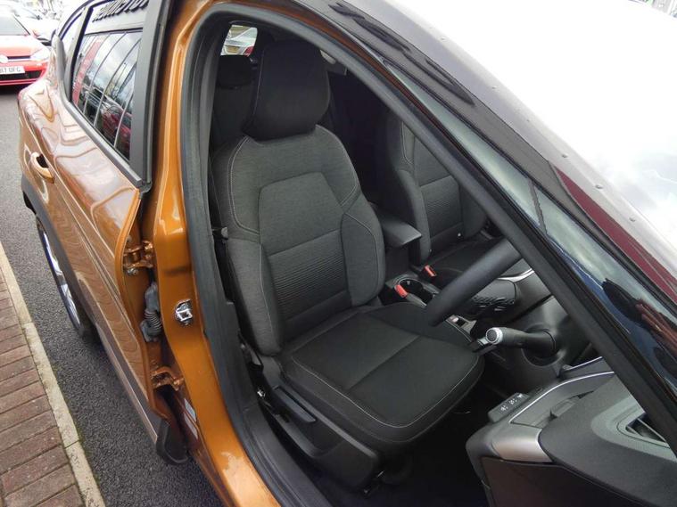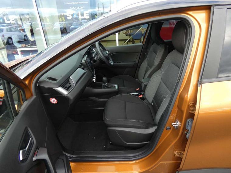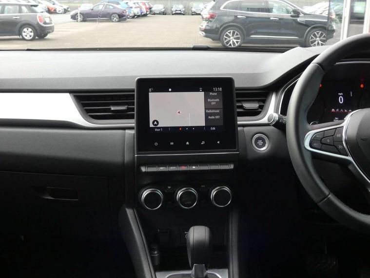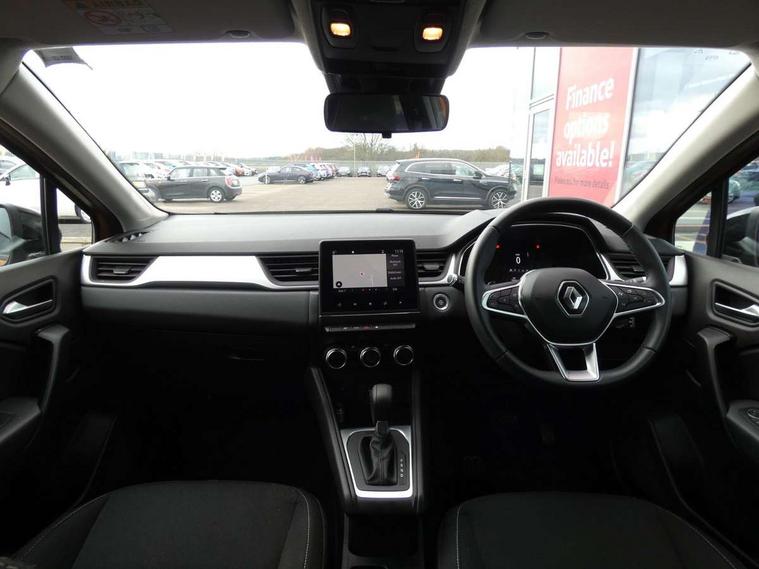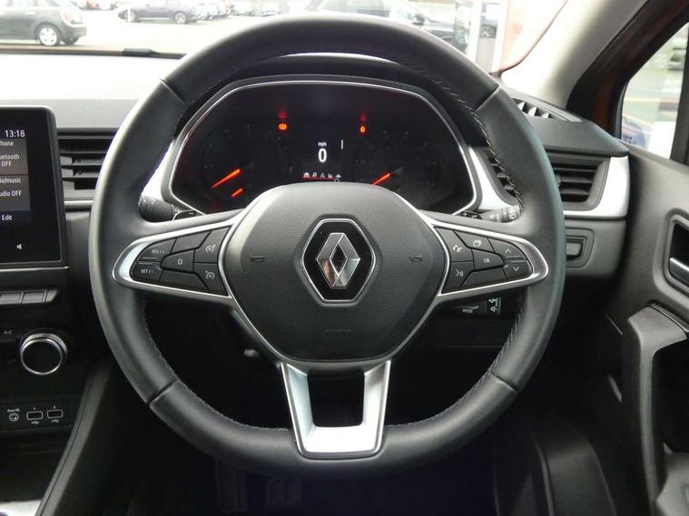 4.2" TFT Driver information display, Cruise control + speed limiter, eCall emergency call system, Eco mode, Gear change indicator, Lane departure warning system, Lane keep assist, Renault automatic emergency assist, Traffic sign recognition, Trip computer, Variable assistance power steering, EasyLink Nav 7" touchscreen, 4x20W amp, FM DAB, sound auditorium, 2xUSB, 1xJack, Bluetooth, smartphone integration plus, Apple carplay/Android auto, Automatic front wipers with rain sensors, Automatic headlights, Body colour door handles, Body coloured bumpers, Body coloured door mirrors, Electric adjustable/heated/folding door mirrors, Electric front windows + one touch + anti-pinch, Electric rear windows, Extra tinted glass in rear windows and tailgate, Full LED front and rear headlamps integrating daytime running lights at the front and rear, Gloss black side door protection with chrome effect, LED front fog lights, Rear fog lights, Rear wiper, Roof bars, Variable speed on front windscreen wipers, 12V Accessory socket, 3 rear headrests, 5.2L front glovebox, 60/40 split folding rear seat bench, Automatic climate control with one touch demist function, Centre console storage tray, Cloth upholstery, Front head restraints, Heating system with pollen filter, Height adjustable driver's seat, Height/reach adjust steering wheel, ISOFIX child seat fixing points on rear outermost seats, Middle console with armrest and storage, Rear air vents, Synthetic leather steering wheel, 3 rear seatbelts, ABS+EBA, AEBS, Distance warning alert, Driver and front passenger, side, head and curtain airbags, Driver height adjustable seat belt, Electric parking brake, Electronic stability control, Front and rear no seatbelt warning sound, Front dash warning indicator in case of heavy braking, Front driver and passenger side airbag deactivation, Hill start assist, Rear door and window child locking function for rear door, Tyre pressure warning light, Anti drill door locks and locking fuel cap, Deadlocking system, Hands free keycard with push button and start/stop function, RAID (Renault Anti-Intruder Device) automatic door locking, Remote central locking with thatcham approved immobiliser, Black soft touch dashboard with black gloss air vent surrounds,