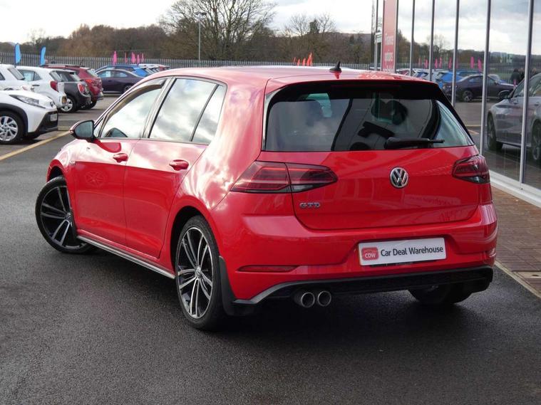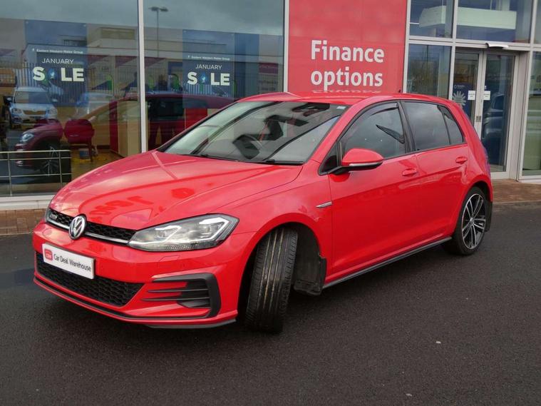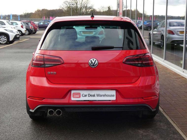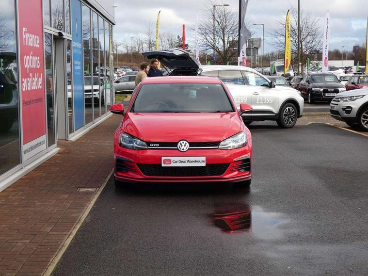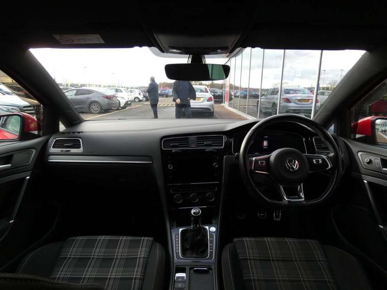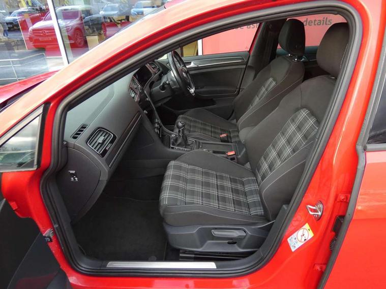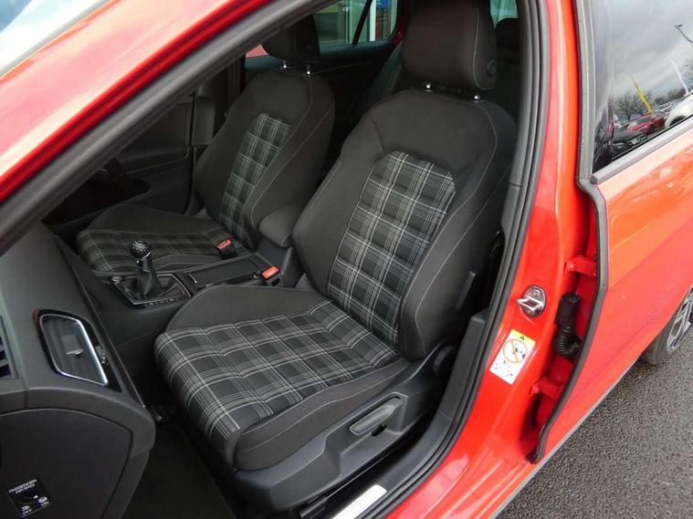 'Lights On' Reminder warning buzzer, 8" touch screen, Adaptive Cruise Control with pedestrian detection and speed limiter, App-Connect, Bluetooth hands free telephone connection, Brake pad wear indicator warning light, Drive mode selector, Driver alert system, Driver profile selection, Exterior temperature gauge, Instrument cluster in white, Multifunction computer, Progressive power assisted steering, Rev counter, Trip and service interval display, Ultrasonic front and rear optical and audible parking sensors, Warning buzzer and light for front seatbelts unfastened, Anti-tramp function, Diesel particulate filter, Lowered sports suspension, XDS plus electronic differential lock, CD/MP3/WMA, USB and SD card reader, aux-in, Composition media system, DAB Digital radio, 3D-LED-SBBR with sweeping indicator, Auto dimming rear view mirror, Automatic coming/leaving home lighting function, Automatic headlights, Black rear diffuser, Body colour door handles, Body colour door mirrors, Body colour rear roof spoiler, Body colour sports bumpers, Electric front windows, Electric rear windows, Electrically adjustable and heated door mirrors, Heated rear windscreen, Honeycomb radiator grille - black, LED daytime running lights, LED front fog lights, LED rear lights, Rain sensor, Rear windscreen washer and wiper with interval delay, Twin exhaust tailpipe, 12V socket in luggage compartment, 3 rear headrests, 3 spoke steering wheel, 60/40 split folding rear seat, Air conditioning - 2 zone electronic climate control, Bag hook in luggage compartment, Black headlining, Boot lashing points, Cooled glovebox, Courtesy light delay, Cover for storage compartment in centre, Dust/pollen filter, Front + rear carpet mats, Front centre armrest with storage box and rear air vents, Front passenger drawer stowage, Front passenger seat height adjust, Front seat back storage pockets, Grab handles, Height adjustable driver's seat, Height/reach adjust steering wheel, Illuminated door sills, Illuminated vanity mirrors, Isofix preparation for 2 rear child seats, Leather gear knob and handbrake grip, Load through provision with rear centre armrest and cupholders x2, Luggage compartment cover, Luggage compartment lighting, Multifunction leather steering wheel with grey stitching leather trimmed gear knob including paddle shift, Overhead storage box, Stainless steel pedals, Storage box in luggage compartment, Storage compartments in doors, Sun visors, Variable boot floor, height adjustable and removable, Ambient lighting pack - Golf, Mirror pack - Golf, 3 point height adj front seatbelts + pretensioners, 3 rear 3 point seatbelts, ABS, Automatic post collision braking, Child locks on rear doors, Driver/Front Passenger airbags, Driver/Passenger whiplash optimised head restraints, Drivers knee airbag, Electronic parking brake with auto hold, ESP with EDL + ASR, Front and rear curtain airbags, Front passenger airbag deactivation, Front side airbags, Pre crash system, Tyre pressure monitor, Alarm with interior protection, Electronic engine immobiliser, Remote central locking with 2 remote folding keys, Chrome-plated light switch surround, Honeycomb black decorative inserts, Piano black centre console, Space saver spare wheel,