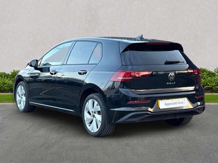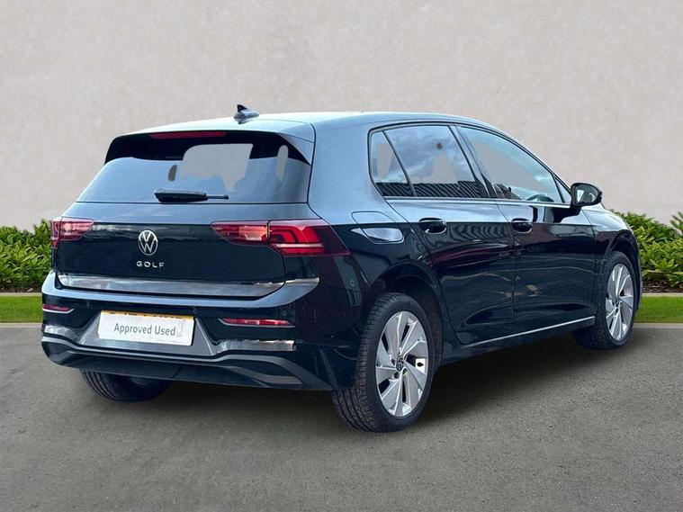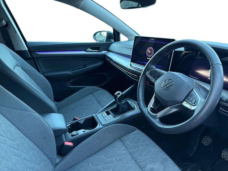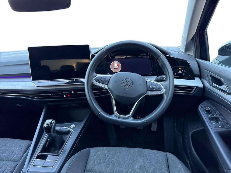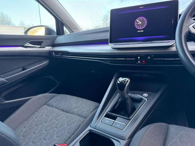 Activated carbon canister, Adaptive cruise control (ACC), Advanced driver attention and drowsiness monitor, Dynamic road sign display, E-Sim card for online connectivity, eCall emergency call system, Multi-color Digital cockpit pro, selection of different info profile possible, Multifunction front facing camera for distance control, Navigation system, Oncoming vehicle braking when turning including swerve support, Preparation for light assist system, Speed limiter, Speedo, rev counter, electronic odometer, trip, service interval display, exterior temperature and fuel gauge, Voice enhancer and voice control, Warning signal and warning light for front and rear seatbelts not fastened, We connect plus preparation, We connect preparation, Wireless app connect, Petrol Particulate Filter, Start-stop system with battery regeneration (recuperation - energy recovery during braking), XDS electronic differential lock for improved traction and handling, 2 USB C ports in front, 2 USB charging sockets on the centre console in the rear charging capacity upto 45W, Comfort telephony + wireless charging, without wireless aerial connection, Digital radio reception (DAB), Diversity antenna for FM reception, Gaming platform via car app, Infotainment system with 12.9" display, Mobile phone interface with inductive charging feature, 3rd brake light, Auto dimming rear view mirror, Auto headlights, Automatic headlamp activation with Coming home and Leaving home feature, Body colour door handles, Body colour door mirrors, Exterior ambient lighting with illuminated door handles, Exterior mirrors convex on the left and aspherical on the right, Front and rear electric windows, Heat insulating windshield made of laminated glass, LED daytime running lights, Rain sensor, Rear exhaust tailpipe, Rear fog light on one side and reversing lights on both sides, Rear side wing doors, Rear tinted glass 65% light absorbing from B pillar backwards, Rear windscreen washer and wiper with interval delay, Remote electrically foldable door mirrors, puddle lights and reverse activated passenger's door mirror, Standard bumpers, Welcome light with surround lighting, 12V socket in front centre console, 12V socket in luggage compartment, 3 rear head restraints, 3 seat bench in 2nd row, Chrome plated radiator grille inserts, air vent surrounds and light switch surrounds, Front centre armrest, Front head restraints, ISOFIX anchors for child seats on outer rear bench seats and on front passanger seat compatible for i-Size, Leather gearshift handle, Luggage compartment lighting, Rear cupholder and loadthough, Single front passenger seat, Soul black instrument panel, Split folding backrest with centre armrest and unsplit rear seat bench, Standard pedal cluster, Storm grey roof lining, Sun visors with illuminated vanity mirrors, Parking and comfort pack - Golf Estate/Hatchback, 3 point height adj front seatbelts + pretensioners, 3 rear three point seatbelts, ABS, Autonomous emergency braking front assist with pedestrian and cyclist monitoring, Child locks on rear doors, Driver and front passenger airbag with front passenger airbag deactivation, Electronic parking brake with auto hold, ESC (Electronic Stability Control), Extended pedestrian protection measures, Rear disc brakes, Two tone horn, Tyre pressure loss indicator, Volkswagen roadside assistance, Alarm with interior protection, Anti theft wheel bolts, Keyless start with SAFE lock, Preparation for alcohol interlock, Nature cross brushed decorative inserts for dashboard and front door panels,