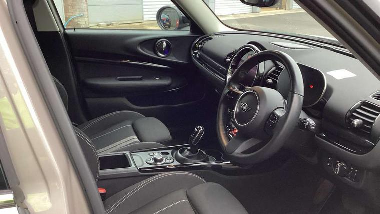 Active Guard incl speed limiting and lane departure functions with auto steering, and front collision warning with brake intervention, Automatic start/stop function with brake energy recuperation, Compatible mobile phone bluetooth with audio streaming, Digital cockpit, Electro-mechanical speed dependant steering assistance, Instrument cluster, Mini E-call, MINI TeleServices, On board computer, Double Vanos system, Fully variable valve control, High precision injection, Performance Control, Steptronic transmission with double clutch, FM tuner and DAB digital radio, Bonnet scoop, Chrome border honeycomb structure radiator grille with S badge, Chrome fuel filler cap, Dynamic brake lights, Electric windows, Heated rear window, Heated windscreen washer jets, LED headlights with closed ring as daytime driving lights, LED rear light with union jack design, Metal door sill strips with Cooper S imprint, Model logo, Model logo on rear doors, Rain sensor with auto headlights, Rear fog lights, Rear window wiper, Side scuttle panel with integrated indicator, Split rear doors, Sun/heat protection glass, Twin exhaust tailpipe, White indicator lenses, 12V Accessory socket in centre console, 3 spoke sport leather steering wheel + limiter function and audio controls, 360L luggage compartment capacity, 4 lashing eyes in luggage compartment, 60/40 split folding rear seat, Chrome interior highlights, Cupholders, English handbook, Front and rear head restraints, Glove compartment, Headliner with grab handles and clothes hooks, Height and length steering column adjustment, Interior lighting with 12 basic colours selectable via toggle switch in roof, Isofix rear child seat preparation, Leather gearshift lever and handbrake gaiters, LED reading lights, vanity mirror lights, front foot well light and spotlight on front seats, Manual air conditioning, Mechanical seat adjustment, driver seat height adjust, forward/back and front seats backrest, Multifunction steering wheel, Storage compartments in doors, Sunvisors with vanity mirrors, Toolkit, Excitement pack - Clubman, Navigation pack - Clubman, 2 tone horn, 3 point seatbelts on all seats, 6 Airbags - front, side, head and seat belt tensioners, Anti-lock braking system (ABS), DSC - Dynamic Stability Control, Electronic handbrake, Front and rear disc brakes, Tyre pressure monitoring system, Alarm system with tilt sensor, monitoring doors, bonnet interior and tailgate, Auto drive away locking, Deadlocking function, Electronic vehicle immobiliser, Locking wheel bolts, Start/stop toggle with keyless go, Tyre repair kit,