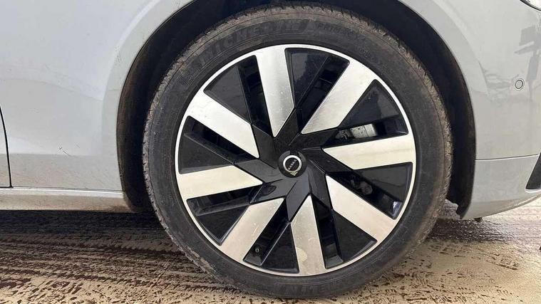 12.3" Progressive Driver Display, 360 degree surround view parking camera with side proximity sensors, 9" centre console touch screen, Adjustable steering wheel force, Apple CarPlay and Android Auto, Bluetooth handsfree system, Drive mode settings, Driver alert control with lane keeping aid, Driver assistance (pilot assist and adaptive cruise control), Driver awareness - Blind spot system + steer assist, cross traffic alert with autobrake, rear collision warning and mitigation, E-call, Emergency assist, Front and rear park assist, Google automotive services - Enabled entertainment apps, navigation with google maps, voice recognition with google assistant, Handsfree bootlid opening/closing, Intelligent speed assistance, Oncoming Lane Mitigation, Power operated tailgate/boot lid, Speed sensitive steering, Volvo on call app, 6m 3 phase 16amp Type 2 / mode 3 charge cable, 7m 10amp charge cable with 3 pin plug, 8 speed automatic transmission with start/stop + manual change functions, Dynamic chassis, Electric rear axle drive, Lithium-Ion Battery 18.8kWh, On board charger - 6.4 kW 2 phase/3.7kW single phase, Recharging port located in nearside front wing, DAB Radio (Digital Audio Broadcasting), Low speed exterior sound speaker, Premium Sound by Harman Kardon, dirac unison, dolby pro logic II surround sound, 13 speakers/600W output and fresh air subwoofer, Steering wheel remote infotainment controls, Adaptive brake lights with high level LED brake lights, Auto dimming interior + exterior mirrors, Automatic headlight levelling system, Automatic LED Headlights + Active high beam incorporating daytime running lights, Front and rear power windows, Heated windscreen, High gloss black door mirrors and window surround, High gloss black front and rear bumper decoratives, High gloss black mesh front grille and surround, Home safe and approach lighting, Integrated roof rails in high gloss black, Puddle lights, Rain sensor with automatic windscreen wiper activation, Rear LED lights with sequential indicators, Rear side wing doors, Rear wiper, Roof antenna, Roof spoiler, Variable front intermittent wipers, Visible VIN plate, 2 zone electronic climate control with Clean zone air quality system + pollen filter, 3 seat bench in 2nd row, 3 Spoke tailored steering wheel with chrome trim, Air purifier particulate matter (PM) 2.5 filter, Ambient door and instrument panel lighting, B Pillar ventilation, Boot lid/tailgate illumination, Bright metal luggage scuff plate, Cargo divider with grocery bag holder, Centre console cupholder and storage, Charcoal carpets and floor mats, Driver and front passenger seat power height adjustment, Extended front seat cushions, Front 12V socket tunnel console and cargo area, Front and rear cabin courtesy light, Front and rear door pocket lights, Front and rear footwell and side step illumination, Front and rear reading lights and centre armrest Storage Illumination, Front headrests, Glovebox compartment with illumination, Heated front seats, Heated rear seats outer positions, Heated steering wheel, Height/reach adjustable steering column, Illuminated luggage compartment, Illuminated recharge aluminium tread plates, Illuminated vanity mirrors + ticket holder, Inner door release handle illumination, Integrated sun curtains in rear doors, ISOFIX attachment on outer rear seats, Leather upholstery, Load cover, Load protection net, Luggage compartment load hooks, Memory function for drivers seat and exterior mirrors, Multi directional lumbar support, Power folding rear headrests, Rear armrest with cupholder, Single front passenger seat, Underfloor cargo storage, Versatile split folding rear seat - 60/40, 3x3 point rear seatbelts, Active bonnet, City safety with steering support with Pedestrian + cyclist + front collision warning with full auto brake and rear auto brake, Driver and front passenger airbags, Drivers knee airbag, Front seats SIPS airbags, Hill start assist, IC (Inflatable Curtains) - Full Length, Passenger airbag cut-off switch, Power child locks on rear doors, Power parking brake with auto hold function, Road sign information display, Run off Road Mitigation, Run off Road Protection, Seatbelt reminder and pretensioners for all seats, SIPS (Side Impact Protection System), Slippery road and hazard light alert, Stability and Traction Control with Spin control, Engine Drag Control and Corner Traction Control, Tyre pressure monitoring system, Vehicle deceleration control with Anti-lock Brake System, Electronic Brake Distribution and Emergency Brake Assist, Warning triangle and first aid kit, WHIPS whiplash protection system - front, 2x Key integrated remote control central locking + fuel flap with deadlocking system and auto open/close power windows, Anti-theft alarm including immobiliser/volume sensor + level sensor, Care key with user defined top speed, Keyless drive includes keyless entry and keyless start, Locking wheel nuts, Private locking for tailgate, Tailored Instrument Panel and Door Tops with Contrast Stitching, 19'' 8 spoke diamond cut black alloy wheels, Tyre sealant kit and compressor,