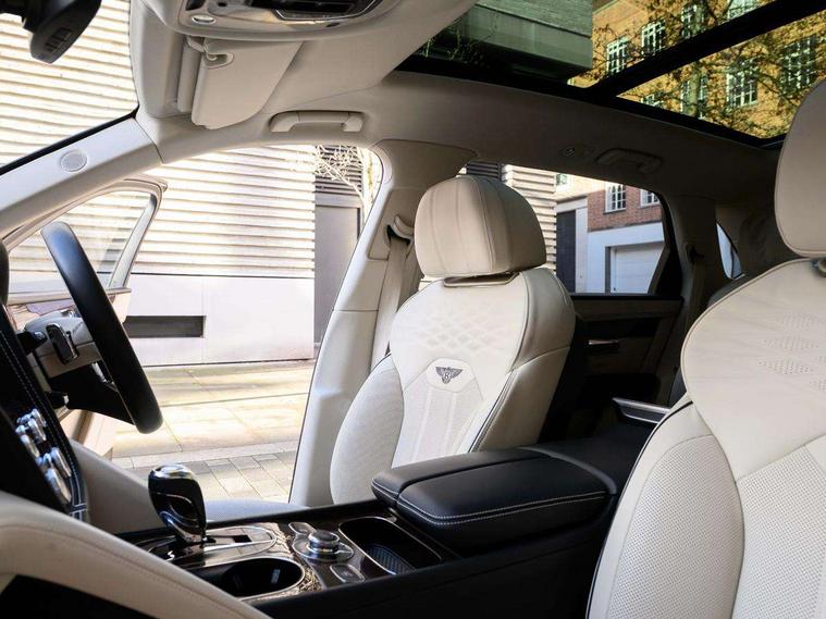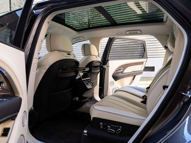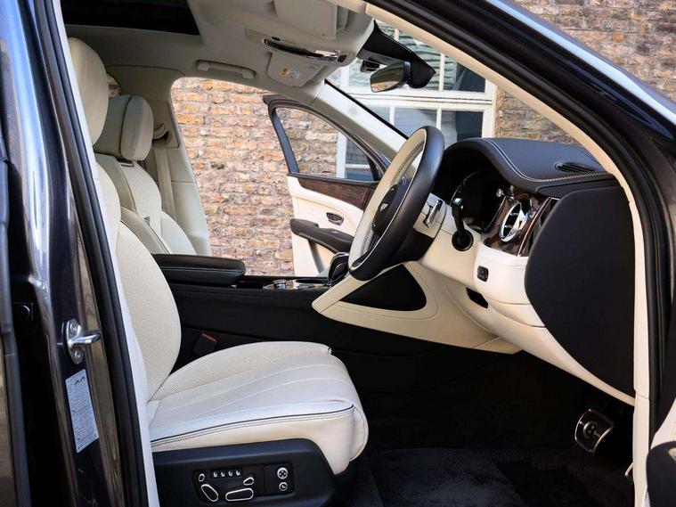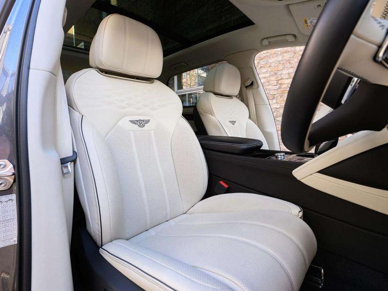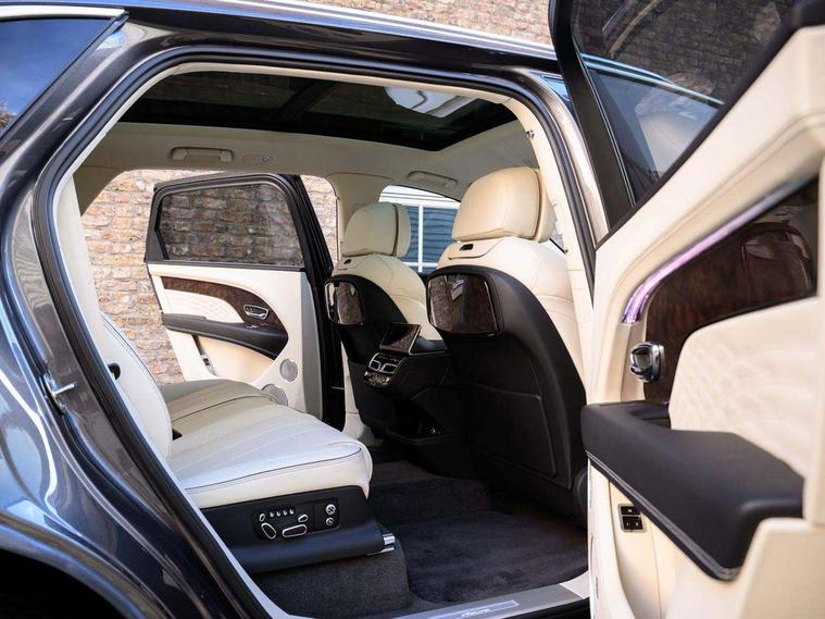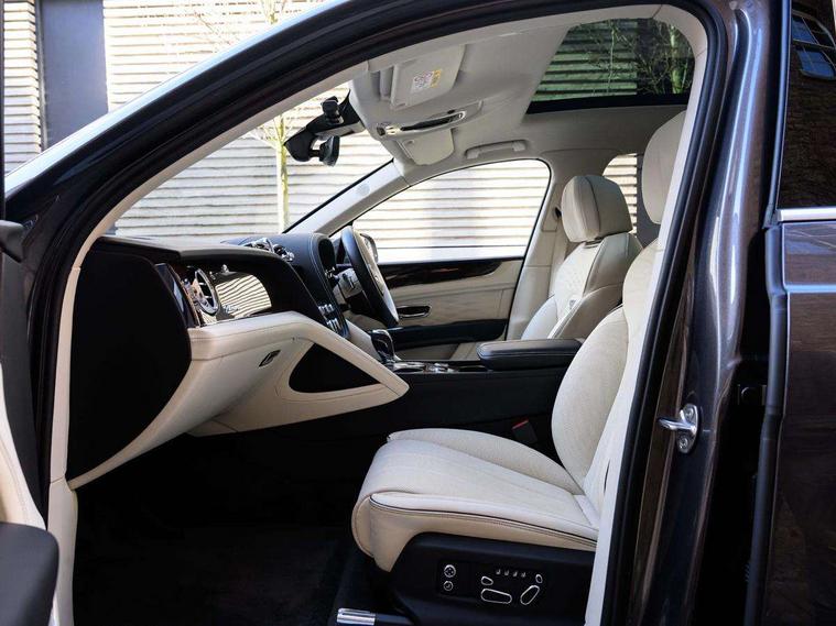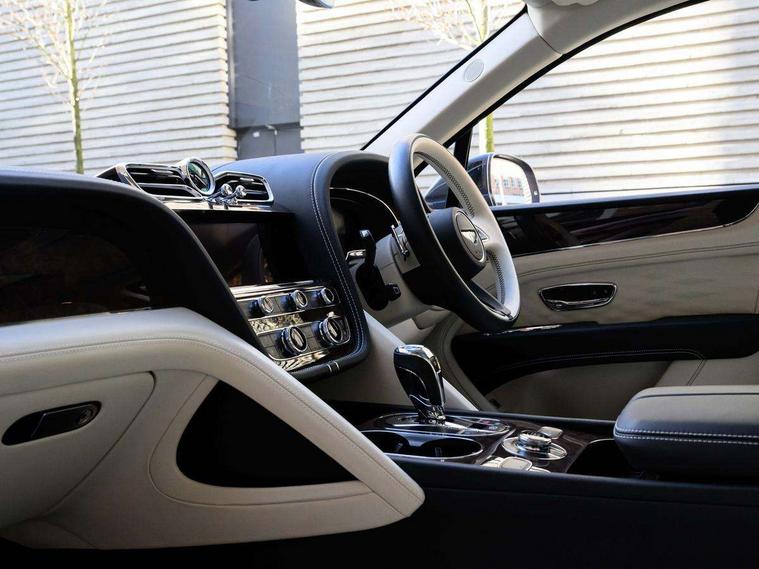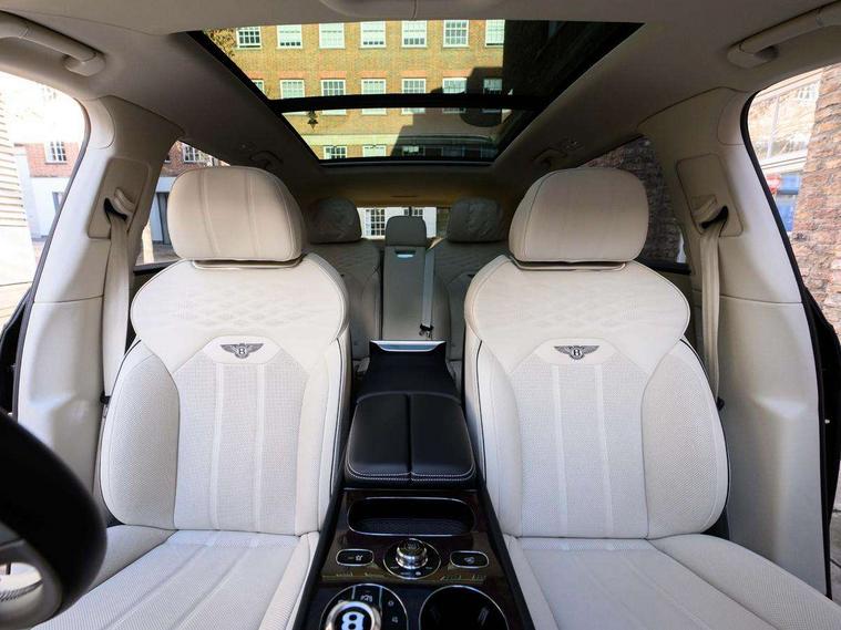 10.9" touch screen high resolution and configurable infotainment display and digital drivers information display, Advanced navigation function with text, search, 3D, satellite maps, speed limit, dynamic traffic route guide, telephone, Text-speech + voice, Bentley branded clock, Bentley GPS tracking system full fitment, Bentley safeguard plus, Blind spot assist, Bluetooth and WIFI enabled, Emergency services call system, Four drive dynamics modes (bentley, comfort, sport, custom), Front/rear park distance control, Hands free power tailgate, MMI Screen, My Bentley connected car services, Power latching to all doors for easy entry, Redesigned instrument panel lower trim rolls, incorporating a storage compartment on the passenger side, Seamlessly integrated technology with wireless apple car play and android auto, Speed sensitive variable ratio electric power steering, Touch screen remote, Traffic jam assist, Voice control system, Wireless phone charging compartment, Air suspension with continuous damping control, Bentley Dynamic ride with electronic all wheel steer, Permanent all wheel drive with centre torsen differential, DAB Digital radio, 3rd brake light, Adaptive low beam, Auto dimming rear view mirror, Automatic headlights, Azure exterior door badges, Azure fascia badge, Bentley badge in tailgate opening switch, Bentley lettering under the wings in tailgate, Black painted shark fin aerial, Body colour door mirrors, Body coloured lower bodywork - Standard paint range, Bright chromed matrix style grille to lower bumper apertures, Bumper design with large side intakes and sculptured surfaces, Contrast front and rear bumper apron, Elec/heat/adj/fold door mirror+memory, Electric tilt/slide panoramic sunroof, Fender design reduces over bodied perception, Fixed rear spoiler, Front and rear fog lamps, Full LED supplementary lamps and tail lamps, Full matrix LED headlamps with high beam assist, Full width clamshell design and deeply contoured rear tailgate panel, Heated rear windscreen, Illuminated treadplates, Jewel fuel and oil filler caps, Large dominant B shaped side wing vent front position, LED daytime running lights, Long fender vent above the power line on body side, Lower door side mouldings, Number plate aperture position under rear bumper, Oval split tailpipe, Phone antenna amplifier, Power close rear door, Rain sensing wipers, Rear side wing doors, Rear wiper, Roof rails, Trailer sway mitigation, Tunnel detection for auto light control, V8 exterior badge, Wet arm wipers and heated water jets, 12V power in rear centre console, 12V socket in glovebox, 12V socket in luggage compartment, 3 seat bench in 2nd row, 4-Zone HVAC, Air Ioniser, Azure seat emblems, Deep pile overmats to front and rear, Dinamica headlining and upper trim, Electric tilt and reach adjustment steering column with memory and easy entry function, Electronic accessory preparation, Embroidered Bentley emblems, Fluted seat design, Foams and cover design on all seats, Folding luggage compartment cover, Front and rear cupholders, Indented steering wheel, Interior mood lighting, Isofix attachments on outer rear seats, Key box, Load through facility, Lockable cooled glovebox, Luggage rails, Rear dual window switches, Rear seat climate control, Single front passenger seat, Sports pedals, Stowage with instrument panel, doors (front and rear), armrests and console, Twin front armrests, Two metal bulls eye vents with organ stops and redesigned centre vents, Two type C USB ports front and rear, Wing pockets for small items, Harmony diamond quilt specification pack - Bentayga, Touring specification pack - Bentayga, 3 rear seatbelts, ABS/EBD, Child safety lock, EDL, Electronic park brake with move-off assist, Electronic tyre pressure monitoring, ESP + MSR + ASR, Exit warning, Front and rear head airbags, Front and rear thorax airbag system, Front passenger airbag deactivation, Front seatbelt pretensioners with force limiters, Hill descent function, Hydraulic Brake Assist (HBA), Rear outer seatbelt pretensioners with force limiters, Rollover mitigation, Side airbags, Traction control, Immobiliser, Keyless entry, Keyless ignition, Preparation for vehicle tracking, Remote central locking, Volumetric anti theft alarm, Veneered centre fascia panel,