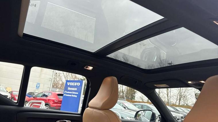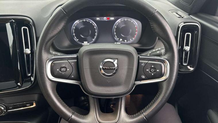 12.3" Active TFT crystal driver's instrument display, 9" centre console portrait touch screen, Adjustable steering wheel force, Bluetooth hands free telephone kit, Drive mode selector, Lane keep assist with driver alert control, Oncoming Lane Mitigation, Sensus navigation with European mapping and traffic information, Speed limiter, Speed sensitive steering, Voice activated control for key functions, Volvo on call, Dynamic chassis, DAB Digital radio, Steering wheel mounted remote controls, Active bending headlights, Adaptive brake lights with high level LED brake lights, Auto dimming interior mirror, Automatic headlamp levelling, Chrome window surround, Colour coordinated auto folding and heated power door mirrors, Dual exhaust pipes, Front aluminium tread plates, Front and rear electric windows, High gloss black front grille with chrome inserts, High gloss black sensus surround deco, High Gloss silver front and rear skid plate, Home safe and approach lighting, LED front fog lights with static cornering light function, LED Headlights + Active high beam incorporating daytime running lights, Rain sensor with automatic windscreen wiper activation, Rear side wing doors, Rear wiper, Roof antenna, Roof spoiler, Silver roof rails, Visible VIN plate, 12V socket in front tunnel console and cargo compartment, 2 zone electronic climate control and rear air vent, 3 seat bench in 2nd row, 3 spoke leather steering wheel with chrome trim, 60/40 split folding rear seat, Ambient front door and instrumental panel lighting, Bright metal luggage threshold, Centre console cupholders and storage, Driver's side lower dashboard credit card storage compartment, Front door pocket and front cupholder illumination, Front footwell illumination, Front headrests, Front reading light and theatre lighting, Front tunnel net pocket and integrated waste bin, Glovebox bag hook, Height/reach adjustable steering column, High gloss centre tunnel deco, Illuminated glovebox, Illuminated luggage compartment, Illuminated tailgate, Illuminated vanity mirrors, Isofix attachments on rear seats, Key integrated remote, Leather faced upholstery, Load protection net, Luxury floor mats, Multi directional lumbar support, Multicolour theatre lights, Orrefors Crystal Gear Lever Knob, Rear armrest / integral cup holders / storage tray, Rear coat hook, Rear reading and courtesy lights, Single front passenger seat, Underfloor cargo storage, Power seat pack - XC40, 3x3 point rear seatbelts, City safety includes pedestrian, cyclist and large animal detection and front collision warning with full auto brake, Drivers knee airbag, Dual stage driver/passenger airbags, Electronic parking brake with auto hold, First aid kit, Front and outer rear seatbelt reminder and pretensioners, Front seats SIPS airbags, Hill descent control, Hill start assist, Inflatable curtain, Passenger airbag cut-off device, Road sign information display, Run off Road Mitigation, Run off Road Protection, SIPS (Side Impact Protection System), Slippery road and hazard light alert, Stability and Traction Control with Spin control, Engine Drag Control and Corner Traction Control, Tyre pressure monitoring system, Vehicle deceleration control with Anti-lock Brake System, Electronic Brake Distribution and Emergency Brake Assist, Warning triangle, WHIPS whiplash protection system - front, Anti-theft alarm including immobiliser/volume sensor + level sensor, Care key with user defined top speed, Key integrated remote control central locking + fuel flap with deadlocking system and auto open/close power windows, Locking wheel nuts, Private locking for tailgate, Driftwood inlays,