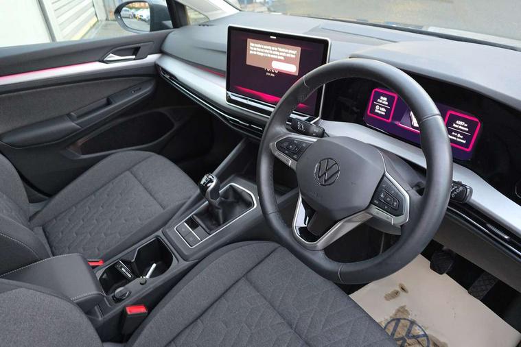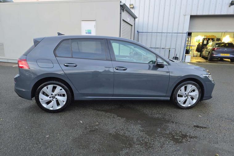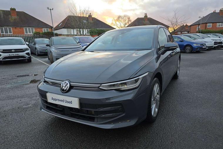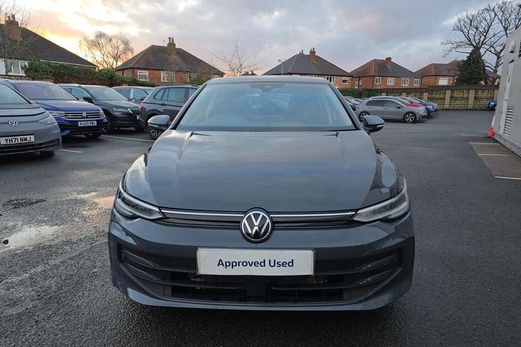 Activated carbon canister, Adaptive cruise control (ACC), Advanced driver attention and drowsiness monitor, Dynamic road sign display, E-Sim card for online connectivity, eCall emergency call system, Multi-color Digital cockpit pro, selection of different info profile possible, Multifunction front facing camera for distance control, Navigation system, Oncoming vehicle braking when turning including swerve support, Preparation for light assist system, Speed limiter, Speedo, rev counter, electronic odometer, trip, service interval display, exterior temperature and fuel gauge, Voice enhancer and voice control, Warning signal and warning light for front and rear seatbelts not fastened, We connect plus preparation, We connect preparation, Wireless app connect, Petrol Particulate Filter, Start-stop system with battery regeneration (recuperation - energy recovery during braking), XDS electronic differential lock for improved traction and handling, 2 USB C ports in front, 2 USB charging sockets on the centre console in the rear charging capacity upto 45W, Comfort telephony + wireless charging, without wireless aerial connection, Digital radio reception (DAB), Diversity antenna for FM reception, Gaming platform via car app, Infotainment system with 12.9" display, Mobile phone interface with inductive charging feature, 3rd brake light, Auto dimming rear view mirror, Auto headlights, Automatic headlamp activation with Coming home and Leaving home feature, Body colour door handles, Body colour door mirrors, Exterior ambient lighting with illuminated door handles, Exterior mirrors convex on the left and aspherical on the right, Front and rear electric windows, Heat insulating windshield made of laminated glass, LED daytime running lights, Rain sensor, Rear exhaust tailpipe, Rear fog light on one side and reversing lights on both sides, Rear side wing doors, Rear tinted glass 65% light absorbing from B pillar backwards, Rear windscreen washer and wiper with interval delay, Remote electrically foldable door mirrors, puddle lights and reverse activated passenger's door mirror, Standard bumpers, Welcome light with surround lighting, 12V socket in front centre console, 12V socket in luggage compartment, 3 rear head restraints, 3 seat bench in 2nd row, Chrome plated radiator grille inserts, air vent surrounds and light switch surrounds, Front centre armrest, Front head restraints, ISOFIX anchors for child seats on outer rear bench seats and on front passanger seat compatible for i-Size, Leather gearshift handle, Luggage compartment lighting, Rear cupholder and loadthough, Single front passenger seat, Soul black instrument panel, Split folding backrest with centre armrest and unsplit rear seat bench, Standard pedal cluster, Storm grey roof lining, Sun visors with illuminated vanity mirrors, Parking and comfort pack - Golf Estate/Hatchback, 3 point height adj front seatbelts + pretensioners, 3 rear three point seatbelts, ABS, Autonomous emergency braking front assist with pedestrian and cyclist monitoring, Child locks on rear doors, Driver and front passenger airbag with front passenger airbag deactivation, Electronic parking brake with auto hold, ESC (Electronic Stability Control), Extended pedestrian protection measures, Rear disc brakes, Two tone horn, Tyre pressure loss indicator, Volkswagen roadside assistance, Alarm with interior protection, Anti theft wheel bolts, Keyless start with SAFE lock, Preparation for alcohol interlock, Nature cross brushed decorative inserts for dashboard and front door panels,