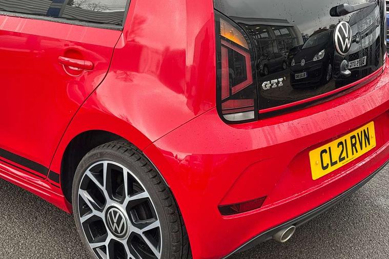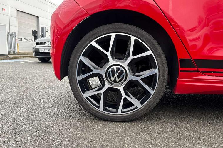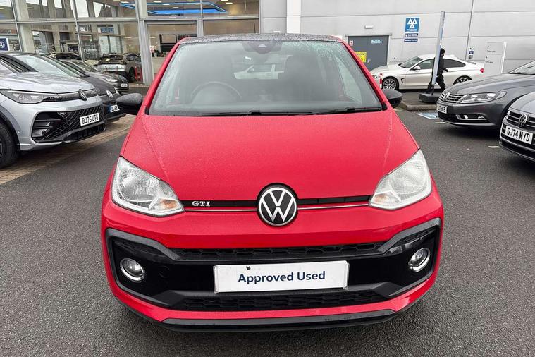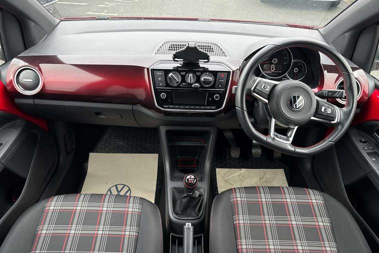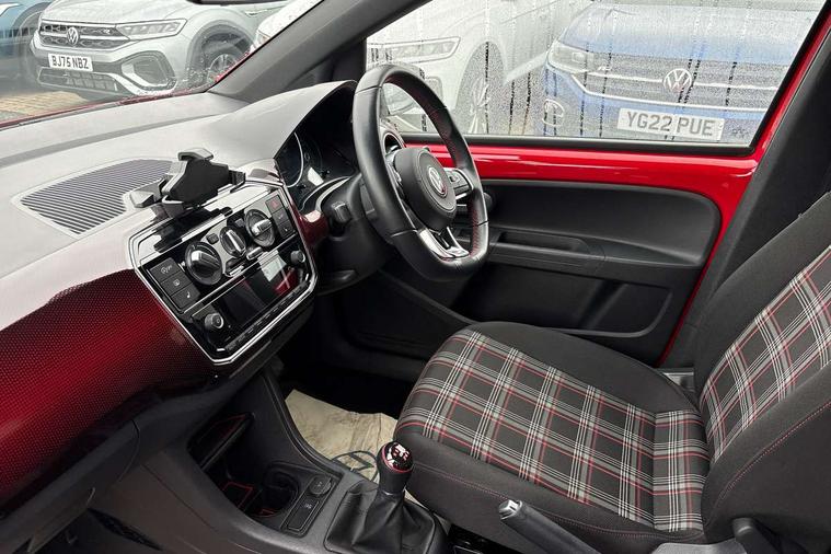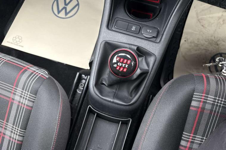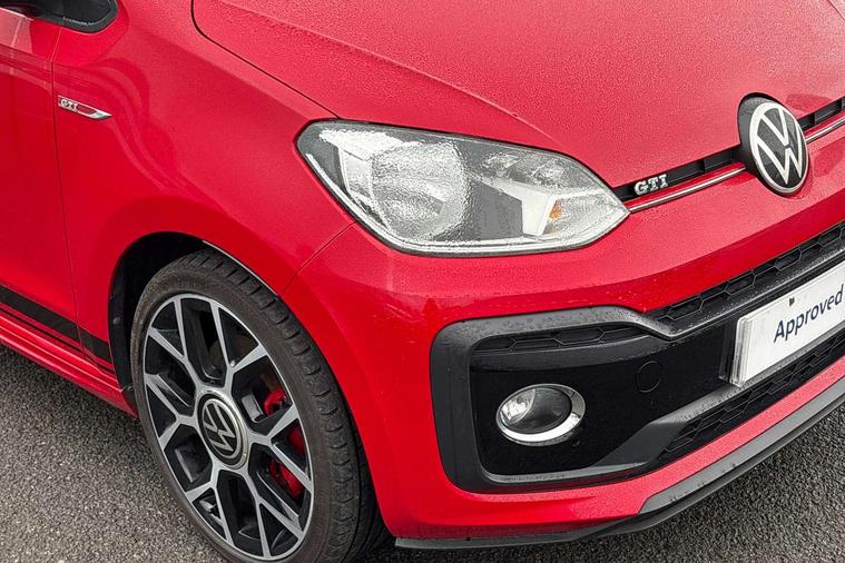 Digital clock, Lane assist, Multifunction computer, One touch indicators, Rev counter, Speed sensitive power steering, Speedometer, electronic odometer and fuel gauge, Volkswagen connect, Body lowered sports suspension, Galvanished body, Start/stop function with battery regeneration, Composition colour system with 5" screen, DAB, AUX in socket, SD card, MP3/WMA/AAC, 4 X 20W, bluetooth, audio connection and USB connectivity, Smartphone answering button on multifunction steering wheel with audio over the vehicle speaker system, Smartphone interface navigation system, Antenna, Black decals above door sill, Black radiator grille, Body colour door handles, Body coloured bumpers, Chrome trimmed surround on light, Door sill protectors in stainless steel with black honeycomb pattern inset and GTI logo, Electric front windows, GTI badge, Halogen clear headlights with integrated indicators and range adjustable, Heated rear window, High level 3rd brake light, LED daytime running lights, LED rear number plate lights, Left side chrome exhaust tailpipe, Manually dimming rear view mirror, Rear fog lights, Rear tailgate spoiler in gloss black, Rear tinted glass from B pillar backwards, approx 65% tinted, Rear wash/wipe, Red Stripe on lower tailgate, Red stripe with chrome detailing on lower radiator grille, Unique GTI badging on front wings, rear tailgate and front radiator grille, Windscreen wipers intermittent wipe, 12V accessory power point in centre console, 2 cup holders in the front and rear centre console, Ambient lighting red below upper dashpad, Black roof lining, Cooled glovebox, Driver seat height adjust, Drivers and front passengers easy entry sliding seat with memory function, Drivers and front passengers sun visors with vanity mirrors, Folding front seat backrest release on front passenger seat, Front and rear carpet mats with contrast stitching in red and grey, Front head restraints, Front sports seats, GTI logo and red contrast stitching on steering wheel, Heating/ventilation unit with 4 speed fan, Height adjustable rear seat head restraints with red contrast stitching (x2), Height adjustable steering wheel, Interior light delay, Isofix Preparation 2 Rear child seats, Jacara red cloth upholstery, Jack and tool kit, Luggage compartment cover, Luggage compartment lighting, Multifunction leather trimmed three-spoke steering wheel, gear knob and handbrake grip, Storage compartment in front doors, Two rear seats with 60/40 split folding rear seat backrest, Variable boot floor, GTI styling pack - Up, Winter pack - Up, 3 point front seatbelts with pre-tensioners, Anti-lock braking system with EDL, EBD + TCS, Curtain airbags for front and rear passengers, Driver and front passenger airbag with front passenger airbag deactivation, Driver/front passenger side airbags, Engine drag torque control, Front disc brakes, HBA (Hydraulic Brake Assist), High tone horn, Hill hold control, Rear drum brakes, Red brake calipers, Two 3 point rear seatbelts, Tyre pressure loss indicator, Volkswagen roadside assistance, Warning buzzer and light for front and rear seat belts if unfastened, Electronic engine immobiliser, Locking fuel filler cap, Remote central locking with 2 remote folding keys, Chrome surrounds to the air vents, radio controls and air conditioning, Matt chrome trim on interior door handles, infotainment system + instrument cluster, Red pixels dash pad, 17" Oswald alloy wheels with anti theft wheel bolts, Tyre mobility system,