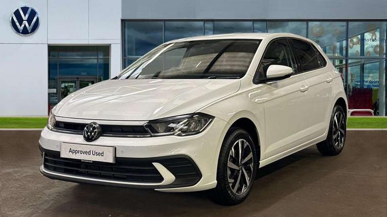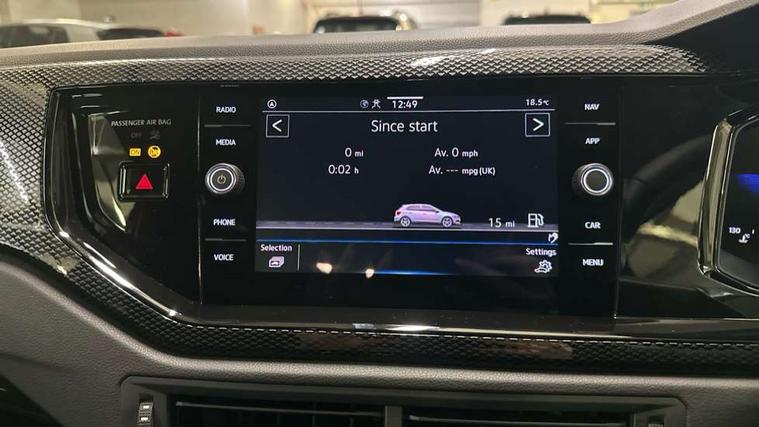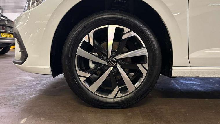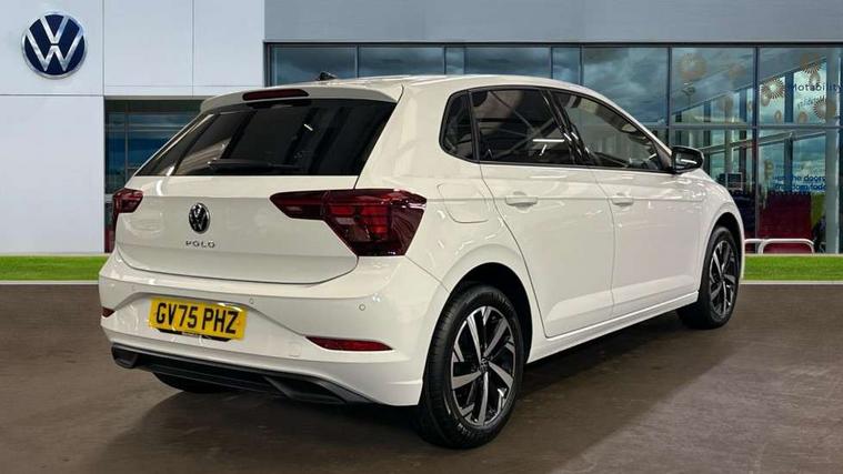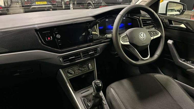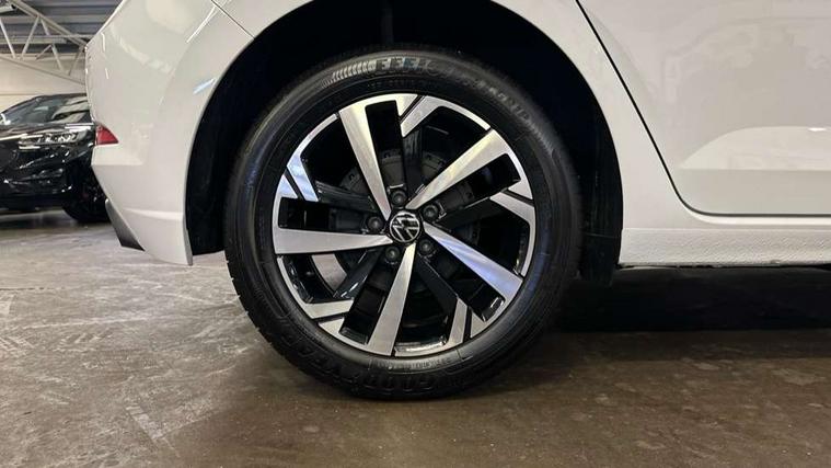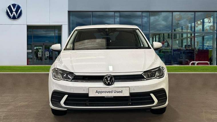 Adaptive cruise control without follow-to-stop and speed limiter, Advanced driver attention and drowsiness monitor, Bluetooth mobile phone interface, Dynamic road sign display, Emergency call service, Mobile phone preparation with inductive charging function, Multifunction front facing camera for distance control, Power assisted speed sensitive steering, Preparation for navigation system with media and internet package, Preparation for We connect and We connect plus, Rear view camera, Speedo and rev counter, electronic odometer, trip, service interval display and exterior temperature gauge, Standard rear axle, Travel Assist - Lane keeping system and traffic jam assist, Travel assist including emergency assist, Trip computer, Warning signal and warning light for front and rear seatbelts not fastened, Washer fluid level indicator, Wireless app connect, Front wheel drive, Rear shock absorpion, Start-stop system with battery regeneration (recuperation - energy recovery during braking), DAB Digital radio, Diversity antenna for FM reception, Automatic dimming interior rear view mirror, Automatic headlight control with LED separate daytime running lights with coming/leaving home function, Body colour bumpers with chrome inserts, Body colour door handles, Body colour door mirrors, Electric front windows, Engine badge deletion, Headlight range adjustment, Heat insulating and laminated safety glass windshield, LED Headlights, LED rear combination lamps, Power folding adjustable/heated exterior mirrors and front passenger exterior mirror lowering function, Rain sensor, Rear electric windows, Rear fog light, Rear side wing doors, Rear tinted glass from B-pillar backwards approx 65% tinted, Rear windscreen washer and wiper with interval delay, Third brake light, 12V power socket in centre console, 2 front and 2 rear reading lights with switch off delay and dimmer, 2 USB-C ports in the front, 2 USB-C charging sockets on the center console in the rear, 3 rear head restraints, 60/40 split folding rear seat and rear seat bench not split, Carpet mats, front and rear, Ceramique roof lining, Chrome plated radiator grille inserts, air vent surrounds and light switch surrounds, Door and side trim panel, Driver and front passenger seat height adjustment, Driver/passenger sunvisors with illuminated vanity mirrors, Front centre armrest, Front seat backrest storage pockets, Front standard seats, Handbrake lever handle in leather, Hartley/Thomas cloth upholstery, Headliner in recycled material, Isofix child seat preparation easy-fit (for two outer rear seats, and front passenger seat) compatible with I-size, Leather trimmed gear knob, Luggage compartment cover, Luggage compartment lighting, Removable luggage compartment floor, Single front passenger seat, Standard climatic zones, Standard pedal cluster, Three spoke leather wrapped multifunction steering wheel, Light and vision pack - Polo, 3 point height adj front seatbelts + pretensioners, 3 point seat belt for centre rear seat, 3 point seatbelts, outer rear with ECE lable, ABS, Driver and front passenger airbag with front passenger airbag deactivation, Drivers and front passengers safety optimised head restraints, ESC (Electronic stability control) + EDL (Electronic Differntial lock) and ASR (Traction control), Extended and predictive pedestrian/ cyclist protection, Front assist with autonomous emergency braking (for Adaptive Cruise Control ACC up to 130 mph), Front curtain and side airbags with center airbag, Front disc brakes, Hill hold control, Manual child lock in rear doors, Rear drum brakes, Single tone horn, Tyre pressure loss indicator, Alarm with interior protection, Anti-theft alarm system with interior monitoring, backup horn, and towing protection, Anti-theft wheel bolts, Electronic engine immobiliser, Lava stone black gloss/matt decorative inserts in dash and front door panels, 16" Torsby alloy wheels, Low rolling resistance tyres,