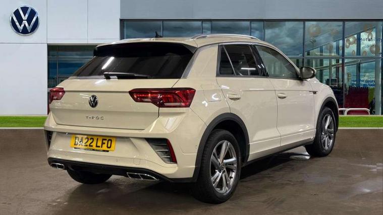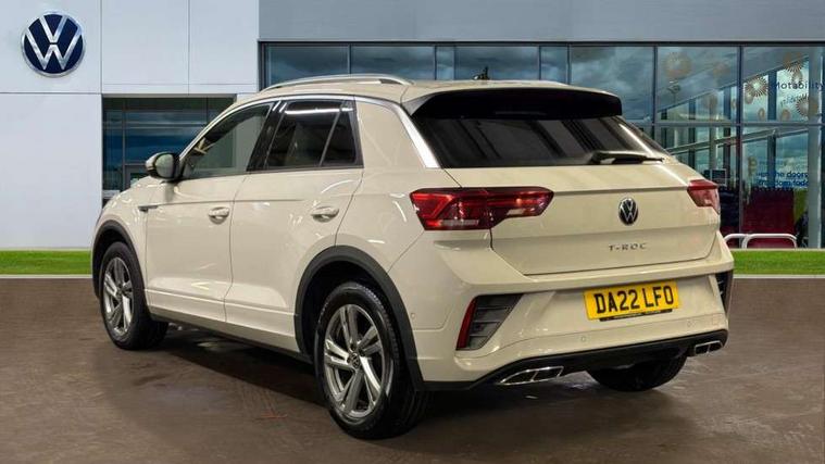 10.25" Digital cockpit pro, Bluetooth mobile phone interface, Driver alert system with fatigue detection, Driver tips and journey analysis, Emergency call service, Lane keeping system Lane Assist, Modified key software - reduce switch off time for key status change to Long no motion, Online services, Park assist including front and rear parking sensors, Service interval indicator, Tailgate/trunk lid release from outside, Think blue trainer driver tips and journey analysis, Warning sound and light for front seatbelts unfastened, Wireless app connect, Battery regeneration during braking, Start/stop function with battery regeneration, Diversity antenna for FM reception, Front and rear 6 speakers, Music playback - MP3, WMA and AAC files, Premium USB cable in choice of either Apple or Android smartphone compatibility, SD card slot, Simultaneous pairing of 2 compatible mobile devices, Title and cover art display, We Connect and We Connect Plus functionality, 3rd brake light, Auto dimming interior rear view mirror, Automatic hazard lights activation under emergency braking, Automatic headlight control with LED separate daytime running lights with coming/leaving home function, Extended roof spoiler, Exterior mirrors aspherical on driver side, convex on front passenger side, External USB type C socket and charging sockets, Front windscreen wiper with intermittent wipe and 4 position delay, Heated rear window, LED Plus headlamps, LED rear combination lamps, LED rear number plate lights, LED tail lamp rear comination lamps, Power windows with comfort operation and circuit breaker, R-Line design body coloured bumpers, Rain sensor, Rear exhaust tailpipe, Rear fog light on one side and reversing lights on both sides, Rear side wing doors, Rear wash/wipe with intermittent wipe setting, Remote electrically foldable door mirrors, puddle lights and reverse activated passenger's door mirror, 12V power socket in centre console, 3 rear head restraints, 3 seat bench in 2nd row, 4 load lashing points in luggage compartment, Air care climatronic air conditoning system with active combination filter and 2-zone temperature control, Black roof lining, Chrome plated radiator grille inserts, air vent surrounds and light switch surrounds, Door and side trim panel with leatherette insert, Drawer under drivers seat, Front + rear carpet mats, Front centre armrest, Front cupholders x 2, Front footwell illumination, Front reading light, Front scuff plates with R logo, Instrument lighting, white adjustable panel illumination, Interior ambient lighting and surround lighting, Interior light delay, Isofix child seat preparation, Leather gearshift handle, Load-through provision with cup holder when folded down ('Unsplit rear seat bench, split folding backrest, with centre armrest), Luggage compartment lighting, Single front passenger seat, Stainless steel pedals, Storage compartment in left and right luggage area, Storage compartment in rear doors, Storage compartments in driver and front passenger doors, Sunvisors with illuminated vanity mirrors, Variable boot floor, height adjustable and removable, Driver assistance pack without proactive passenger protection - T-Roc, 3 point height adj front seatbelts + pretensioners, 3 point seatbelts in outer rear with ECE label, ABS, Child locks on rear doors, Driver and front passenger airbag with front passenger airbag deactivation, Driver and front passenger safety-optimised head restraints, Drivers seatbelt reminder, Electronic parking brake, Electronic Stability Control (ESC) inc EDL (Electronic Differential Lock) and ASR (Traction Control), Front and rear passengers curtain airbag system including front side airbags, Front assist with city emergency braking and pedestrian monitoring, Front seat side impact airbags, Hill start assist, Predictive pedestrian protection, Rear disc brakes, Single tone horn, Tyre pressure loss indicator, Volkswagen roadside assistance, Alarm with interior protection, Anti-theft alarm system with interior monitoring, backup horn, and towing protection, Remote central locking with SAFELOCK, radio remote control with 2 remote control folding keys, Trims for alloy wheels,