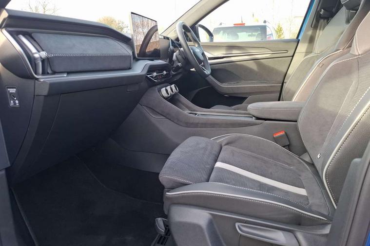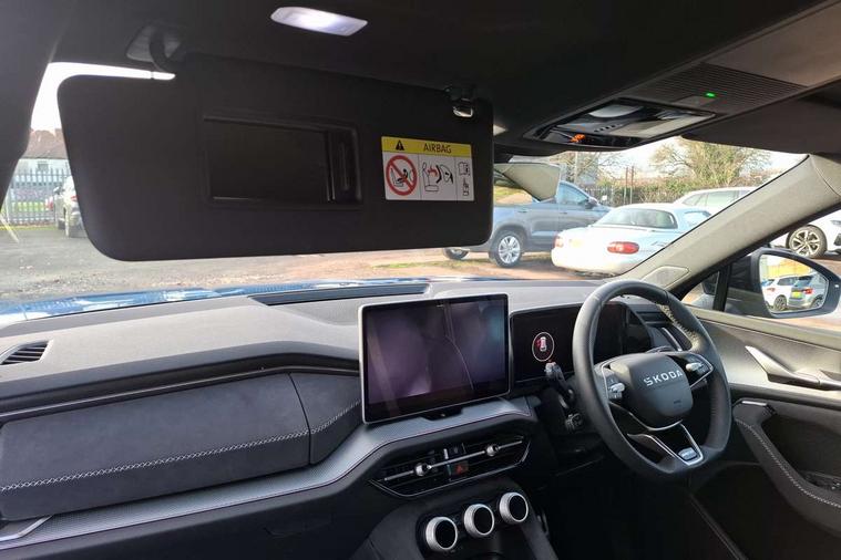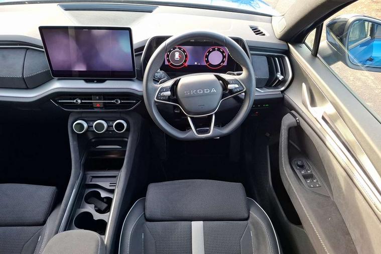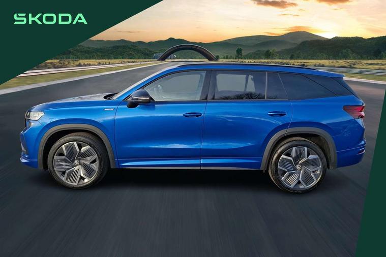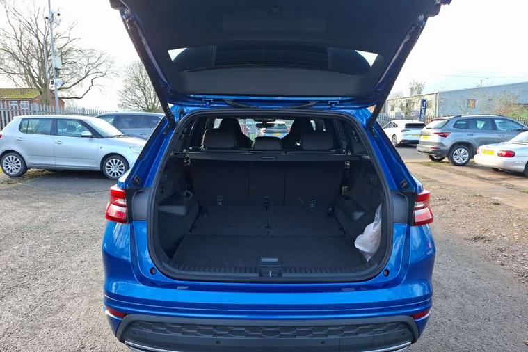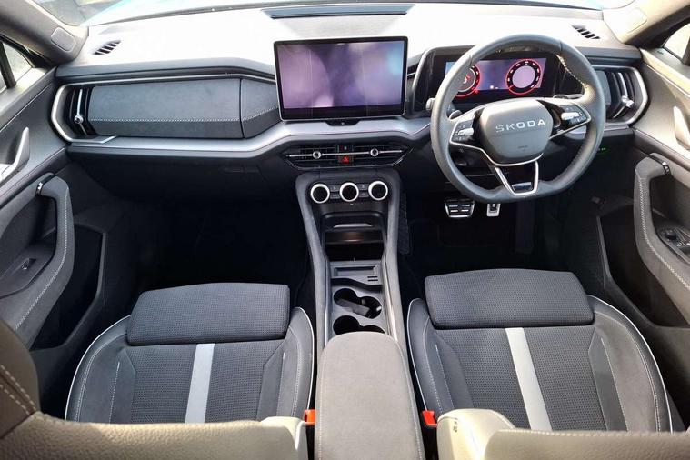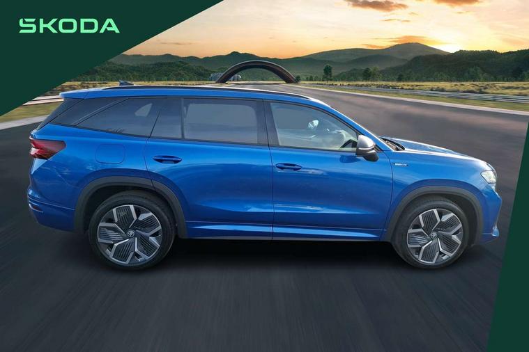 13" satellite navigation touchscreen display, Blind spot detection with door exit warning, Bluetooth system, ChatGPT functionality, Driver alert - Fatigue and drowsiness monitor, Dry display cleaner, Emergency call, Front and rear parking sensors, Front cross traffic assist, Lane assist, PAS, Rear traffic assist, Tailgate unlocking from outside, Traffic sign recognition, USB C Port x 2 in front centre console, Virtual Cockpit - 10.25" digital display, Voice control system, Wireless charging for two smartphones (15W) with cooling function, Wireless SmartLink for Apple CarPlay and Android Auto, Stop/start function, 2x USB-C in the rear, DAB Digital radio, Aero front windscreen wipers with intermittent function, Auto dimming rear view mirror, AWL (all weather lighting) and all weather light with cornering function, Black diffuser and decorative tailpipe with a unique dark chrome finish, Black roof rails, Black sports styling including front grille and window surrounds, Black wheel arch surrounds, Body colour door handles, Cornering light and poor weather light, Electric folding /adjustable/separted heated/folding door mirrors, auto dimming with boarding sports and memory function, Electric front and rear windows, Exterior black decorative trims, Front and rear sports bumpers including lower rear chrome strip, Gloss black door mirrors, Gloss black window frame and D pillar, Heat insulating glass in windshield, Heated rear window, Ice scraper in fuel tank cap, LED daytime running lights, LED third brake light in rear spoiler, Light assistant with automatic headlight control and coming home feature, Logo projection in door mirrors, Privacy glass, Rear roof spoiler, Rear side wing doors, Rear window wiper, Red decorative strip between rear LED lights, Safety reflectors on front and rear doors, Sportline badge on front fenders, Tailgate lettering in Black, Unique dark chrome design logo on alloy wheels, Window control switches with black trim, Windscreen wipers with rain sensor, Without engine designation, 1.5l bottle holder points in all door, 1x centre rear reading light, 2 seat bench in 3rd row, 3 configurable smart dials with 32mm coloured display, 3 seat bench in 2nd row, 4 foldable roof handles with rear coat hooks, Aluminium pedals, Ambient interior lighting - Dashboard, front-door stowage compartments, front and rear door panels and footwell lighting, Automatic gear selector on steering column, Chrome interior door handles, Driver/front passenger reading lights, Fabric headlining, Fixed bench 40:60:40 split folding backrests, Front and rear floor mats, Front centre armrest with jumbo box storage compartment, cup holder and 12V socket, Front sport seats, Height adjustable front headrests, Interior black decorative trims, Isofix child seat fittings in outer middle row rear seats and front passenger with top tether, Manually adjustable steering column, Pollen filter, Rear centre armrest with cupholders, Rear seat boot backrest release, Single front passenger seat, Skoda lettering on steering wheel, Storage pocket including mobile phone pockets on the backs of the front seats, Sunvisors with illuminated vanity mirrors, Three rear height adjustable headrests, Ticket holder on A Pillar, Tri zone climate control, Umbrella in door panel x1 made from sustainable materials, Upper and lower glovebox with card holder and coin compartment, USB C port by rear view mirror for charging only (15W), Acoustic package - Kodiaq, Performance package - Kodiaq, Sportline design selection pack - Kodiaq, Auto door release and activation of warning lights in the event of an accident, Driver and front passenger airbag with knee airbag and front passenger airbag deactivation, Electric child locks, Electronic parking brake, ESC (incl. ABS+EMD+MSR+ASR+EDL+HBA+DSR+RBS+ESBS+MCB+TSA+XDS), Front assist with braking reaction to vehicles, pedestrians and cyclists, Front disc brakes, Fuel cut off safety device, Height adjustable front 3 point seatbelts + pretensioners, Hill hold assist, Junction assist with automatic emergency braking, Rear disc brakes, Safety vest holder in door, Seat belt reminder for all seats, Three point rear seat belts, Two tone horn, Tyre pressure monitor, Alarm with interior monitoring and tilt sensor with safe function, Anti-theft wheel bolts, Immobiliser, Remote central locking with 2 keys, 20" Rila anthacite polished alloy wheel with black matte aero covers,