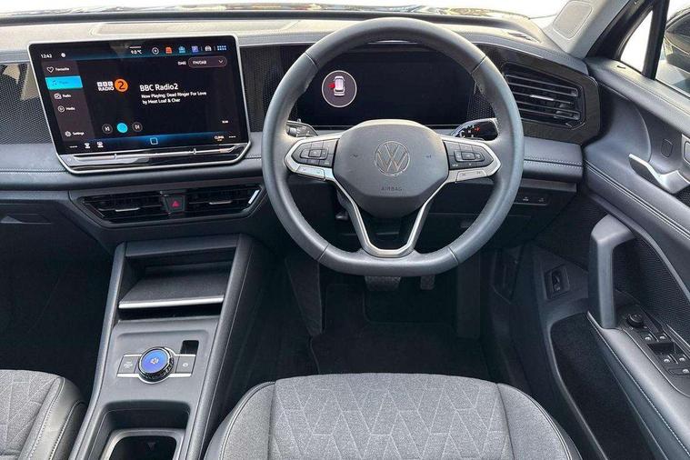 Adaptive cruise control (ACC), Advanced driver attention and drowsiness monitor, Bluetooth mobile phone interface, Car2X technology, Digital Cockpit Pro - 10.25" high resolution dash display screen with customisable menus and information, Dynamic road sign display, E-Sim card for online connectivity, eCall emergency call service, Front Assist - Autonomous emergency braking with pedestrian and cyclist monitoring, Lane change system, Side assist, Rear traffic alert and Exit warning system, Lane keeping system Lane Assist, Multifunction front facing camera, Oncoming vehicle braking when turning including swerve support, Park assistance plus with front and rear parking sensors, Power assisted steering with speed sensitive, Start/stop system with regenerative braking, Warning signal and warning light for front and rear seatbelts not fastened, Wireless App-Connect, Front wheel drive, Digital radio reception (DAB), Diversity antenna for FM reception, Ambient lighting with logo projection, Auto dimming interior rear view mirror, Automatic headlight control system, Body coloured bumpers and air intake with chrome trim, Body coloured door handles, Body-coloured exterior mirror housings, Coming/leaving home lighting function, Heat insulating glass in side and rear windows, Heat insulating windshield, Heated rear window, High level 3rd brake light, Illuminated door handle recesses, Illuminated lightline between headlamps, Rain sensor windscreen wipers, Rear fog light on one side, reversing light on both sides, Rear side wing doors, Rear wiper, 12V outlet in center console rear and in luggage compartment, 12V socket in centre console, 3 bench rear seats in 2nd row, Air care climatronic 3 zone air conditioning system with rear air conditioning control panel, Carpet mats, front and rear, Centre console with illuminated storage compartment with sliding cover and two drinks holders, Ceramique headlining, Door and side trim panel in foam film and woven fabric, Front centre armrest, ISOFIX anchors for child seats on outer rear seats and front passenger seat compatible with i-Size, Mechanical rear seat release, Power adjustable lumbar support in front, Rear bench seat, split folding, longitudinally movable and folding with load-through hatch and centre armrest, Safety optimised front head restraints, Single front passenger seat, Sun visors with illuminated vanity mirrors, Three rear head restraints, Variable luggage compartment floor, Comfort package with park assist plus and Safelock - Tiguan, Design package - Tiguan, 3 point seat belt for centre rear seats, 3 Point seat belts in front with pretensioners, 3 point seatbelts in outer rear with ECE label, Driver and front passenger airbag with front passenger airbag deactivation, Electronic parking brake with auto hold, Front and rear curtain airbags, Front and rear side airbags, Front centre airbag, Front disc brakes, Manual child proof rear door locks, Rear disc brakes, Two tone horn, Warning triangle, Anti theft wheel bolts, Soul instrument panel,