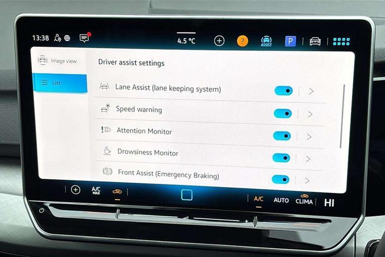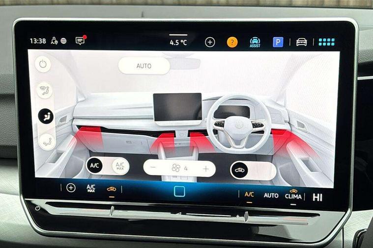 Activated carbon canister, Adaptive cruise control (ACC), Advanced driver attention and drowsiness monitor, Dynamic road sign display, E-Sim card for online connectivity, eCall emergency call system, Multi-color Digital cockpit pro, selection of different info profile possible, Multifunction front facing camera for distance control, Navigation system, Oncoming vehicle braking when turning including swerve support, Speed limiter, Speedo, rev counter, electronic odometer, trip, service interval display, exterior temperature and fuel gauge, Voice enhancer and voice control, Warning signal and warning light for front and rear seatbelts not fastened, We connect plus preparation, We connect preparation, Wireless app connect, Hybrid propulsion system, Petrol Particulate Filter, Start-stop system with battery regeneration (recuperation - energy recovery during braking), XDS electronic differential lock for improved traction and handling, 2 USB C ports in front, 2 USB charging sockets on the centre console in the rear charging capacity upto 45W, Digital radio reception (DAB), Diversity antenna for FM reception, Gaming platform via car app, Infotainment system with 12.9" display, Mobile phone interface with inductive charging feature, 3rd brake light, Automatic headlamp activation with Coming home and Leaving home feature, Body colour door handles, Body colour door mirrors, Exterior mirrors convex on the left and aspherical on the right, Front and rear electric windows, Heat insulating windshield made of laminated glass, LED separate daytime running light, Rear exhaust tailpipe, Rear fog light on one side and reversing lights on both sides, Rear side wing doors, Rear tinted glass 65% light absorbing from B pillar backwards, Rear windscreen washer and wiper with interval delay, Remote electrically foldable door mirrors, puddle lights and reverse activated passenger's door mirror, Standard bumpers, Welcome light with surround lighting, 12V socket in front centre console, 12V socket in luggage compartment, 3 rear head restraints, 3 seat bench in 2nd row, Chrome plated radiator grille inserts, air vent surrounds and light switch surrounds, Front centre armrest, Front head restraints, Front seat lumbar support adjuster, ISOFIX anchors for child seats on outer rear bench seats and on front passanger seat compatible for i-Size, Luggage compartment lighting, Manual height adjustable front passenger seat, Manually height adjustable driver seat, Plastic gear knob, Rear cupholder and loadthough, Single front passenger seat, Soul black instrument panel, Split folding backrest with centre armrest and unsplit rear seat bench, Standard pedal cluster, Storm grey roof lining, Sun visors with illuminated vanity mirrors, Technology park and comfort pro package - Golf Hatchback, 3 point height adj front seatbelts + pretensioners, 3 rear three point seatbelts, ABS, Autonomous emergency braking front assist with pedestrian and cyclist monitoring, Child locks on rear doors, Driver and front passenger airbag with front passenger airbag deactivation, Electronic parking brake with auto hold, ESC (Electronic Stability Control), Extended pedestrian protection measures, Hill start assist, Rear disc brakes, Two tone horn, Tyre pressure loss indicator, Volkswagen roadside assistance, Anti theft wheel bolts, Preparation for alcohol interlock, Nature cross brushed decorative inserts for dashboard and front door panels,