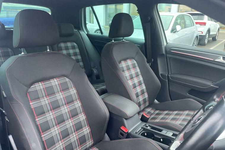 'Lights On' Reminder warning buzzer, ACC - Adaptive cruise control with front assist, forward collision warning, distance monitoring, city emergency brake and speed limiter, Active information display - 12.3" high resolution TFT display, Bluetooth telephone and audio connection for compatible devices, Brake pad wear indicator warning light, Car information display, Driver alert system, Driver profile selection, Driving Mode Selection with four preset modes - Eco, normal, sport or individual modes, Front assist, radar sensor controlled distance monitor, city emergency braking + predictive pedestrian protection, Front assistant collision mitigation, Instrument cluster in white, Multifunction computer with visual gear change recommendation for fuel consumption, Power assisted speed sensitive electro-mechanical steering, Rear view camera, Speedo, rev counter, electronic odometer, trip, service interval display, exterior temperature and fuel gauge, Stop/start system, Ultrasonic front and rear optical and audible parking sensors, Warning buzzer and light for front seatbelts unfastened, Battery regeneration during braking, Limited slip differential, Lowered sports suspension, Composition media system, DAB Digital radio receiver, MDI multi device interface, MP3/WMA compatability, Multi device interface (MDI) with USB connection, Premium USB cable in choice of either Apple or Android smartphone compatibility, SD card slot, SMS Functionality, Title and cover art display, 4 X 20W output, USB connection and socket, USB and SD card connectivity, Volkswagen media control, 3D-LED tinted rear light clusters with indicator sweep function, Automatic dimming rear view mirror/rain sensor, Black rear diffuser, Body colour door handles, Body colour door mirrors with integrated indicators, Body colour rear roof spoiler, Body colour sports bumpers, Chrome trimmed front air intake surrounds, Darkened rear light clusters, Electric front windows, Electric rear windows, Electrically adjustable and heated door mirrors, Extended sill strips flared, Glavanised body, Heated rear windscreen, High level 3rd brake light incorporating LED Technology, Honeycomb radiator grille - black, LED front fog lights, Range adjustable headlights via infotainment system with LED daytime running lights, Rear fog lamp, Rear number plate lights incorporating LED technology, Rear window aerial, Rear window wash/wipe with intermittent wipe, Reflectors in all doors, Remote electrically foldable door mirrors, door mirror puddle lights and reverse activated kerb-view adjustment on passengers door mirror, Twin exhaust tailpipe, Windscreen wipers/ intermittent wipe + 4 position delay, 12V socket in luggage compartment, 3 rear headrests, 4 load lashing points in luggage compartment, 60/40 split folding rear seat backrest, Bag hook in luggage compartment x 2, Black roof lining, Climate control - 2 zone electronic air conditioning with automatic air recirculation and allergy filter, Cooled glovebox, Dust/pollen filter, Front + rear carpet mats, Front centre armrest with storage compartment and two rear air vents, Front footwell lights, Front reading lights, Front seat back storage pockets, Grab handles front x 2, rear x 2 with integrated coat hooks, Height and reach adjustable steering wheel, Illuminated door sills, Illuminated vanity mirrors, Instrument lighting white adjustable panel illumination, Interior light delay, Isofix preparation for 2 rear child seats, Leather gear knob and handbrake grip, LED front and rear reading lights, Load through provision with rear centre armrest and cupholders x2, Luggage compartment light, Multi-function leather steering wheel with red stitching, Multifunction leather steering wheel with leather trimmed gear knob, Overhead storage box, Stainless steel pedals, Storage box in luggage compartment, Storage compartment in roof console with cover, Storage compartments in front doors, Storage compartments in rear doors, Stowable luggage compartment cover, Sun visors, Three spoke multi-function leather trimmed steering wheel and gearknob, Variable boot floor, height adjustable and removable, Ambient lighting pack - Golf, Convenience Pack - Golf, Light and Sight pack - Golf, Mirror pack - Golf, 3 rear three point seatbelts, Airbags - Driver's and front passenger's, curtain airbag, Driver's knee, front side impact and passenger's airbag deactivation switch, Anti-lock Braking System (ABS) with Hydraulic Brake Assist (HBA), Automatic post collision braking system, Child locks on rear doors, Driver/Passenger optimised head restraints, Electronic parking brake with auto hold, Electronic stability control (ESC) including Electronic differential lock (EDL) and ASR (Traction control) with deactivation via infotainment system, Pre crash preventive occupant protection, Red brake calipers, Three point height adjustable front seatbelts with tensioners, Tyre pressure loss indicator, Uprated front disc brakes + calipers, Alarm with interior protection and deactivation via infotainment system, Electronic engine immobiliser, Keyless entry, Remote central locking with 2 remote folding keys, Chrome plated air vent surround, Chrome plated electric mirror adjustment light switch surround, Honeycomb black decorative inserts, Piano black centre console, Space saver spare wheel,