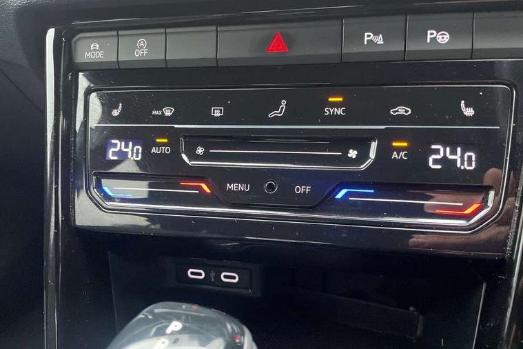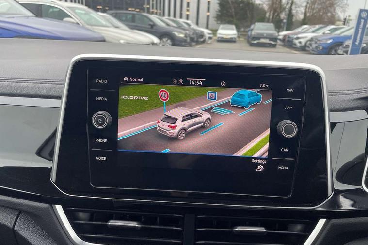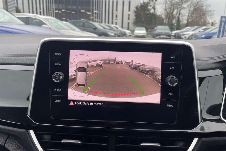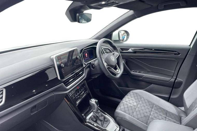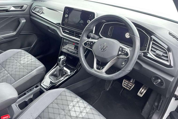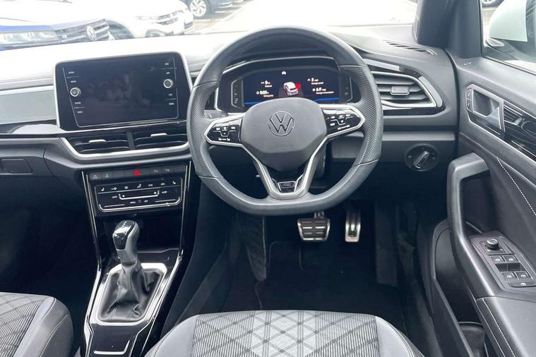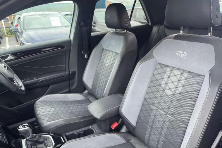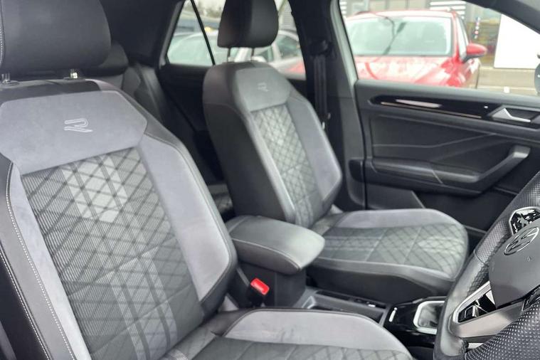 10.25" Digital cockpit pro, Bluetooth mobile phone interface, Driver alert system with fatigue detection, Driver tips and journey analysis, Emergency call service, Lane keeping system Lane Assist, Modified key software - reduce switch off time for key status change to Long no motion, Online services, Park assist including front and rear parking sensors, Service interval indicator, Tailgate/trunk lid release from outside, Think blue trainer driver tips and journey analysis, Warning sound and light for front seatbelts unfastened, Wireless app connect, Battery regeneration during braking, Start/stop function with battery regeneration, Diversity antenna for FM reception, Front and rear 6 speakers, Music playback - MP3, WMA and AAC files, Premium USB cable in choice of either Apple or Android smartphone compatibility, SD card slot, Simultaneous pairing of 2 compatible mobile devices, Title and cover art display, We Connect and We Connect Plus functionality, 3rd brake light, Auto dimming interior rear view mirror, Automatic hazard lights activation under emergency braking, Automatic headlight control with LED separate daytime running lights with coming/leaving home function, Chrome plated radiator grille inserts, air vent surrounds and light switch surrounds, Extended roof spoiler, Exterior mirrors aspherical on driver side, convex on front passenger side, External USB type C socket and charging sockets, Front windscreen wiper with intermittent wipe and 4 position delay, Heated rear window, LED Plus headlamps, LED rear combination lamps, LED rear number plate lights, LED tail lamp rear comination lamps, Power windows with comfort operation and circuit breaker, R-Line design body coloured bumpers, Rain sensor, Rear exhaust tailpipe, Rear fog light on one side and reversing lights on both sides, Rear side wing doors, Rear wash/wipe with intermittent wipe setting, Remote electrically foldable door mirrors, puddle lights and reverse activated passenger's door mirror, 12V power socket in centre console, 3 rear head restraints, 3 seat bench in 2nd row, 4 load lashing points in luggage compartment, Air care climatronic air conditoning system with active combination filter and 2-zone temperature control, Black roof lining, Door and side trim panel with leatherette insert, Drawer under drivers seat, Front + rear carpet mats, Front centre armrest, Front cupholders x 2, Front footwell illumination, Front reading light, Front scuff plates with R logo, Instrument lighting, white adjustable panel illumination, Interior ambient lighting and surround lighting, Interior light delay, Isofix child seat preparation, Leather gearshift handle, Load-through provision with cup holder when folded down ('Unsplit rear seat bench, split folding backrest, with centre armrest), Luggage compartment lighting, Single front passenger seat, Stainless steel pedals, Storage compartment in left and right luggage area, Storage compartment in rear doors, Storage compartments in driver and front passenger doors, Sunvisors with illuminated vanity mirrors, Variable boot floor, height adjustable and removable, Driver assistance pack without proactive passenger protection - T-Roc, 3 point height adj front seatbelts + pretensioners, 3 point seatbelts in outer rear with ECE label, ABS, Child locks on rear doors, Driver and front passenger airbag with front passenger airbag deactivation, Driver and front passenger safety-optimised head restraints, Drivers seatbelt reminder, Electronic parking brake, Electronic Stability Control (ESC) inc EDL (Electronic Differential Lock) and ASR (Traction Control), Front and rear passengers curtain airbag system including front side airbags, Front assist with city emergency braking and pedestrian monitoring, Front seat side impact airbags, Hill start assist, Predictive pedestrian protection, Rear disc brakes, Single tone horn, Tyre pressure loss indicator, Volkswagen roadside assistance, Alarm with interior protection, Anti-theft alarm system with interior monitoring, backup horn, and towing protection, Remote central locking with SAFELOCK, radio remote control with 2 remote control folding keys, Trims for alloy wheels,