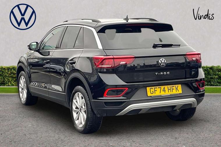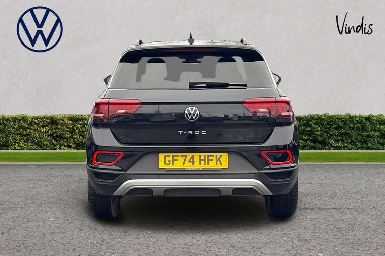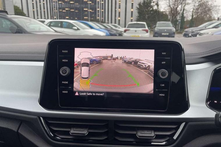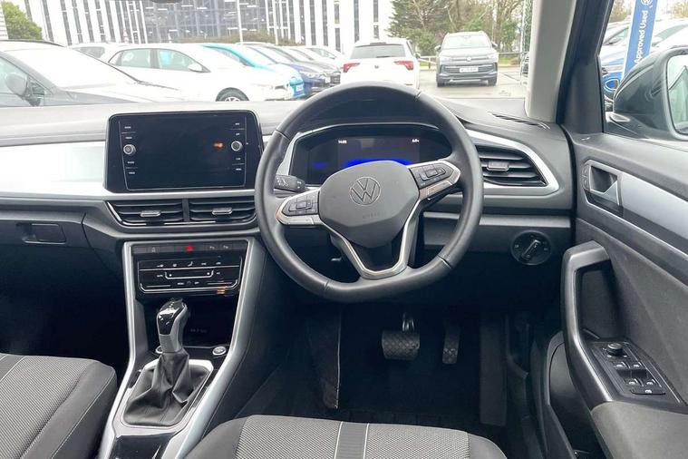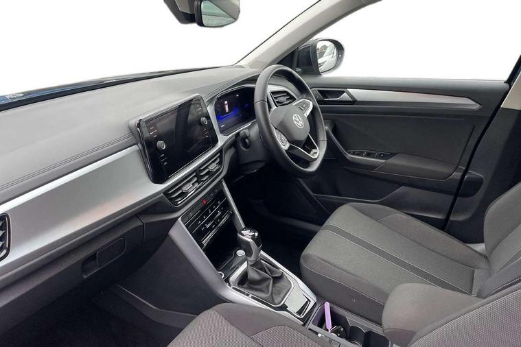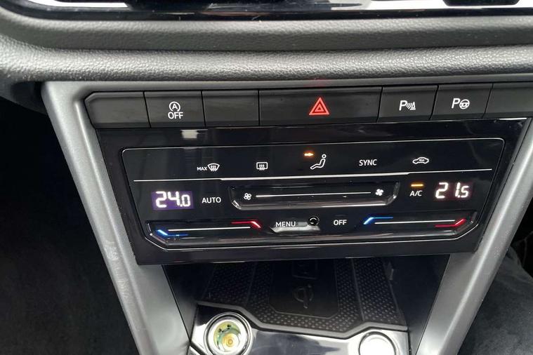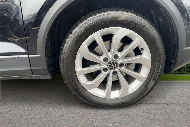 Advanced driver attention and drowsiness monitor, Dynamic road sign display, Emergency call service, Lane keeping system Lane Assist, Mobile phone interface, Modified key software - reduce switch off time for key status change to Long no motion, Online services, Park assist including front and rear parking sensors, Power assisted speed sensitive steering, Rear view camera, Service interval indicator, Tailgate/trunk lid release from outside, Think blue trainer driver tips and journey analysis, Warning sound and light for front seatbelts unfastened, Wireless app connect, Wireless Smartphone charger, Battery regeneration during braking, Front shock absorption, Rear shock absorption chassis with increased ride height, Start/stop function with battery regeneration, DAB Digital radio, Diversity antenna for FM reception, Front and rear 6 speakers, Music playback - MP3, WMA and AAC files, Premium USB cable in choice of either Apple or Android smartphone compatibility, SD card slot, Simultaneous pairing of 2 compatible mobile devices, Title and cover art display, We Connect and We Connect Plus functionality, Auto dimming interior rear view mirror, Automatic hazard lights activation under emergency braking, Automatic headlight control with LED separate daytime running lights with coming/leaving home function, Black roof rails, Body coloured bumpers and radiator grille with chrome trim and front fog lamps with chrome bezel, Body coloured exterior mirror housings and door handles, Electrically adjustable and heated door mirrors, Extended roof spoiler, Exterior mirrors aspherical on driver side, convex on front passenger side, External USB type C socket and charging sockets, Front windscreen wiper with intermittent wipe and 4 position delay, Heated rear window, LED 3rd brake light, LED rear combination lamps, LED rear number plate lights, Power windows with comfort operation and circuit breaker, Privacy glass for rear side windows and rear window, Rain sensor, Rear exhaust tailpipe, Rear fog light on one side and reversing lights on both sides, Rear side wing doors, Rear wash/wipe with intermittent wipe setting, Remote electrically foldable door mirrors, puddle lights and reverse activated passenger's door mirror, 12V power socket in centre console, 3 rear head restraints, 3 seat bench in 2nd row, 4 load lashing points in luggage compartment, Air care climatronic air conditoning system with active combination filter and 2-zone temperature control, Black stitching for floor mats, Ceramique roof liner, Cloth upholstery, Door and side trim panel in cloth, Drawer under drivers seat, Driver/front passenger seat height adjustment, Front centre armrest, Front comfort sports seats, Front cupholders x 2, Front reading light, Front seat back storage pockets, Glove compartment door with light, Instrument lighting, white adjustable panel illumination, Interior ambient lighting and surround lighting, Interior light delay, Isofix child seat preparation, Leather gearshift handle, Load-through provision with cup holder when folded down ('Unsplit rear seat bench, split folding backrest, with centre armrest), Luggage compartment lighting, Lumbar support for driver's and front passengers seat, Non-folding front passenger seat backrest, Single front passenger seat, Storage compartment in left and right luggage area, Storage compartment in rear doors, Storage compartments in driver and front passenger doors, Sunvisors with illuminated vanity mirrors, Variable boot floor, height adjustable and removable, Driver assistance pack without proactive passenger protection - T-Roc Life/Match, 3 point height adj front seatbelts + pretensioners, 3 point seatbelts in outer rear with ECE label, ABS, Child locks on rear doors, City emergency braking and pedestrian monitoring, Driver and front passenger airbag with front passenger airbag deactivation, Driver and front passenger safety-optimised head restraints, Drivers seatbelt reminder, Electronic parking brake, Electronic Stability Control (ESC) inc EDL (Electronic Differential Lock) and ASR (Traction Control), Front and rear passengers curtain airbag system including front side airbags, Front disc brakes, Hill start assist, Predictive pedestrian protection, Rear disc brakes, Two tone horn, Tyre pressure loss indicator, Volkswagen roadside assistance, Alarm with interior protection, Pewter matt decorative inserts for intrument panel, centre console and door panels at the front, Trims for alloy wheels,
