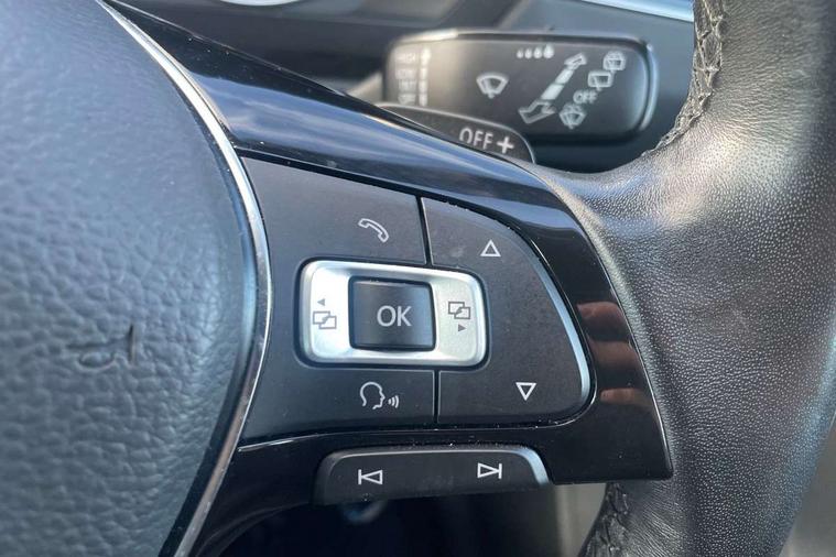 App-Connect, Bluetooth phone integration system, Drive mode selector, Instrument cluster, Lane assist, Low washer fluid warning light, Outside temperature display, Service interval indicator, Warning lights, Diesel particulate filter, Aux-in socket, DAB Digital radio, SD card slot, USB connection, Auto dimming interior mirror, Body colour door handles, Body colour door mirrors, Body coloured bumpers, Chrome side window surrounds, Chrome trimmed radiator grille, Coming/leaving home lighting function, Dusk sensor + auto driving lights, Electric folding door mirrors, Electric heated + adjustable door mirrors, Front and rear electric windows, Rain sensor windscreen wipers, Silver roof rails, Tinted windows (B pillar backwards), 3 rear headrests, 3 zone climate control, 4 load lashing points, 40:20:40 split folding rear seats, Front + rear carpet mats, Front centre armrest with 12v socket, Front centre armrest with storage + rear 2 air vents + cupholders, Front seatback folding tables, Height/reach adjust steering wheel, Illuminated driver/passenger vanity mirrors, Illuminated scuff plates, Interior light with delay, Isofix Preparation 2 Rear child seats, Leather gear knob, Lockable cooled glovebox, Luggage compartment lighting, Map pockets on front seats, Rear cupholders, Removable luggage cover, Sliding/reclining rear seats, Storage compartment in driver's door, Storage compartment in passenger's door, Storage drawers under front seats, Storage tray on dashboard, Sunglasses storage, Variable boot floor, 3 rear 3 point seatbelts, ABS+EBD+Brake assist, Active bonnet, Active pedestrian safety system, Curtain airbags, Driver/Front Passenger airbags, Driver/Passenger whiplash optimised head restraints, Drivers knee airbag, Electronic parking brake with auto hold, ESP with EDL + ASR, First aid kit, Front assist including city emergency braking, Front side airbags, Head airbag system, Height adjustable front 3 point seatbelts + pretensioners, Hill hold control, Passenger airbag deactivate switch, Pre crash system, Rear side airbags, Seatbelt warning lamp and buzzer, Warning triangle, Alarm with interior protection, Electronic engine immobiliser, Chrome door trim inserts, Titan silver decorative inserts, Steel space saver spare wheel,