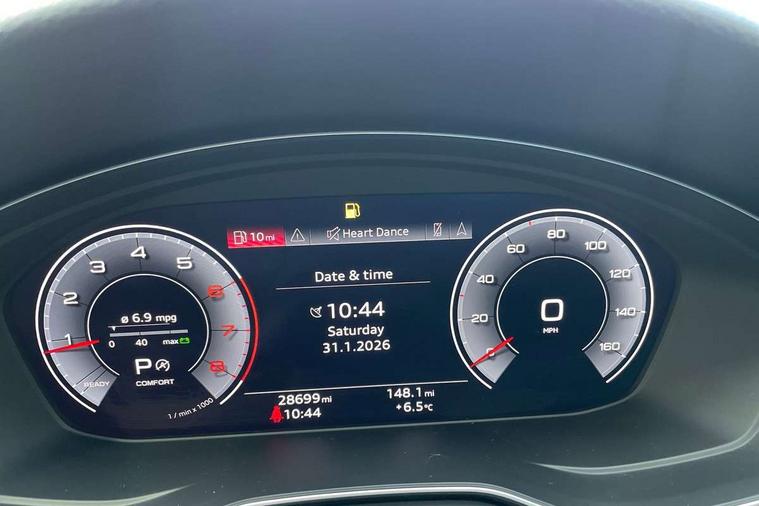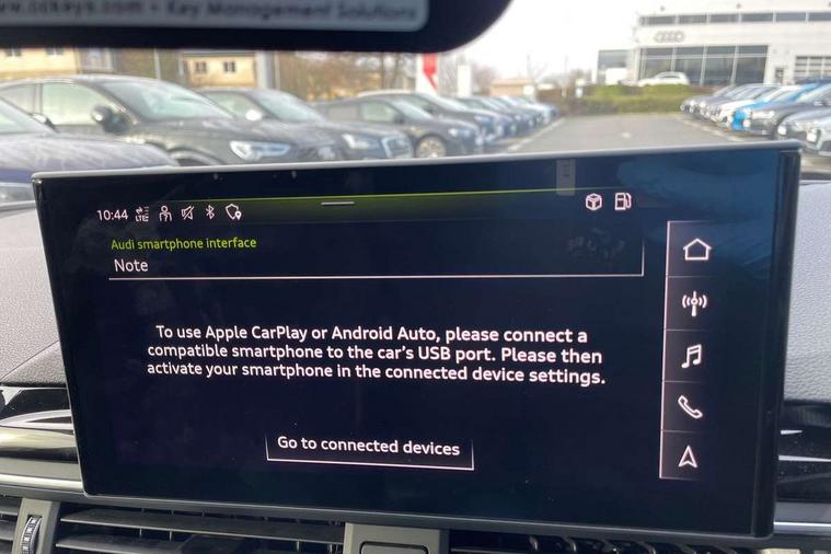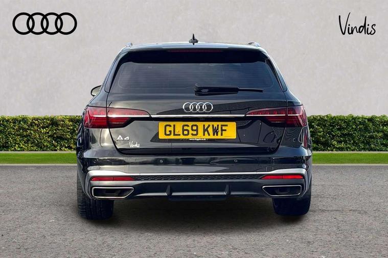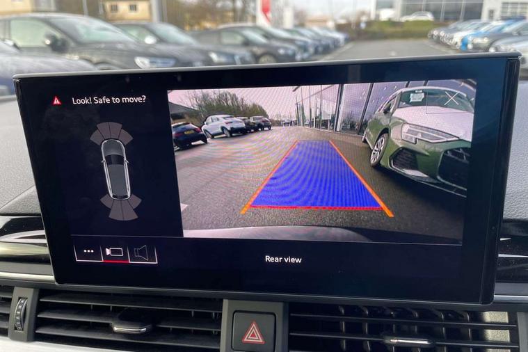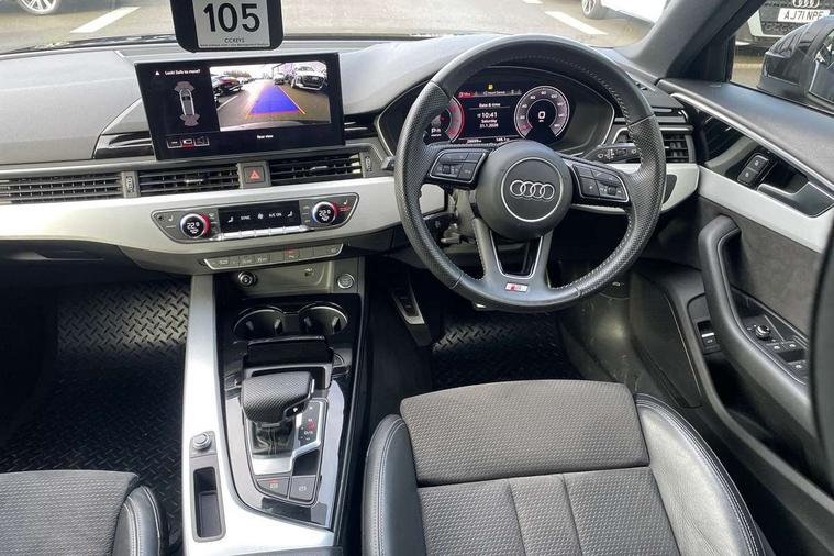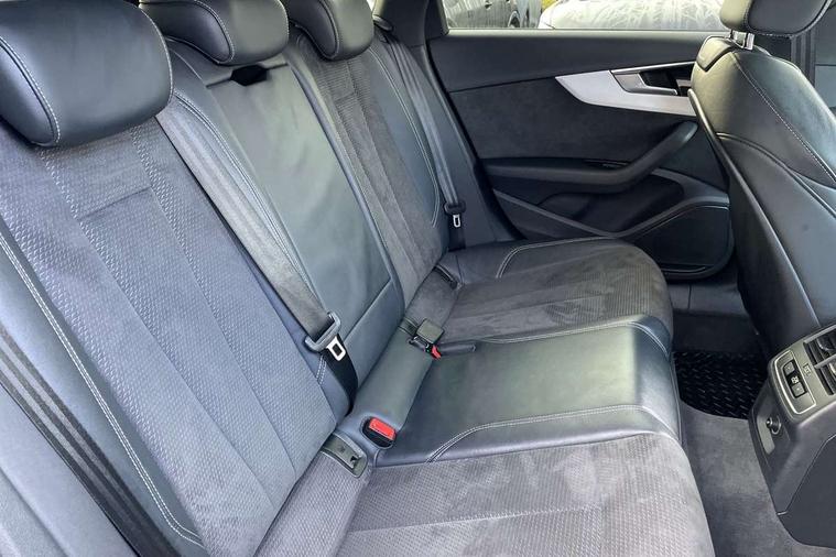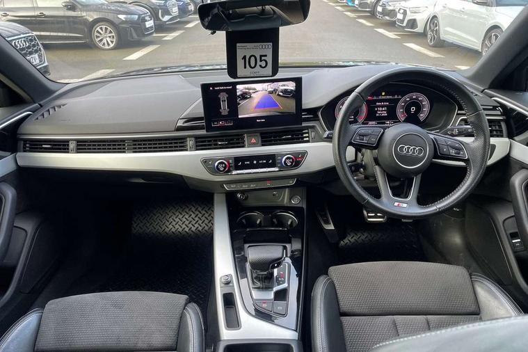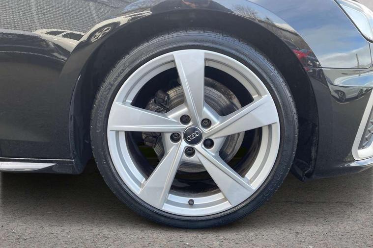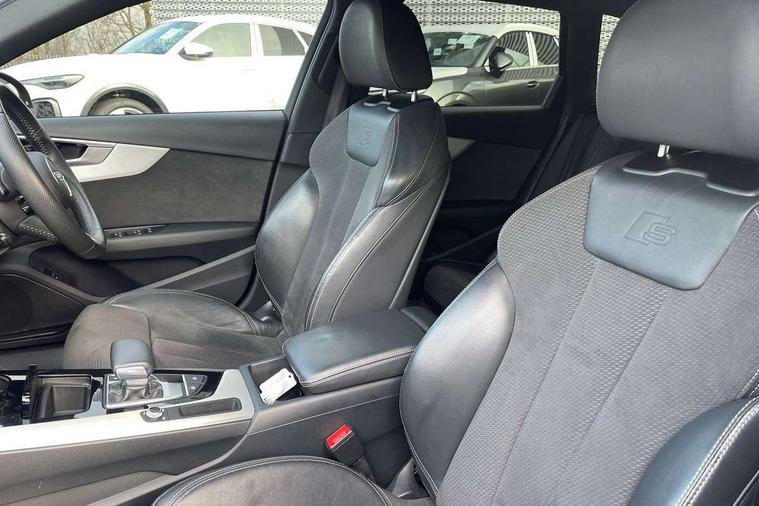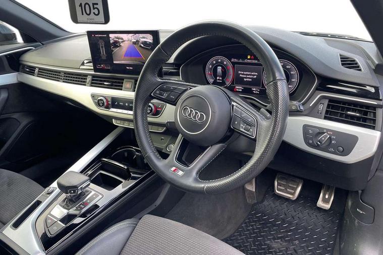Audi connect safety and service (e-call), Audi drive select, Audi parking system plus with front and rear sensors, Audi smartphone interface, Audi virtual cockpit, Automatic start-stop system with coasting functionality and efficiency programme, Bluetooth interface, Electromechanical power steering, MMI Navigation plus with MMI touch includes 10.1" high resolution colour MMI display, 3D map, Power operated tailgate, Rear view camera, Voice control system, 54 litre fuel tank, Sports suspension lowered by 23mm, 2 USB charging ports, 8 passive loudspeakers, DAB digital radio reception, Aluminium roof rails, Auto dimming rear view mirror, Body colour door handles, Body colour front spoiler lip, Body colour side sill trim, Body coloured door mirrors, Electrically folding auto dimming/adjustable/heated door mirrors with LED side indicators and kerb view function for passenger side, Grained matt black side air inlets with matt aluminium silver inlay, High beam assistant, Honeycomb structure radiator grille in grained matt black, LED headlights with LED rear lights + dynamic rear indicators + headlight adjustment and high beam, turning light + LED daytime running lights, Matt aluminium silver tailpipe trim, New design rear diffuser, Privacy glass, Rain and light sensors, S Line badges on the front wings, S line front and rear bumpers with side skirts, S Line rear diffuser in matt titanium black with trim strip in matt aluminium silver, S Line roof edge spoiler, Windscreen with acoustic glazing, 4 way electric lumbar support for driver and front passenger, 40/20/40 split folding 3 rear seat bench in 3 parts with rear centre armrest, Black cloth headlining, Black perforated leather gearknob, Contrast stitching on seats, steering wheel and gear lever gaiter, Deluxe 3 zone electronic climate control, Door sill trims with aluminium inlay, Electric load area cover, Front and rear head restraints, Front centre armrest, Heated front seats, Illuminated door sill trims with S logo, ISOFIX child seat mounting and top tether, Manual seat adjustment, Stainless steel pedals and foot rest, Tool kit, High gloss package - A4, LED Interior light pack - A4/S4, 3 rear seatbelts, 6 airbags - Driver, front passenger, curtain and side windows, Electronic Stabilisation Control (ESC) including ABS, ASR and EDL, Hill hold assist, Multi collision brake assist, Pop-up bonnet for pedestrian protection, Pre sense city, Seatbelt monitoring, Warning triangle and first aid kit, Anti theft alarm, Anti theft wheel bolts, Keyless Go, Matt brushed aluminium inlays, Tyre repair kit,