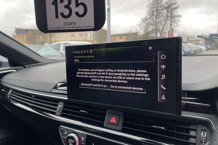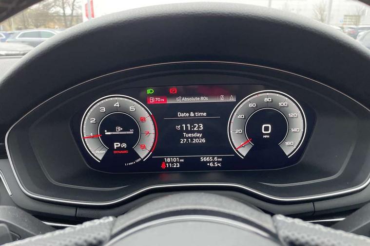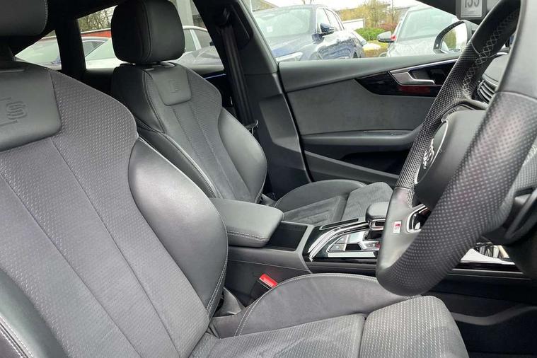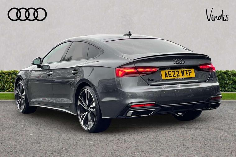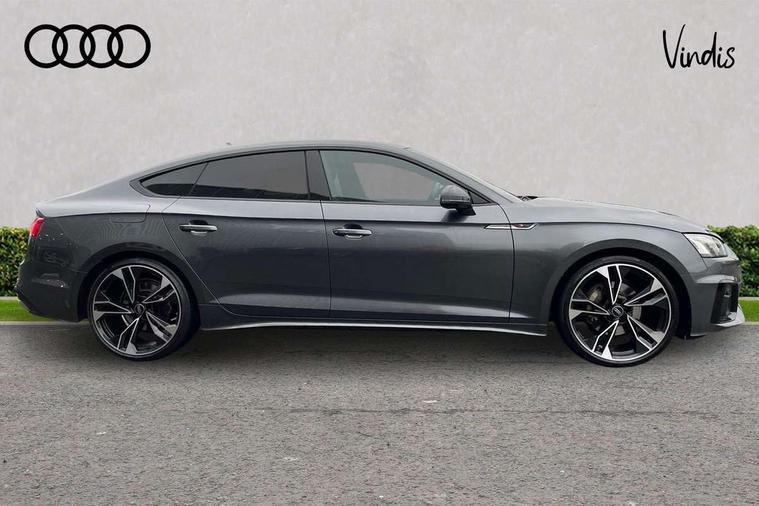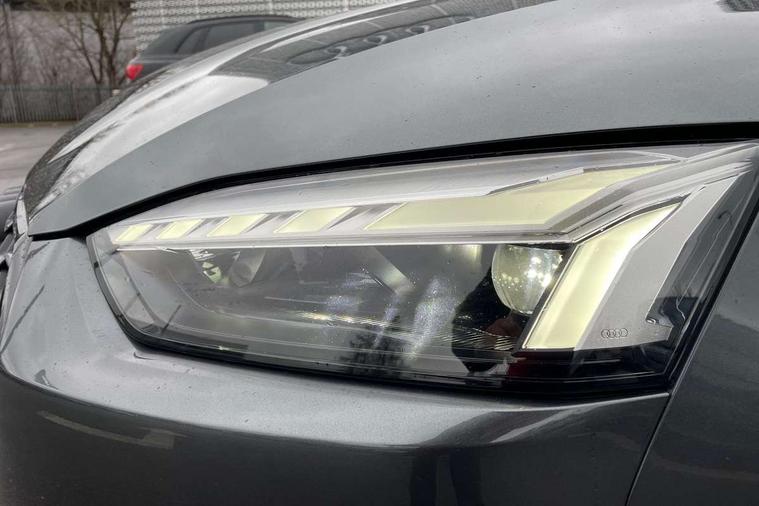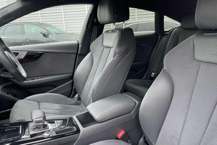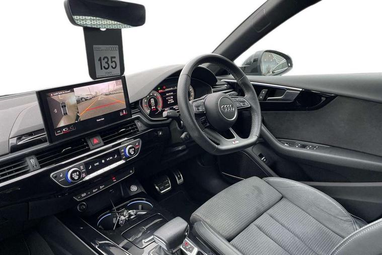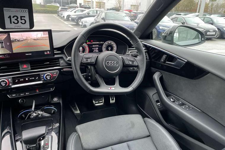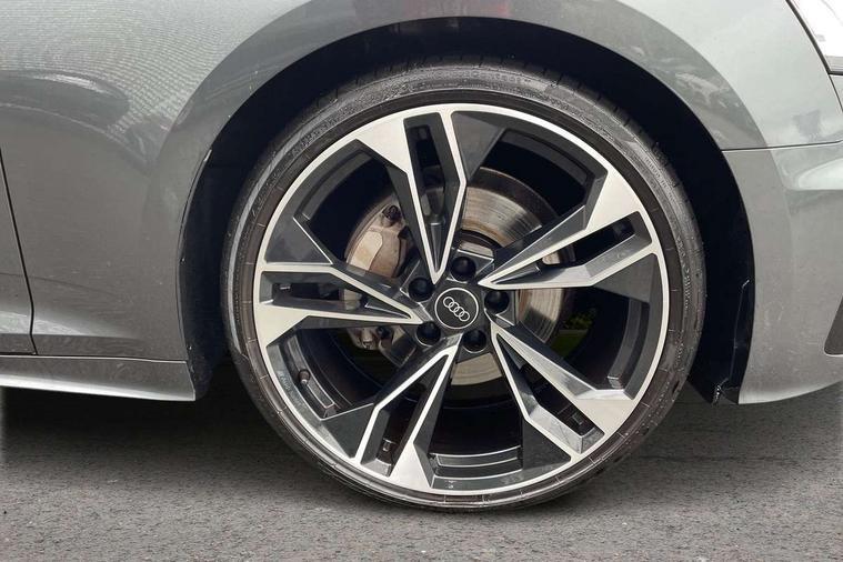 Audi connect safety and service (e-call), Audi connect with Amazon Alexa Integration, Audi drive select (Auto, Comfort, Dynamic, Efficiency and Individual), Audi parking system plus with front and rear sensors, Audi smartphone interface, Audi virtual cockpit - 12.3" full colour digital instrument cluster, vehicle/engine speed, Radio/media information+Driver assistance systems, Automatic start-stop system with coasting functionality and efficiency programme, Bluetooth interface, Electro-mechanical power steering, Email, calendar and text messages displayed via MMI, MMI nav+ with MMI touch - 10.1" high resolution MMI display, touch sensitive, 3D map, route/country info, dynamic route guide, personal route assist, Power operated tailgate, Rear view camera, Service interval indicator, Voice control system, Sports suspension lowered by 23mm, 8 passive loudspeakers, CD player, DAB digital radio reception, Two additional USB ports for rear passenger in rear centre console, Two SDXC card slots, Audi matrix LED headlights with LED rear lights + dynamic front and rear indicators, Auto dimming rear view mirror, Black audi rings decal above rear sills, Black door mirror housings, Body colour door handles, Body colour front spoiler lip, Body colour side sill trim, Electric adjustable heated door mirrors, Electric folding door mirrors, Electric front windows, Front fog lights, Honeycomb structure radiator grille in grained matt black, LED daytime running lights, LED third brake light, Matt aluminium silver tailpipe trim, Privacy glass, Rain and light sensors, Rear diffuser in matt titanium black with trim strip in matt aluminium silver, Rear side wing doors, S model rear spoiler in black, Side air inlets in grained matt black with matt aluminium silver inlay, Sport front and rear bumpers with side skirts, Variable front intermittent wipers, Windscreen with acoustic glazing, 3 Spoke flat bottom high multi-function leather steering wheel with shift paddles, 4 way electric lumbar support for driver and front passenger, 40/20/40 split folding 3 seater rear bench seat, Adjustable steering column, Black cloth headlining, Black perforated leather gearknob, Contrast stitching on seats, steering wheel and gear lever gaiter, Deluxe 3 zone electronic climate control, Front centre armrest, Front head restraints, Front/rear floor mats, Heated front seats, Illuminated door sill trim with S logo, ISOFIX child seat mounting and top tether, Luggage compartment mat, Manual seat adjustment, Rear headrests, Single front passenger seat, Stainless steel pedals, Sunvisors with vanity mirrors, Black styling pack - A5 Coupe/Sportback, LED interior light pack - A5/RS5, 3x3 point rear seatbelts, 6 airbags - Driver, front passenger, curtain and side airbags, Electromechanical parking brake, Electronic Stabilisation Control (ESC) including ABS, ASR and EDL, Front passenger airbag deactivation, Height adjustable front seatbelts, Hill hold assist, Multi collision brake assist, Pop-up bonnet for pedestrian protection, Pre sense city, Seatbelt monitoring, Tyre pressure warning, Variable restraint system, Warning triangle and first aid kit, Anti theft alarm system, Anti theft wheel bolts, Immobiliser, Keyless Go, Remote central locking, Piano black finish inlay, 20" 5 twin spoke polygon design alloy wheels in gloss anthracite black and gloss turned finish, Tool kit, Tyre repair kit,