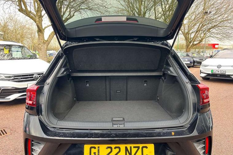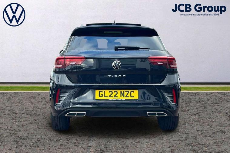 10.25" Digital cockpit pro, Bluetooth mobile phone interface, Driver alert system with fatigue detection, Driver tips and journey analysis, Emergency call service, Lane keeping system Lane Assist, Modified key software - reduce switch off time for key status change to Long no motion, Online services, Park assist including front and rear parking sensors, Service interval indicator, Tailgate/trunk lid release from outside, Think blue trainer driver tips and journey analysis, Warning sound and light for front seatbelts unfastened, Wireless app connect, Battery regeneration during braking, Start/stop function with battery regeneration, Diversity antenna for FM reception, Front and rear 6 speakers, Music playback - MP3, WMA and AAC files, Premium USB cable in choice of either Apple or Android smartphone compatibility, SD card slot, Simultaneous pairing of 2 compatible mobile devices, Title and cover art display, We Connect and We Connect Plus functionality, 3rd brake light, Auto dimming interior rear view mirror, Automatic hazard lights activation under emergency braking, Automatic headlight control with LED separate daytime running lights with coming/leaving home function, Extended roof spoiler, Exterior mirrors aspherical on driver side, convex on front passenger side, External USB type C socket and charging sockets, Front windscreen wiper with intermittent wipe and 4 position delay, Heated rear window, LED Plus headlamps, LED rear combination lamps, LED rear number plate lights, LED tail lamp rear comination lamps, Power windows with comfort operation and circuit breaker, R-Line design body coloured bumpers, Rain sensor, Rear exhaust tailpipe, Rear fog light on one side and reversing lights on both sides, Rear side wing doors, Rear wash/wipe with intermittent wipe setting, Remote electrically foldable door mirrors, puddle lights and reverse activated passenger's door mirror, 12V power socket in centre console, 3 rear head restraints, 3 seat bench in 2nd row, 4 load lashing points in luggage compartment, Air care climatronic air conditoning system with active combination filter and 2-zone temperature control, Black roof lining, Chrome plated radiator grille inserts, air vent surrounds and light switch surrounds, Door and side trim panel with leatherette insert, Drawer under drivers seat, Front + rear carpet mats, Front centre armrest, Front cupholders x 2, Front footwell illumination, Front reading light, Front scuff plates with R logo, Instrument lighting, white adjustable panel illumination, Interior ambient lighting and surround lighting, Interior light delay, Isofix child seat preparation, Leather gearshift handle, Load-through provision with cup holder when folded down ('Unsplit rear seat bench, split folding backrest, with centre armrest), Luggage compartment lighting, Single front passenger seat, Stainless steel pedals, Storage compartment in left and right luggage area, Storage compartment in rear doors, Storage compartments in driver and front passenger doors, Sunvisors with illuminated vanity mirrors, Variable boot floor, height adjustable and removable, Driver assistance pack without proactive passenger protection - T-Roc, 3 point height adj front seatbelts + pretensioners, 3 point seatbelts in outer rear with ECE label, ABS, Child locks on rear doors, Driver and front passenger airbag with front passenger airbag deactivation, Driver and front passenger safety-optimised head restraints, Drivers seatbelt reminder, Electronic parking brake, Electronic Stability Control (ESC) inc EDL (Electronic Differential Lock) and ASR (Traction Control), Front and rear passengers curtain airbag system including front side airbags, Front assist with city emergency braking and pedestrian monitoring, Front seat side impact airbags, Hill start assist, Predictive pedestrian protection, Rear disc brakes, Single tone horn, Tyre pressure loss indicator, Volkswagen roadside assistance, Alarm with interior protection, Anti-theft alarm system with interior monitoring, backup horn, and towing protection, Remote central locking with SAFELOCK, radio remote control with 2 remote control folding keys, Trims for alloy wheels,