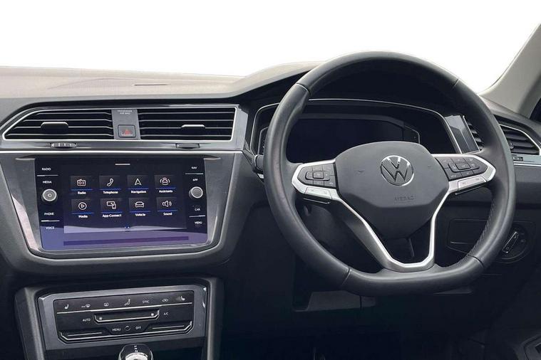 Adaptive cruise control ACC stop and go including speed limiter, App-Connect incl. App-Connect Wireless for Apple CarPlay and Android Auto, Bluetooth phone integration system, Distance control assist, Driver alert system, Driver profile selection, Dynamic road sign display, eCall emergency call system, Electromechanical speed sensitive power steering, Engine start/stop button, Lane keeping system Lane Assist, Lights on warning, Motorised electric tailgate operated via key fob, drivers door and foot movement under tailgate, Multifunction front facing camera, Outside temperature display, Premium multifunction display with multi colour display, Remote control boot opening, Rev counter, Revision / skills operating concept travel assistant, Service interval indicator, Speed limit display, Start/stop system with regenerative braking, Tailgate/trunk lid unlocking from outside, Trip computer, Warning sound and light for doors and tailgate open, All wheel drive - 4Motion, Battery regeneration during braking, Diesel particulate filter, Misfuel prevention device for diesel engine, Selective Catalytic Reduction, XDS electronic differential lock for improved traction and handling, 4 X 20 watt output, 8 Speakers, Diversity antenna for FM reception, Radio, SD card slot, Simultaneous pairing of 2 compatible mobile devices, SMS functionality - read, compose and send SMS messages using touch-screen display, Title and cover art display, USB C ports, Aluminium door sill protectors, Auto dimming interior rear view mirror, Automatic headlight control system, Body colour door handles, Body coloured bumpers, Body coloured door mirrors with integrated indicators, Coming/leaving home lighting function, Dynamic headlight range control, Front and rear electric windows, Heated rear window, High level 3rd brake light, IQ light-Adv high beam, Dynamic light assist for LED matrix headlamp+LED separate DRL+DCL, dark red rear LED tech, Poor weather light+ cornering light, Laminated safety glass windshield, heat and sound insulating, LED rear number plate lights, Poor weather light and cornering light, Privacy glass for rear side windows and rear window, Rain sensor windscreen wipers, Rear exhaust tailpipe, Rear fog lamp, Rear side wing doors, Rear windscreen washer and wiper with interval delay, Side and rear windows in heat insulating glass, Tilting and sliding panoramic sunroof with rear panoramic sunroof, Trailer Stability Programme, Windscreen wipers/ intermittent wipe + 4 position delay, 12V outlet in center console rear and in luggage compartment, 12V outlet in front and tray, 2 cup holders in front, 2 LED front reading lights, 2 LED rear reading lights, 3 bench rear seats in 2nd row, 3 rear headrests, 4 load lashing points, 40:20:40 split folding rear seats, Air Care Climatronic 3 zone automatic climate control with enhanced air filter and controls in the rear, Backrest release for left front seat, Climate control unit rear with touch function, Door and side trim panel in foam film and woven fabric, Front centre armrest, Front footwell illumination, Front seats head restraints (x-adjustment), Height adjustable front seats, Height/reach adjust steering wheel, Instrument lighting white adjustable panel illumination, Interior light with delay, Isofix Preparation 2 Rear child seats, Leather gear knob, Lockable cooled glovebox, Luggage compartment lighting, Luggage net, Rear bench seat asymetrically split folding, longitudinally movable and folding with load-through hatch and center armrest, Remote unlocking for rear seat backrest, Removable luggage cover, Removable rear headrests, Safety optimised front head restraints, Single front passenger seat, Sliding/reclining rear seats, Standard rear seat release, Storage compartment in driver's door, Storage compartment in passenger's door, Storage compartment in rear doors, Storage compartments in luggage area left and right, Storage tray on dashboard, Sun visors with illuminated vanity mirrors, Top front comfort seats, Variable boot floor, height adjustable and removable, Easy open and close pack with safelock - Tiguan, 3 point seat belt for centre rear seats, 3 point seat belts with seat belt pretensioners for the outer rear seats, Active bonnet, Curtain airbags for front and rear passengers, Driver/Front Passenger airbags, Drivers knee airbag, Electronic parking brake with auto hold, Electronic Stability Control with driver steering recommendation, ABS, ASR, EDL, EDTC and trailer stabilization, Front assist with autonomous emergency braking (for Adaptive Cruise Control ACC up to 130 mph), Front disc brakes, Front passenger airbag deactivation, Front side airbags, Height adjustable front 3 point seatbelts + pretensioners, Hill hold control, Manual child proof rear door locks, Pedestrian monitoring system, Power assisted brakes, Proactive passenger protection system in combination with front assist, Rear disc brakes, Rigid safety cell with front and rear crumple zones, Two tone horn, Warning sound and light for front seat belts if unfastened, Anti theft alarm system with interior monitoring, backup horn and towing protection, Anti theft wheel bolts, Central locking system with safelock radio remote control and 2 remote control folding keys, Electronic engine immobiliser, Tool kit,