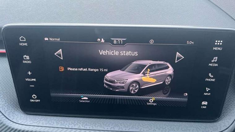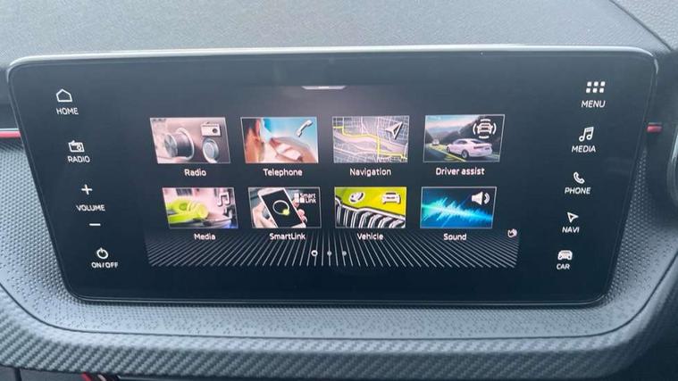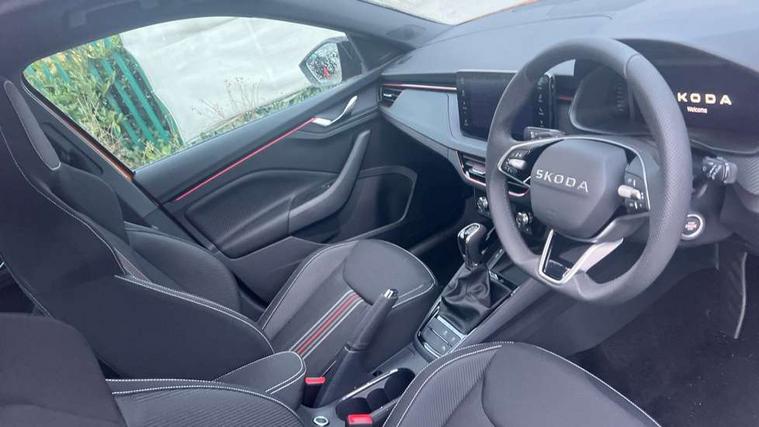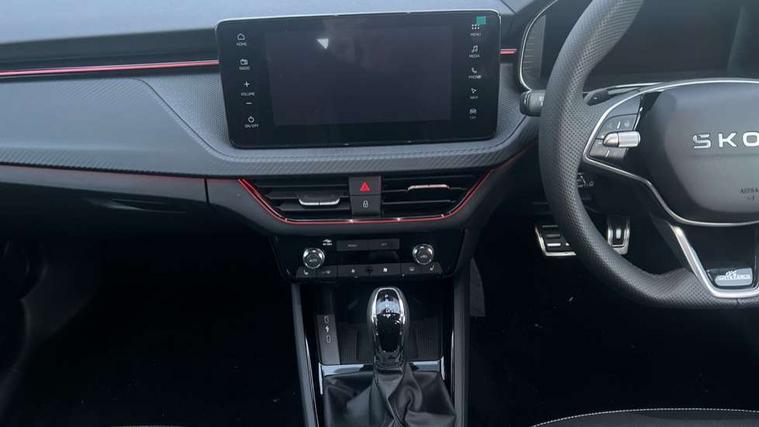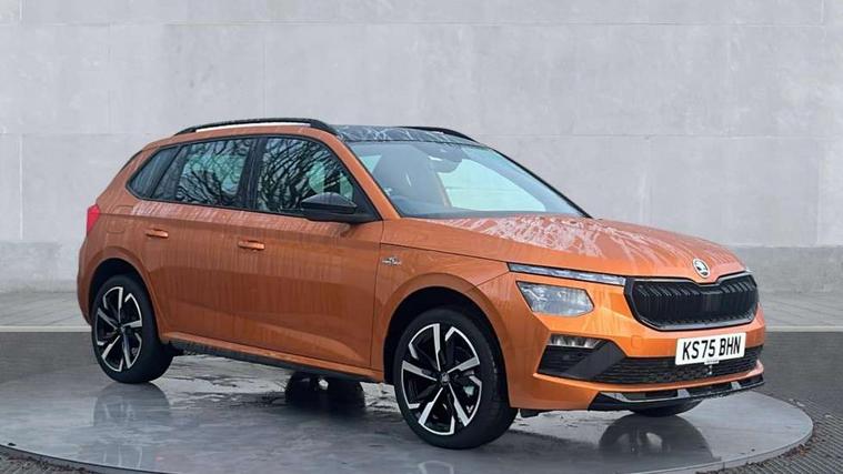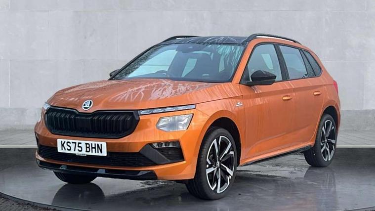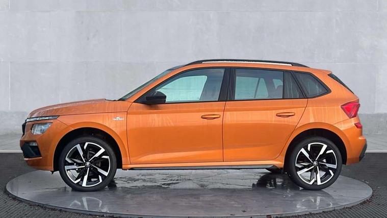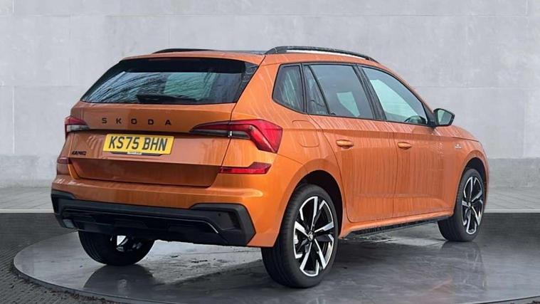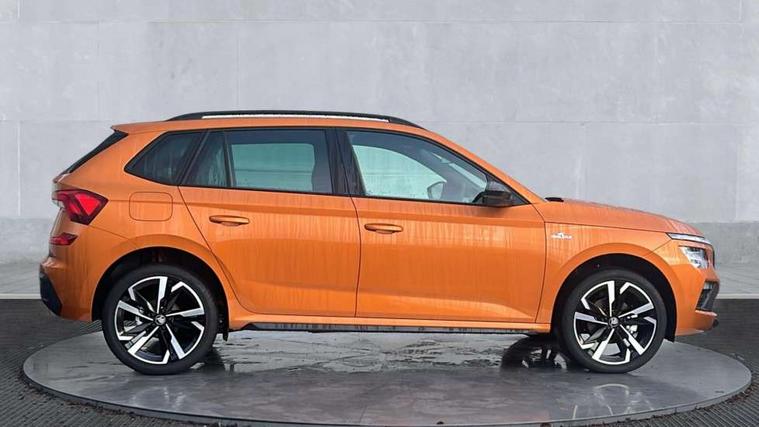 Advanced driver attention and drowsiness monitor, Bluetooth system, E-call, Front assist system, PAS, Rear parking sensors, Rear view camera, Service indicator, Speed limiter, Traffic sign recognition, Virtual cockpit with 10.25" display, Voice control system, Wireless smartlink, 4 USB C ports, 8 Speakers, 9.2" Skoda navigation display, DAB Digital radio, Auto dimming rear view mirror, Automatic headlight control with coming home and leaving home feature, Black door mirrors, Black radiator grille, Black rear diffuser, Black roof spoiler, Body colour bumpers, Body colour door handles, Boot lettering in black, Extended tailgate glass, Fixed panoramic sunroof with black roof rails, Front and rear electric windows, Heated rear window, LED daytime running lights, LED high beam, LED low beam, LED third brake light, Light sensors, Monte carlo plaque, Privacy glass, Rear side wing doors, Rear wiper, Ticket holder inside windscreen, 12V socket in luggage compartment, 3 seat bench in 2nd row, Aluminium pedals, Ambient lighting in white/red, Art leather carbon decor inserts, Art leather carbon door inserts, Black roof lining, Cargo elements, Chrome inner door handles, Driver and passenger sun visors with vanity mirror, Dual zone climate control, Front and rear roof lights, Front centre armrest, Front head restraints, Glove compartment with illumination, Height adjustable driver seat, Height adjustable front passenger seat, Ice scraper, Inner circulation control with pollen filter, ISOFIX on front passenger seat, Isofix preparation for back seats, Leather gearknob and handbrake lever, Manual lumbar support for front seats, Monte Carlo cloth upholstery, Net package and top tether hooks in boot space, Net under rear shelf, Pocket on the back of both front seats include mobile phone pockets, Rake/reach adjustable steering wheel, Reading lights, Rear centre armrests, Red hotstamping, Single front passenger seat, Sports seats, Textile floor mats, Third rear headrest, Top tether for front passenger seat, Umbrella in driver's door, Light and view plus package - Kamiq, 3x3 point rear seatbelts, Airbags - driver and front passenger, Disc brakes, ESP, Extended and predictive pedestrian/cyclist protection, Front passenger airbag deactivation switch, Front side airbags with curtain airbags, Hill hold control, Manual leather parking brake, Manual rear child locks, One tone horn, Seatbelt reminder for driver an co-driver, Traction control, Tyre pressure monitor, Anti-theft alarm system with interior monitoring, backup horn, towing protection and remote central locking with SAFE system, Anti-theft wheel bolts, Electronic engine immobilizer, 18" Ursa black diamond cut alloy wheels,