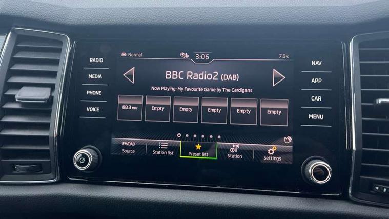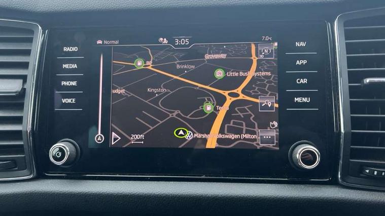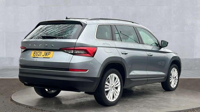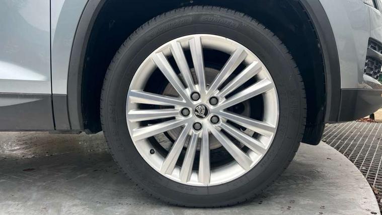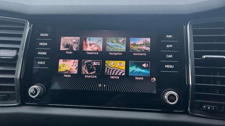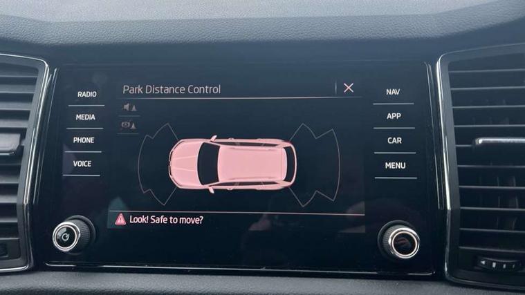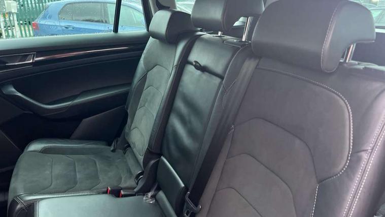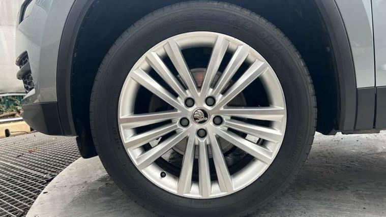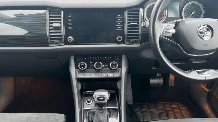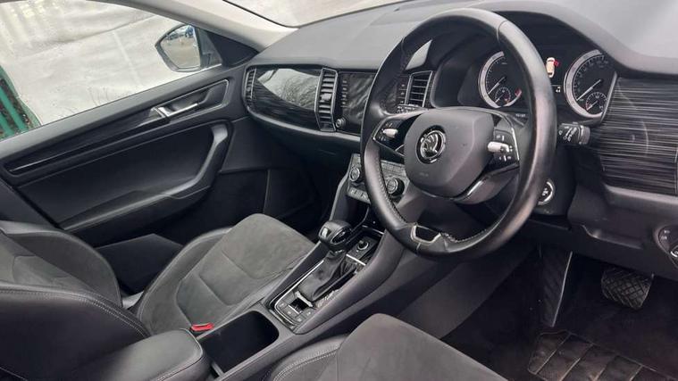 Chrome pack - Kodiaq, Alarm with interior monitoring and tilt sensor with safe function, Immobiliser, Keyless entry and start system (KESSY), Remote central locking, DAB Digital radio, Auto door release and activation of warning lights, Driver and passenger airbags, Electronic parking brake with hill hold control, Emergency rear braking signal, ESC (incl. ABS+MSR+ASR+EDS+HBA+DSR+RBS+MKB), Front and rear three point safety belt on all seats, Front assist includes AEB city/urban, Front passenger airbag deactivation switch, Front side airbags, Fuel cut off safety device, Head and knee airbags, Rear disc brakes, Safety vest holder in door, Seat belt reminder for all seats, Tailgate unlocking from outside, Two tone horn, Tyre pressure monitor, Warning lights in front doors, Aero front windscreen wipers with intermittent function, Aero rear window wiper, Auto dimming rear view mirror, Automatic activation of hazard warning lights, Black electric window control buttons, Black wheel arch surrounds, Body colour bumpers, Body colour door mirrors and handles, Electric adjustable heated door mirrors with integrated indicators, Electric front and rear windows, Electrically folding and auto dimming door mirrors, Front and Rear door steps, Full LED Headlights with adaptive front light system and LED daytime running lights, Headlight washers, Heated rear window, Invisible tailpipe, LED front fog lights with static cornering light function, LED rear fog light, LED third brake light in rear spoiler, Light assistant (coming home/tunnel light), Radiator grille frame in black with chrome strip, Rain and light sensors, Rear spoiler, Safety reflectors on front and rear doors, Sunset privacy glass, 12V socket in boot, 2 rails with 2 hooks including 4 hooks for net programme, 4 foldable roof handles with rear coat hooks, 4 lashing points on luggage floor, 60:40 foldable rear seat with sliding adjustment and backrest angle adjustment, Bottle holders in door panel in the 1.5 litre front and 1 litre rear, Cargo storage compartments, Centre console with open storage box, cup holder and 12V socket, Chrome headlight control button, Chrome interior door handles, Coat hooks on B pillar, Covered storage compartment on driver side, Front and rear door armrest with black adductor trim, Front and rear height adjustable headrests, Front centre armrest with storage compartment, cup holder and 12V socket, Front courtesy lights, Gear shift lever with chrome frame and black gloss insert, Illuminated and cooled glovebox, Illuminated luggage compartment, Isofix child seat fittings in outer rear seats with top tether, Manually adjustable steering column, Net programme in boot (1x horizontal Net, 2x vertical Nets), Overhead glasses storage compartment, Pollen filter, Rear centre armrest with cupholders, Roll up luggage compartment cover with intermediate position, Small Bags on the inner sides of the front backrests, Storage compartment in lower middle instrument panel with closing, Three rear height adjustable headrests, Ticket holder on A Pillar, Umbrella in door panel, Bluetooth system, Digital voice enhancement, ECO Stop/start function, Exterior temperature indicator, Map care, Smartlink wireless for apple carplay and wired for android auto, Speed limiter, USB C Port x 2 in front centre console,