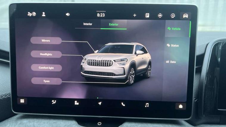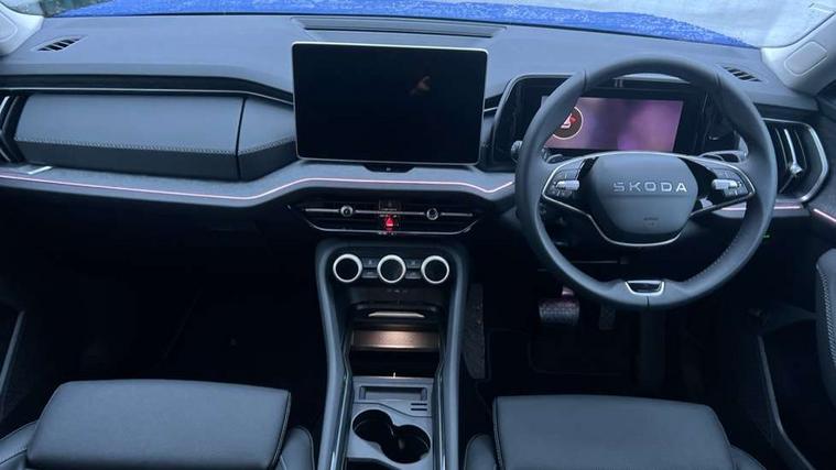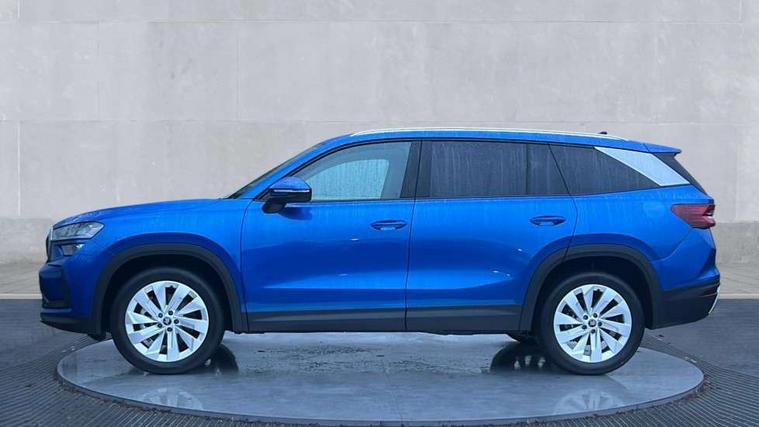 13" satellite navigation touchscreen display, Blind spot detection with door exit warning, Bluetooth system, ChatGPT functionality, Driver alert - Fatigue and drowsiness monitor, Dry display cleaner, Emergency call, Front and rear parking sensors, Front cross traffic assist, Lane assist, PAS, Rear traffic assist, Tailgate unlocking from outside, Traffic sign recognition, USB C Port x 2 in front centre console, Virtual Cockpit - 10.25" digital display, Voice control system, Wireless charging for two smartphones (15W) with cooling function, Wireless SmartLink for Apple CarPlay and Android Auto, Stop/start function, 2x USB-C in the rear, DAB Digital radio, Aero front windscreen wipers with intermittent function, Auto dimming rear view mirror, AWL (all weather lighting) and all weather light with cornering function, Black wheel arch surrounds, Body colour bumpers, Body colour door mirrors and handles, Cornering light and poor weather light, Electric folding /adjustable/separted heated/folding door mirrors, auto dimming with boarding sports and memory function, Electric front and rear windows, Exterior black decorative trims, Front grille with horizontal light strip, Heat insulating glass in windshield, Heated rear window, Ice scraper in fuel tank cap, Invisible tailpipe, LED daytime running lights, LED matrix headlights with AFS and LED fog lights, LED rear light with welcome effect and dynamic turn signals, LED third brake light in rear spoiler, Light assistant with automatic headlight control and coming home feature, Logo projection in door mirrors, Multiple matrix beam, Privacy glass, Rear roof spoiler, Rear side wing doors, Rear window wiper, Red decorative strip between rear LED lights, Safety reflectors on front and rear doors, Unique dark chrome design logo on alloy wheels, Window control switches with black trim, Windscreen wipers with rain sensor, Without engine designation, 1.5l bottle holder points in all door, 1x centre rear reading light, 2 seat bench in 3rd row, 2 spoke multi-function leather heated steering wheel with paddle shift, 3 configurable smart dials with 32mm coloured display, 3 seat bench in 2nd row, 4 foldable roof handles with rear coat hooks, Ambient interior lighting - Dashboard, front-door stowage compartments, front and rear door panels and footwell lighting, Automatic gear selector on steering column, Chrome interior door handles, Driver/front passenger reading lights, Fabric headlining, Fixed bench 40:60:40 split folding backrests, Front and rear floor mats, Front centre armrest with jumbo box storage compartment, cup holder and 12V socket, Height adjustable front headrests, Isofix child seat fittings in outer middle row rear seats and front passenger with top tether, Manually adjustable steering column, Pollen filter, Rear centre armrest with cupholders, Rear seat boot backrest release, Single front passenger seat, Skoda lettering on steering wheel, Storage pocket including mobile phone pockets on the backs of the front seats, Sunvisors with illuminated vanity mirrors, Three rear height adjustable headrests, Ticket holder on A Pillar, Tri zone climate control, Umbrella in door panel x1 made from sustainable materials, Upper and lower glovebox with card holder and coin compartment, USB C port by rear view mirror for charging only (15W), Exterior styling pack - Kodiaq, Auto door release and activation of warning lights in the event of an accident, Driver and front passenger airbag with knee airbag and front passenger airbag deactivation, Electric child locks, Electronic parking brake, ESC (incl. ABS+EMD+MSR+ASR+EDL+HBA+DSR+RBS+ESBS+MCB+TSA+XDS), Front assist with braking reaction to vehicles, pedestrians and cyclists, Front disc brakes, Fuel cut off safety device, Height adjustable front 3 point seatbelts + pretensioners, Hill hold assist, Junction assist with automatic emergency braking, Rear disc brakes, Safety vest holder in door, Seat belt reminder for all seats, Three point rear seat belts, Two tone horn, Tyre pressure monitor, Anti-theft wheel bolts, Immobiliser, Remote central locking with 2 keys,