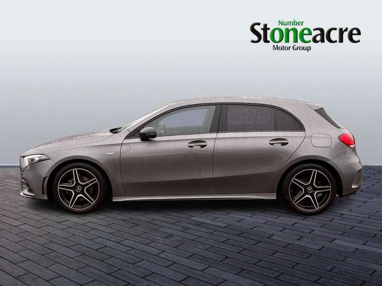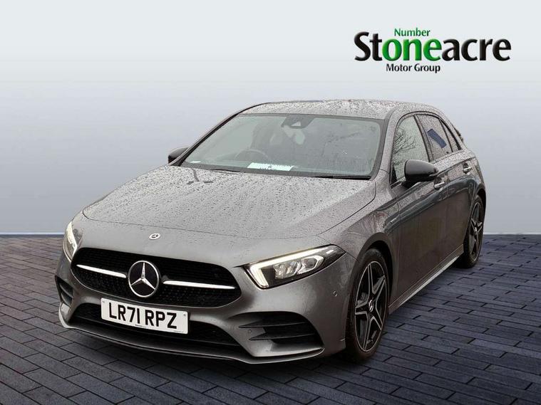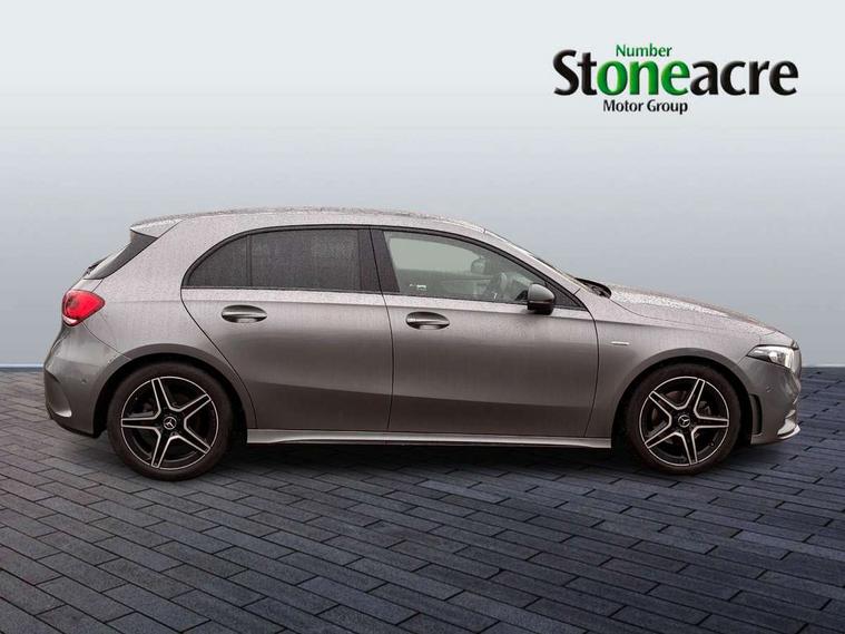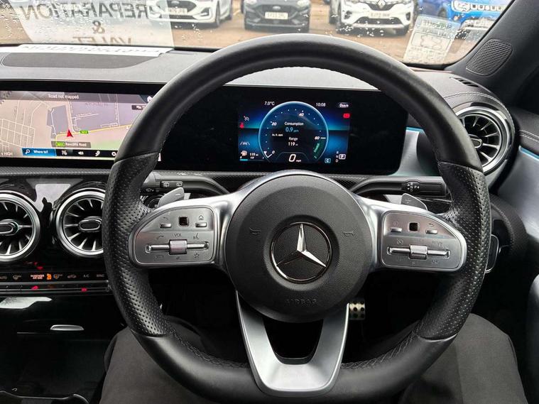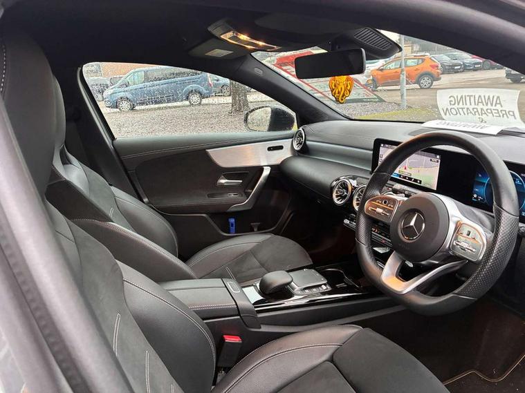 10.25" media display, 180 degree rear view camera with parking guidelines, 7" colour screen in instrument panel, Active parking assist with visual and audible warning of detected obstacles, Attention assist, Brake pad wear indicator warning light, Car wash mode, Cruise control + speed limiter, Direct steering, Dual bluetooth interfaces, DYNAMIC SELECT with a choice of driving modes (ECO, Comfort, Sport and Individual), ECO start/stop function, Fluid level warning indicator for fuel, oil, coolant and washer fluid, Hard-disk navigation, Hey Mercedes Voice activation, Lamp failure indicator, Lane keeping system, Mercedes me connect including emergency call system, accident recovery, breakdown management and maintenance, Mercedes me remote services, Outside temperature gauge, Owners manual in English, Pre-installation for car sharing, Preinstallation for Mercedes Benz link, Service indicator (ASSYST), Smartphone integration with Apple CarPlay and Android auto, Speed sensitive power steering, Trip computer, Ultrasonic sensors positioned in the front and rear bumpers, Lowered comfort suspension, Rear axle torsion beam, 2 USB ports (type C) in rear stowage compartment and one in front of center console, 6 speakers, DAB Digital radio, MBUX multimedia system with DAB digital radio and touchpad including satellite navigation, Mercedes-Benz sound system - 100W, 4 Electric Front and Rear windows, Adaptive brake lights, AMG bodystyling - Front apron with splitter in chrome, rear apron with chrome trim and chrome visible trim elements in tailpipe, Black weather strip, Body colour bumpers, Body colour door handles, Body colour side skirt, Body coloured door mirrors, Electric adjustable and heated door mirrors with integrated LED side indicators, Exclusive diamond radiator grille, Exhaust system - Twin visible tailpipes in polished stainless steel, Headlamp assist automatic headlamp activation, Heated glass rear windscreen + timer control, High gloss black beltline, LED High level third brake light, LED high performance headlamps with integrated LED daytime running lights, LED tail lamp, Privacy glass, Radio aerial, Rain sensing windscreen wipers with two sensitivity settings, Rear fog lights, Rear wiper, Window line trim strip in high gloss black, 3 Spoke flat bottom leather multi function steering wheel with perforated leather in grip area, 40:20:40 split folding rear seats, Artico man-made leather/Microfibre Dinamica upholstery with contrast stitching in light grey, Auto Mercedes-Benz child seat recognition sensor, Black air vents with surround in silver chrome, Black roof lining, Brushed stainless steel sports pedals with rubber studs, Controller on centre console with chrome surround, Floor mats with black top stitching and embroidered edition logo and piping in light grey, Front centre armrest with storage compartment, Front door sills with Mercedes Benz lettering, Front seat backs luggage nets, Front seat cushion length adjustment, Galvanished gear shift paddles on steering wheel, Heated front seats, Height/reach adjustable steering column, Interior lighting - 64 colour Ambient lighting, Interior mirror with reading lamps in black and frameless, ISOFIX and top tether child seat fixing points in two outer rear seats, Manual height adjustable front seats, Rear head restraints, Seat occupancy sensor for front passenger seat, Sports seats with integrated headrests, Stowage compartment in centre console with retractable cover, Sunvisors with illuminated vanity mirrors, Touchpad on center console, Twin front cupholders, Two zone thermotronic luxury automatic climate control, Light and sight pack - A Class, Mirror package - A Class, Night pack - A Class Saloon/Hatchback, Seat comfort pack - A Class, 3 rear 3 point seatbelts, ABS with Brake Assist, Active bonnet, Active brake assist includes forward collision warning system with autonomous braking, Adaptive brake assist with hold function and hill start assist, Black seatbelts, Childproof locks manually operated for rear doors and electrically operated for rear power windows, Crash responsive emergency lighting, Driver and passenger head and side airbags, Drivers knee airbag, Dual stage driver/passenger airbags, Electronic parking brake, ESP curve dynamic assist, ESP with ASR, Front and rear seatbelt reminder, Front brake callipers with Mercedes Benz lettering, Tyre pressure monitoring system, Warning triangle and first aid kit, Window airbags, Alarm system/interior protection/immobiliser, Keyless Go, Remote central locking and crash sensor with emergency opening function, Urban guard vehicle protection system with immobiliser and interior protection, Matrix look light longitudinal grain aluminium trim element, 18" AMG 5 twin spoke light alloy wheels aerodynamically optimised painted in black with highsheen finish, Summer tyres, Tirefit sealant kit,
