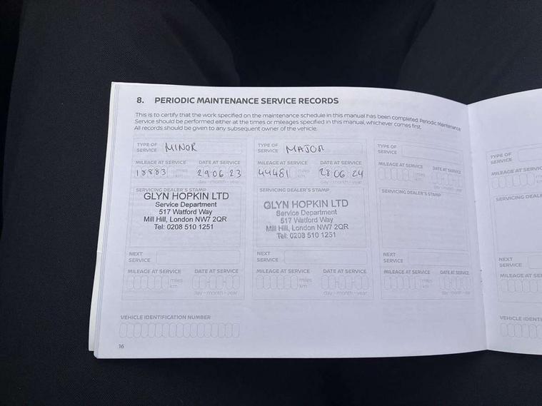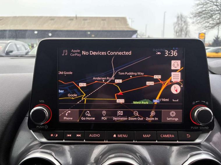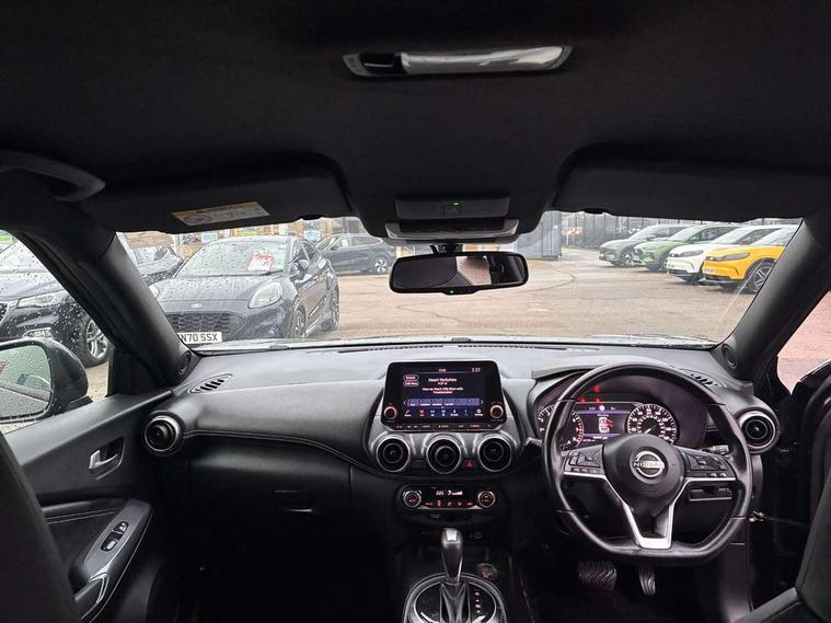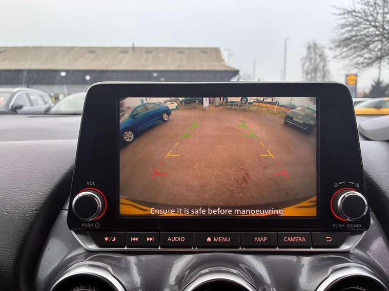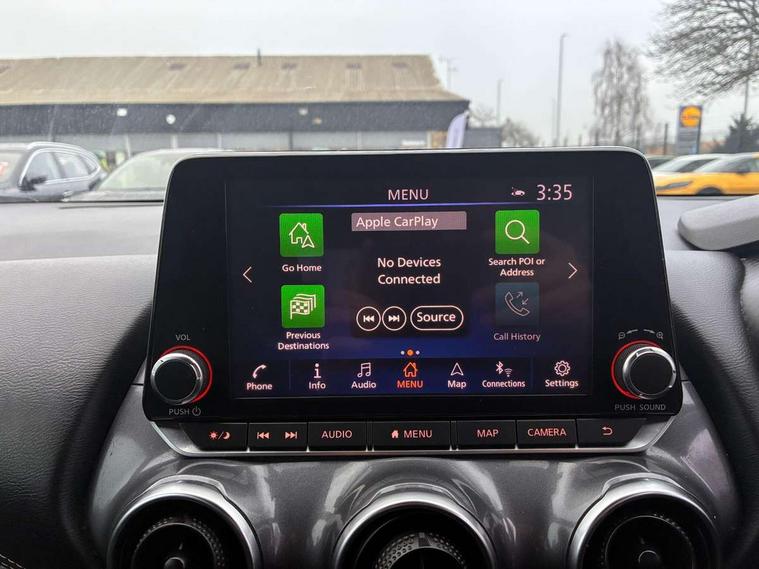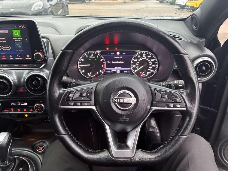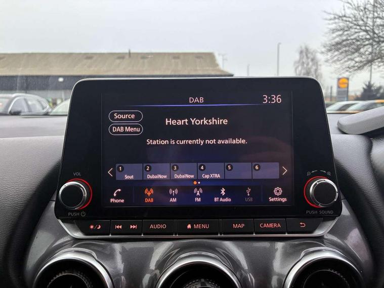 7" full colour TFT screen combimeter, Apple CarPlay and Google Android auto, Drive modes select (Eco, normal and sport), Emergency and breakdown call, Front parking sensor, Idle start/stop system, Intelligent lane intervention, Lane departure warning system, Nissan connect 8" touch screen entertainment system, Nissan connect nav with TomTom traffic, Nissan connect services and Wifi connection, Outside temperature sensor, Power Steering, Rear parking sensor, Traffic sign recognition, Trip computer, Voice recognition, Gasoline particulate filter, 6 speakers, Bluetooth system, USB, Aux-in and 12V socket, DAB Digital radio, Rear console USB port, Auto dimming interior rear view mirror, Auto headlights, Automatic hazard signal with emergency stop signal, Body colour bumpers, Body colour door handles, Electrically adjustable door mirrors with integrated indicators, Follow me home headlights, Front and rear electric window with one touch driver window, Heated and auto folding door mirrors, High beam assist, LED daytime running lights, LED headlamps, LED rear fog lamp, LED rear lamps, Rain sensor windscreen wipers, Rear privacy glass, Rear side wing doors, Rear wiper, Three blink turn signal, 3 height adjustable rear headrests, 3 seat bench in 2nd row, 60/40 split folding rear seat, Automatic climate control, Card holder on driver sunvisor, Cloth upholstery with black and metallic grey syntech leather inserts, Driver and passenger sliding and reclining seats, Driver side rear coat hanger, Driver/passenger sunvisors and vanity mirrors, Front and rear cabin lights, Front armrest, Front door pockets with bottle holders, Front head restraints, Front/rear passenger grab handles, Grey synthetic leather kneepad, Height adjustable driver's seat, Internal chrome door handles, Leather gearshift knob, Leather steering wheel, Luggage board, Luggage space lighting, Monoform sporty seats, Multifunction steering wheel, Rear door bottle holders, Single front passenger seat, Steering wheel mounted gearshift paddles, Telescopic steering wheel adjustment, Two cupholders in front centre console, Two rear isofix child seat anchorage points with top tether, Welcome light and console tray ambient lighting, ABS with EBD and brake assist, Active ride control, Active Trace Control, Driver and passenger airbags, Driver and passenger side airbags, Electric handbrake with auto hold function, Electronic Stability Programme (ESP), Front and rear curtain airbags, Height adjustable seatbelts, Hill start assist, Intelligent emergency braking with pedestrian and cyclist recognition, Rear door child safety locks, Seatbelt reminder for driver/front passenger and rear seats, Single tone horn, Three 3 point rear seatbelts, Traction control, Tyre pressure monitoring system, VDC Dynamic Vehicle Control, Ventilated rear brake discs, Alarm, Immobiliser, Intelligent key and start push button with walk away lock and approach unlock functions, Remote central locking,