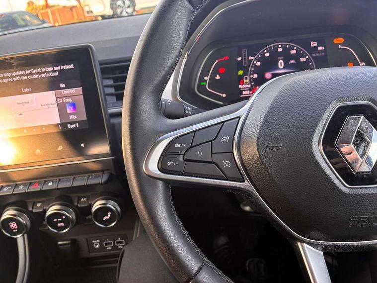 7" TFT Driver information display, Cruise control + speed limiter, EasyLink 7" touchscreen with navigation, google search and traffic information, Eco mode, Front and rear parking sensors with rear view camera, Gear change indicator, Lane departure warning system, Lane keep assist, Multisense with 3 driving modes + 8 ambient lighting colours, Renault automatic emergency assist, Smartphone integration compatible with Apple CarPlay and Android Auto, Traffic sign recognition with over speed prevention, Trip computer, Variable assistance power steering, Wireless phone charger, DAB Radio with Bluetooth and USB, 2 reverse gear LED lamps and 1 rear LED fog lamp in the bumper, Auto dimming rear view mirror, Automatic front wipers with rain sensors, Automatic headlights, Automatic high/low beam, Black side door protection with chrome effect, Body colour door handles, Body coloured bumpers, Body coloured door mirrors, C Shaped LED front and rear lighting signatures with 3D effect on the rear lights, Chrome around front air deflectors, on front wing deco element and window lining, Day time running light, Drivers one touch window with anti-pinch feature, Extra tinted glass in rear windows and tailgate, Front and rear electric windows, Front grille with chrome upper trim, Full LED headlights, Grey front and rear skid plate, LED front fog lights, LED high level brake lights, LED turn indicators on door mirrors, Longitudinal roof bars, Rear side wing doors, Rear wiper, Shark fin antenna, 12V Accessory socket, 3 rear headrests, 60/40 split and fixed base rear seat bench, Automatic climate control with one touch demist function and air quality regulator, Centre console storage tray, Front head restraints, Glovebox, Heating system with pollen filter, Height adjustable driver's seat, Height adjustable passenger seat, Height/reach adjust steering wheel, ISOFIX child seat fixing points on rear outermost seats, LED front roof lights, Middle console with armrest and storage, Modular boot floor, Rear air vents, Single front passenger seat, Sliding rear bench, Synthetic leather steering wheel, Synthetic leather/cloth upholstery, 3 rear seatbelts, ABS+EBA, Distance warning alert, Driver and front passenger, side, head and curtain airbags, Driver height adjustable seat belt, Electric parking brake with auto hold function, Electronic stability control, Front and rear no seatbelt warning sound, Front dash warning indicator in case of heavy braking, Front driver and passenger side airbag deactivation, Hill start assist, Rear door and window child locking function for rear door, Tyre pressure warning light, Anti drill door locks and locking fuel cap, Central door locking, Deadlocking system, Hands free keycard with push button and start/stop function, RAID (Renault Anti-Intruder Device) automatic door locking, Black soft touch dashboard, 18" Pasadena diamond cut alloy wheels with grey inserts,