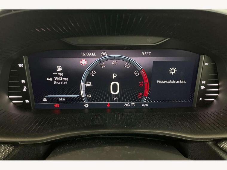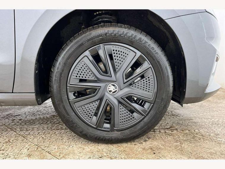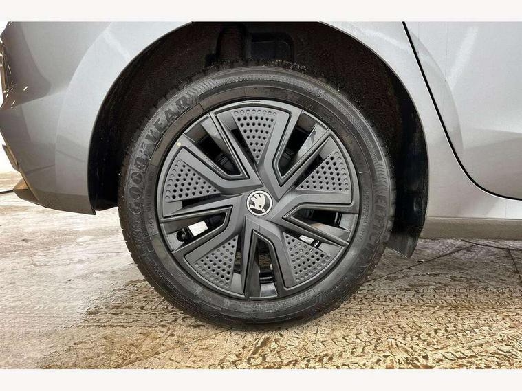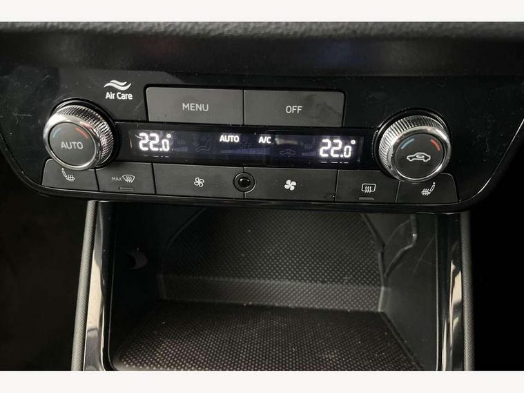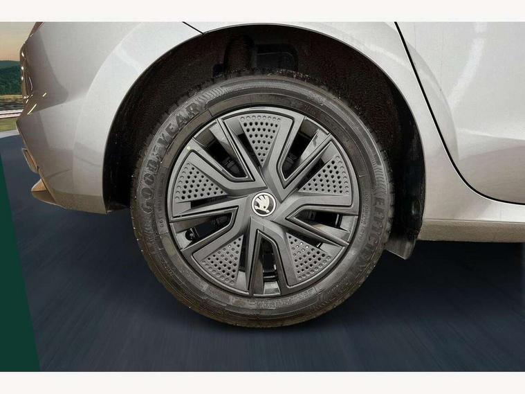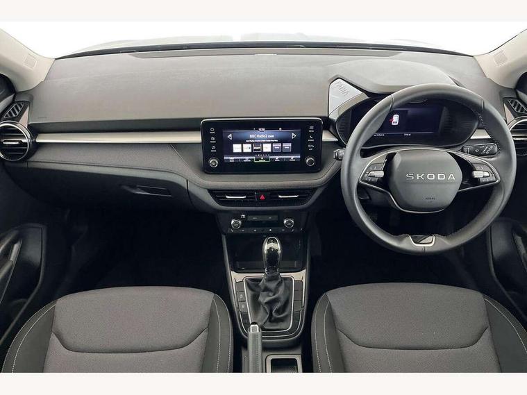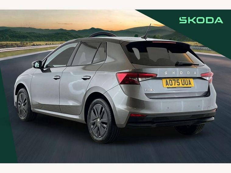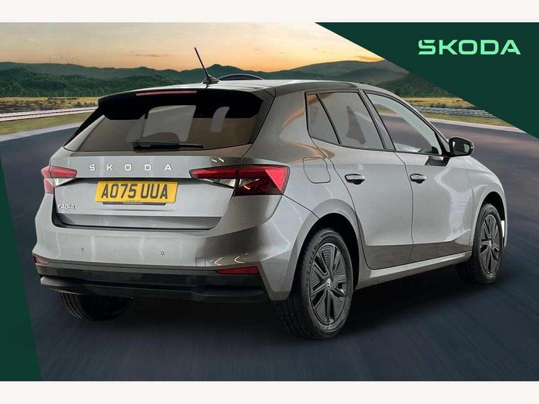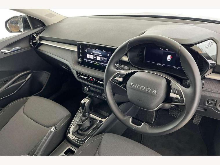 Advanced driver attention and drowsiness monitor, Bluetooth connection, Driver alert system, Electromechanical power steering, Exterior temperature gauge, Service interval indicator, Traffic sign recognition, Virtual cockpit with 10.25" colour display, Wireless SmartLink for Apple CarPlay and Android Auto, 6 Speakers (4 in front and 2 in rear), Auxiliary socket for external MP3 player, DAB digital radio reception, Auto dimming rear view mirror, Body coloured bumpers, Door mirror integrated indicators, Front and rear electric windows, Front window wiper intermittent control, Headlight range control - Automatic, Ice scraper in fuel cap, LED 3rd brake light, LED daytime running lights with coming and leaving home feature, LED rear lights, Privacy glass, Rear LED fog light, Rear side wing doors, Rear window wiper with washing nozzles, Roof mounted spoiler, SKODA tailgate lettering in chrome, Unique dark chrome design logo on alloy wheels, 2 reading lights in front and 2 reading lights in rear, 3 rear headrests, Backrest split and folding, Central console with removable cup holder and storage box, Chrome handbrake release button, Dual zone air conditioning with climatronic electronic control, Fabric upholstery, Front centre armrest, Gearshift knob/handle in leather, Grain satin black interior door handles, Hand brake lever handle in leather, Height adjustable front headrests, Height adjustable front seats, Height adjustable steering wheel, ISOFIX and TopTether anchorage points to the outer rear seats, ISOFIX and TopTether on the front passenger seat, Luggage compartment lighting, Manually adjustable lumbar support in front seats, Pollen filter, Rear seat bench unsplit, Single front passenger seat, Skoda lettering on steering wheel, Storm grey headlining, Sun visors with mirror and airbag label on passenger side, Textile floor mats, Ticket holder, Ambient lighting pack - Fabia Hatchback, 3-point height adjustable front seats belts with pretensioner and force limiter, Automatic warning lights in case of crash, Driver and passengers airbag with switch off function, e-Call+, ESC including ABS, MSR, ASR, EDS, HBA and XDS, Front and rear seat belt warning, FRONT ASSIST (AEB City and AEB Inter Urban), Front side airbags, Head airbags, Hill hold control, One tone horn, Pedestrian protection, Three rear 3-points safety seat belts with pretensioner and force limiter including stop function for outer rear seat belts, Tyre pressure monitoring system, Anti-theft alarm system including immobiliser, interior monitoring, backup horn, and towing protection, Central locking with radio remote control, interior controls, SAFE function and 2 foldable keys, Colour Edition air vents, Grain satin black central console cover, Metallic grey upper decorative trim, Satin black door and side trim panel in front, Textile Kota grey lower decorative inserts, Anti-theft wheel bolts protection, Super-low rolling resistance tyres,