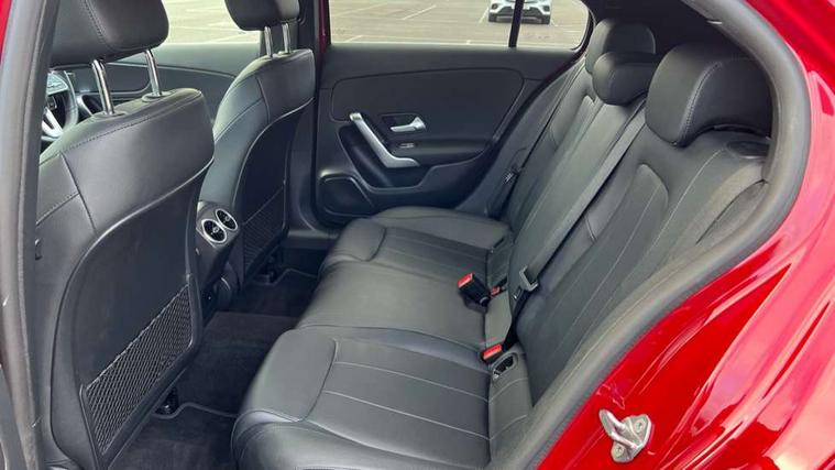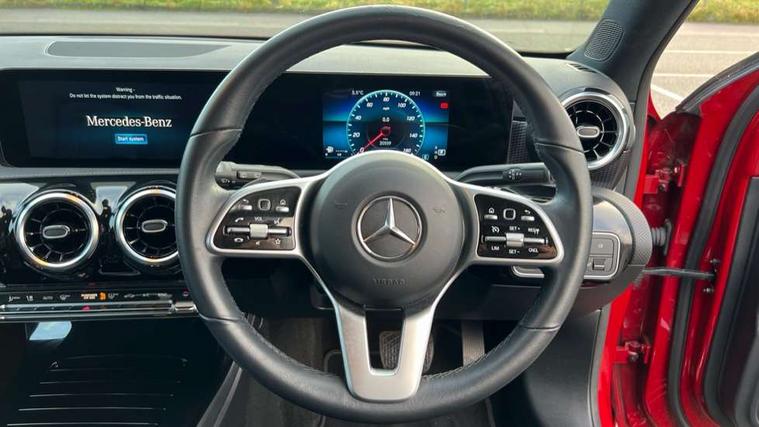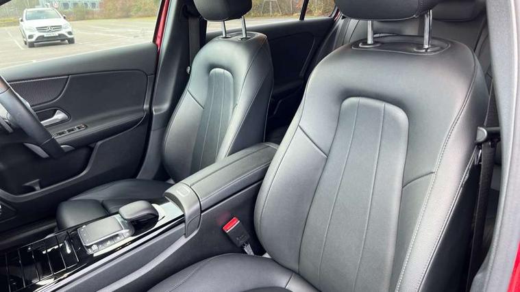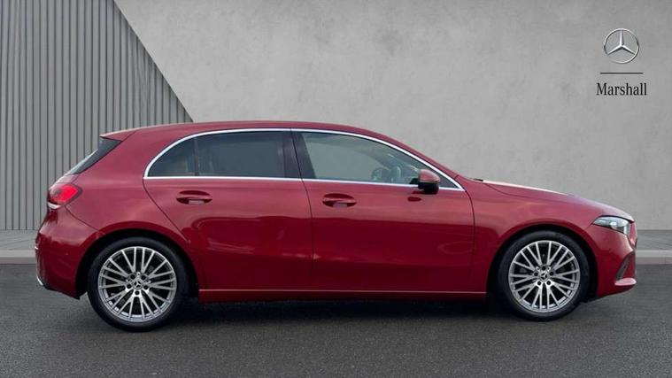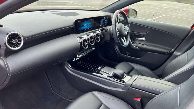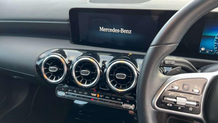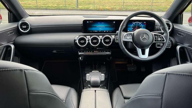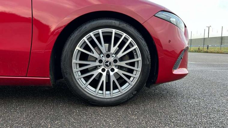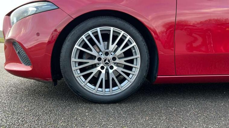 10.25" media display, 180 degree rear view camera with parking guidelines, 7" colour screen in instrument panel, Active parking assist with visual and audible warning of detected obstacles, Attention assist, Brake pad wear indicator warning light, Car wash mode, Cruise control + speed limiter, Direct steering, Dual bluetooth interfaces, DYNAMIC SELECT with a choice of driving modes (ECO, Comfort, Sport and Individual), ECO start/stop function, Fluid level warning indicator for fuel, oil, coolant and washer fluid, Hard-disk navigation, Hey Mercedes Voice activation, Lamp failure indicator, Lane keeping system, Mercedes me connect including emergency call system, accident recovery, breakdown and maintenance management, Mercedes me remote services, Outside temperature gauge, Owners manual in English, Pre-installation for private car sharing, Preinstallation for Mercedes Benz link, Service indicator (ASSYST), Smartphone integration with Apple CarPlay and Android auto, Speed sensitive power steering, Trip computer, Ultrasonic sensors positioned in the front and rear bumpers, Lowered comfort suspension, Rear axle torsion beam, 2 USB ports (type C) in rear stowage compartment and one in front of center console, 6 speakers, DAB Digital radio, MBUX multimedia system with DAB digital radio and touchpad including satellite navigation, Mercedes-Benz sound system - 100W, 4 Electric Front and Rear windows, Adaptive brake lights, Automatic headlights, Black weather strip, Body colour bumpers, Body colour door handles, Body colour side skirt, Body coloured door mirrors, Chrome beltline trim, Diamond radiator grille with black pins with one louvre in silver + chrome insert, Electric adjustable and heated door mirrors with integrated LED side indicators, Exhaust system - Twin visible tailpipes in polished stainless steel, Headlamp assist automatic headlamp activation, Heated glass rear windscreen + timer control, LED High level third brake light, LED high performance headlamps with integrated LED daytime running lights, LED tail lamp, Privacy glass, Radio aerial, Rain sensing windscreen wipers with two sensitivity settings, Rear fog lights, Rear side wing doors, Rear wiper, Window line trim strip in chrome, 3 seat bench in 2nd row, 3 Spoke leather multi function steering wheel, 40:20:40 split folding rear seats, Artico man-made leather upholstery, Auto Mercedes-Benz child seat recognition sensor, Black air vents with surround in silver chrome, Black roof lining, Controller on centre console with chrome surround, Front centre armrest with storage compartment, Front comfort seats with adjustable head restraints, Front door sills with Mercedes Benz lettering, Front seat backs luggage nets, Front seat cushion length adjustment, Gearshift paddles on steering wheel, Heated front seats, Height/reach adjustable steering column, Interior mirror with reading lamps in black and frameless, Manual height adjustable front seats, Rear head restraints, Seat occupancy sensor for front passenger seat, Single front passenger seat, Stowage compartment in centre console with retractable cover, Sunvisors with illuminated vanity mirrors, Touchpad on center console, Twin front cupholders, Two zone thermotronic luxury automatic climate control, Velour floor mats, Light and sight pack - A Class, Mirror package - A Class, Seat comfort pack - A Class, 3 rear 3 point seatbelts, ABS with Brake Assist, Active bonnet, Active brake assist includes forward collision warning system with autonomous braking, Adaptive brake assist with hold function and hill start assist, Black seatbelts, Childproof locks manually operated for rear doors and electrically operated for rear power windows, Crash responsive emergency lighting, Driver and passenger head and side airbags, Drivers knee airbag, Dual stage driver/passenger airbags, Electronic parking brake, ESP curve dynamic assist, ESP with ASR, Front and rear seatbelt reminder, ISOFIX and top tether child seat fixing points in two outer rear seats, Tyre pressure monitoring system, Warning triangle and first aid kit, Window airbags, Alarm system/interior protection/immobiliser, Keyless Go, Remote central locking and crash sensor with emergency opening function, Urban guard vehicle protection system with immobiliser and interior protection, Dark carbon fibre interior trim, 18" multi spoke light alloy wheels painted in himalayas grey with a high sheen finish, Summer tyres, Tirefit sealant kit,