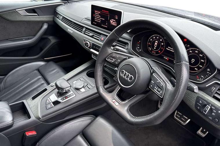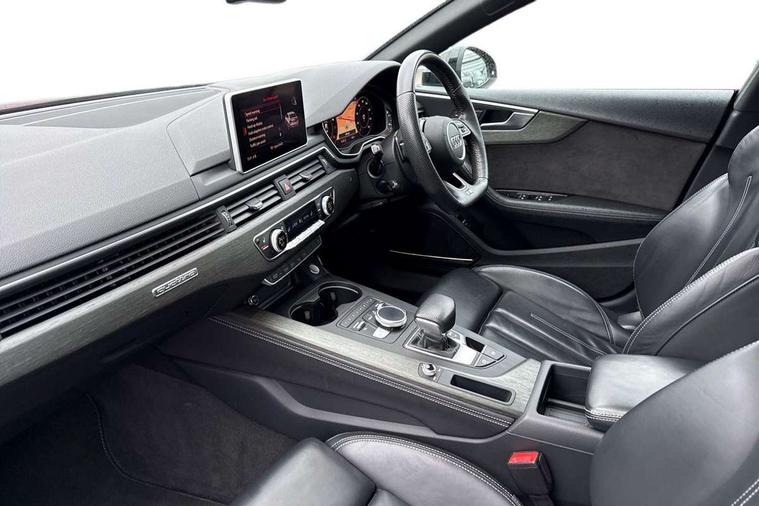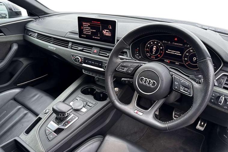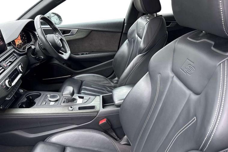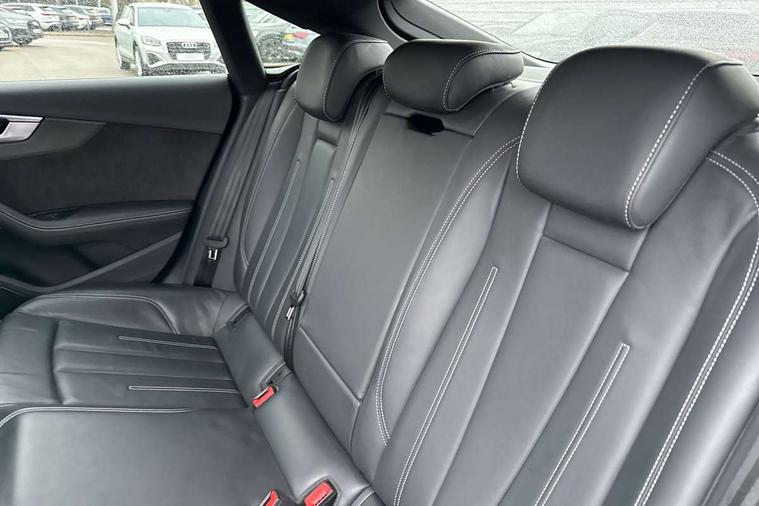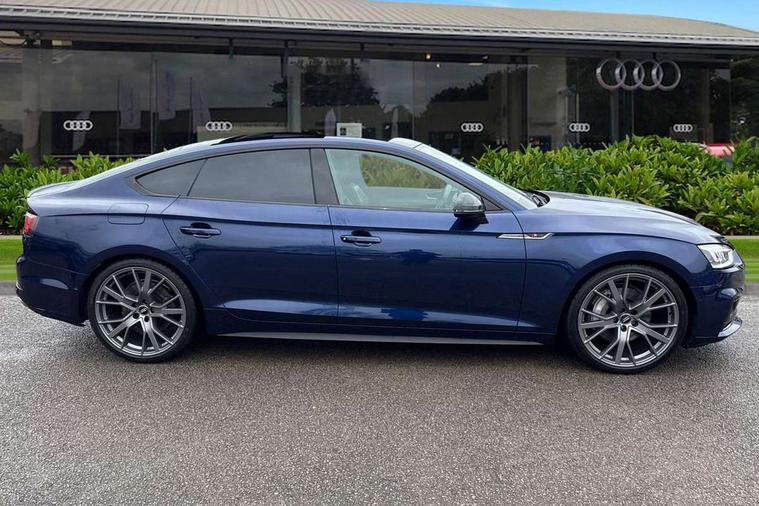 7" Colour driver information system, Audi connect, Audi drive select, Audi parking system plus with front and rear sensors, Audi phone box with wireless charging, Audi side assist + pre sense rear, Audi smartphone interface, Automatic start-stop system with coasting functionality and efficiency programme, Bluetooth interface, Electro-mechanical power steering, Head up Display, MMI navigation plus with MMI touch, Power tailgate, Service interval indicator, Virtual cockpit, Voice control system, Adaptive comfort suspension with damping control, CD player, DAB Digital radio, Two SDXC card slots, Air inlets in titanium black with matt aluminium inlay, Audi matrix LED headlights with LED rear lights + dynamic front and rear indicators, Auto dimming rear view mirror, Body colour bumpers, Chrome plated exhaust pipe, Door mirrors folding with auto-dimming and memory function, Electric adjustable heated door mirrors, Electric front windows, Front fog lights, High gloss black door mirrors, Panoramic glass sunroof, Rain and light sensors, Rear diffuser in Twilight grey matt with honeycomb grille, S Line body styling, S line sill plates, S style high gloss black rear spoiler, Side and rear windows privacy glass, Titanium black frame and radiator grille, Titanium black front and rear air intakes, Titanium black window surround, Windscreen with acoustic glazing, 2 x USB charging port with aux input socket, 3 spoke flat bottom high multi-function leather steering wheel, 40/20/40 split folding 3 seater rear bench seat, Adjustable steering column, Black headlining, Black perforated leather gearknob, Centre console with cupholders, Contrast stitching on seats, steering wheel and gear lever gaiter, Deluxe 3 zone electronic climate control, Electrically adjustable front seats - driver seat with memory, Fine nappa leather upholstery + front sport seats, Front centre armrest, Front head restraints, Front/rear floor mats, Gearshift paddles, Heated front and outer rear seats, Illuminated door sills, ISOFIX child seat mounting and top tether, Jack and tool kit, Luggage compartment mat, Pneumatically adjustable lumbar support with massage function, Rear headrests, S embossed logo on front sport seats, Stainless steel pedals and foot rest, Advanced parking assistance pack - A5/RS5, Comfort and sound pack - A5/RS5, Driver assistance pack - A5/RS5, Extended interior upholstery pack - A5/RS5, Extended LED interior light pack - A5/RS5, Non Smokers pack, 3x3 point rear seatbelts, 6 airbags - Driver, front passenger, curtain and side airbags, Electromechanical parking brake, Electronic Stabilisation Control (ESC) including ABS, ASR and EDL, Front passenger airbag deactivation, Height adjustable front seatbelts, Hill hold function, Multi-Collision braking, Pop-up bonnet for pedestrian protection, Pre sense city, Seatbelt monitoring, Tyre pressure warning, Variable restraint system, Warning triangle and first aid kit, Anti theft alarm system, Anti theft wheel bolts, Immobiliser, Keyless Go, Remote central locking, Oak natural grey inlay, 20" 5 V spoke star design alloy wheels with matt titanium finish, Tyre repair kit,