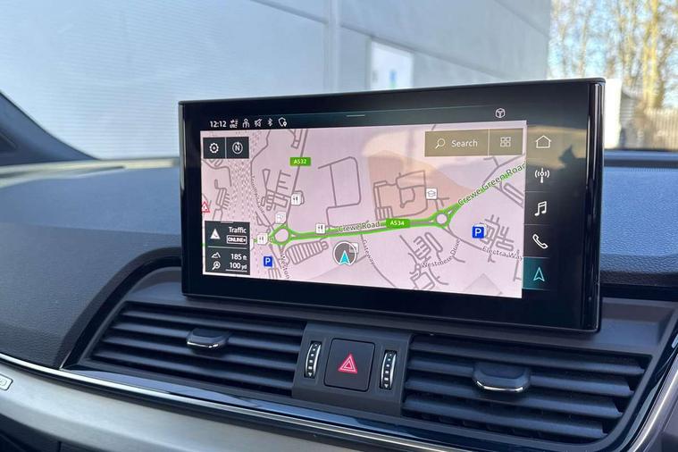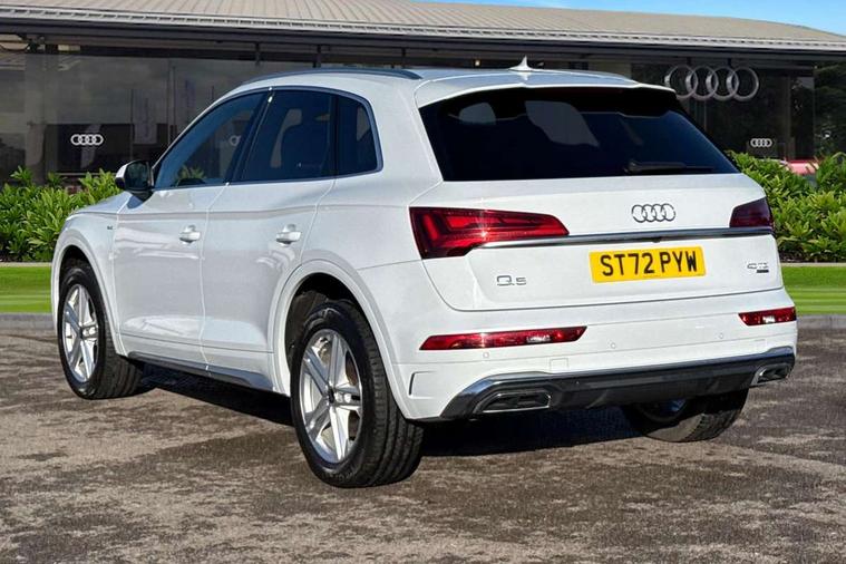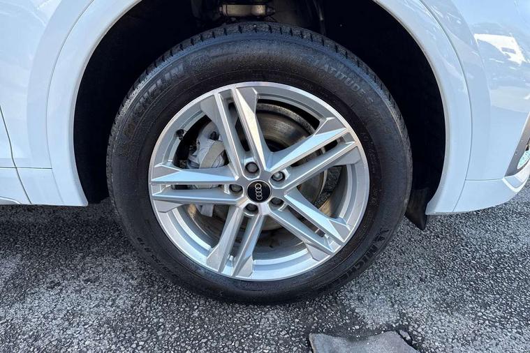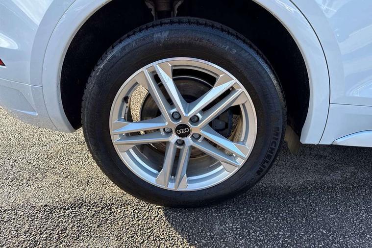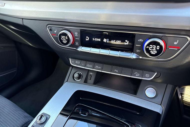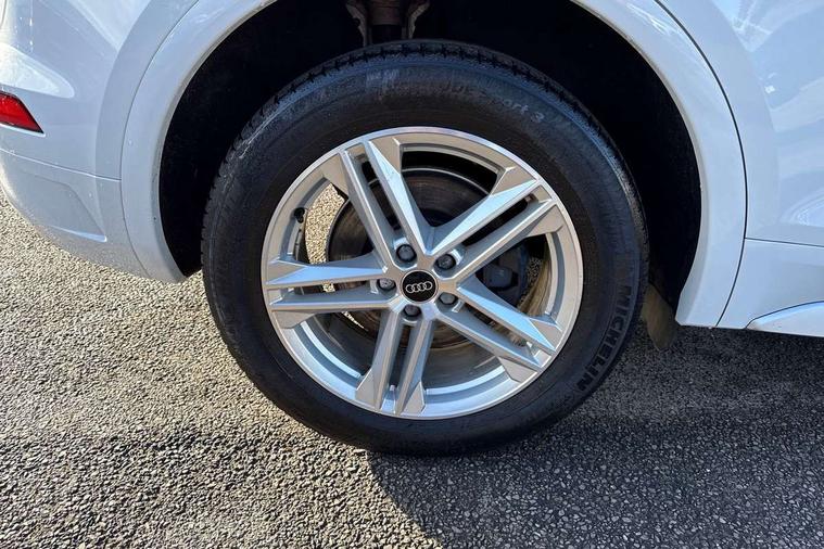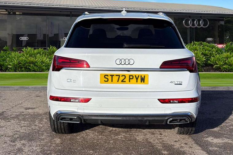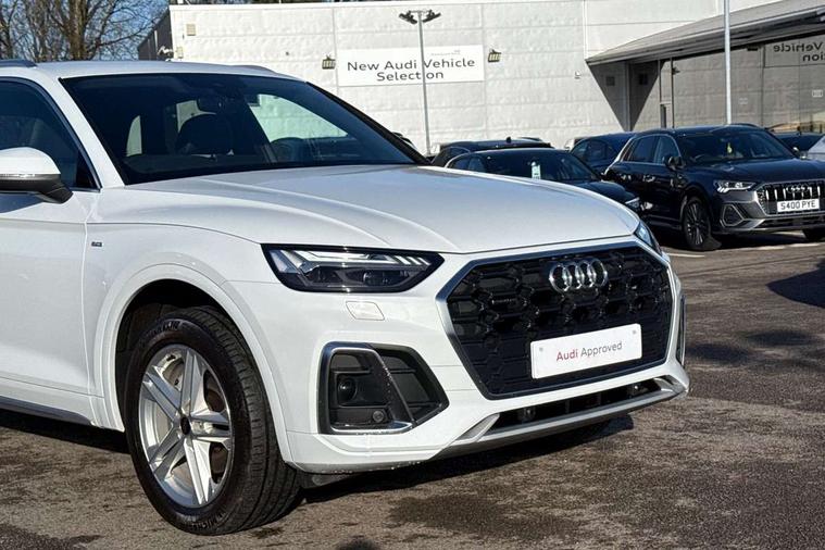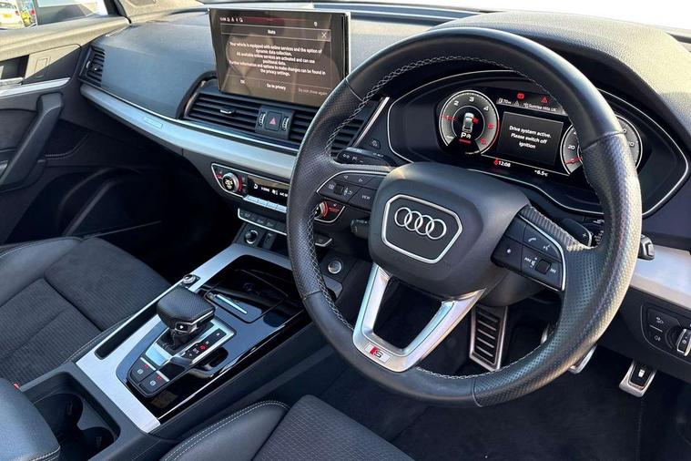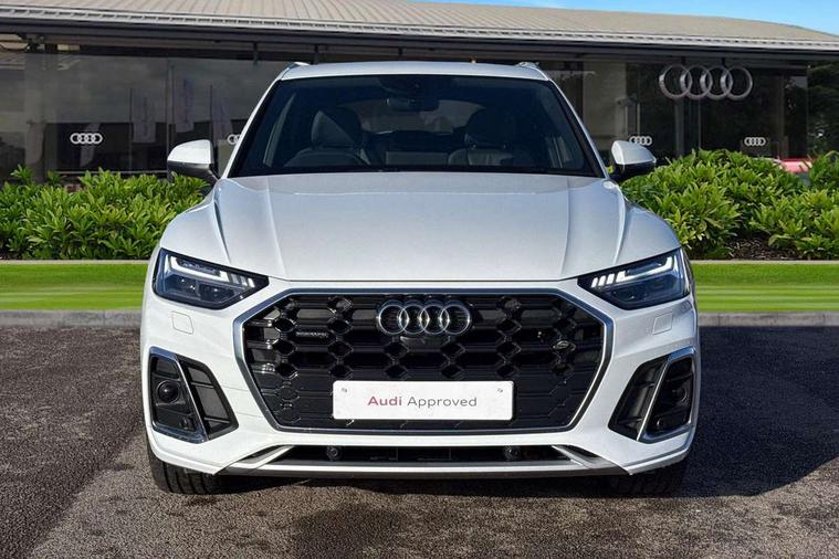 Audi connect safety and service (e-call), Audi connect with Amazon Alexa Integration, Audi drive select, Audi virtual cockpit plus with 12.3" screen and three different layout designs, Audi wireless smartphone interface, Automatic start-stop system with coasting functionality and efficiency programme, Bluetooth interface, Electro - mechanical power assisted steering, MMI navigation plus with 10.1" touch screen, Power tailgate, Reversing camera, Service interval indicator, Voice control system with Audi hotword activation "Hey Audi", Diesel particulate filter, Quattro on demand, S line sports suspension, DAB Digital radio, Acoustic windscreen, Aluminium roof rails, Audi matrix LED headlights with dynamic front and rear indicators, Auto dimming door mirrors, Auto dimming rear view mirror, Automatic headlight adjustment, Automatic headlights and windscreen wipers, Body colour bumpers, Body colour door mirrors, Body colour rear diffuser with matt aluminium silver surrounds, Body colour underbody protection, Chrome plated exhaust trims, Daytime running lights, Door sills in Selenite silver, Electric adjustable/heated/folding door mirrors, Front air inlet surrounds in aluminium, Front and rear electric windows, Front radiator grille in honeycomb design, Headlight washers, High level LED brake light, Lower bumpers painted in contrast Manhattan grey, Rear chrome trim strip below lights, Rear privacy glass and rear side windows, Rear side wing doors, Rear wiper, Roof bars, S Line badges on the front wings, S Line front and rear bumpers, S Line rear spoiler, S Line side skirts, 2 x USB charging port with aux input socket, 3 rear headrests, 40:20:40 split folding 3 rear bench seat in 2nd row with rear centre armrest, Black cloth headlining, Comfort front centre armrest, Contrast stitching on seats, steering wheel and gear lever gaiter, Deluxe 3 zone electronic climate control, Front/rear floor mats, Gear lever in black leather, Heated front seats, Height adjustable front head restraints, Height/reach adjustable steering column, Illuminated door sill trims with S logo, ISOFIX child seat mounting and top tether, Luggage compartment cover, Manual seat adjustment with 4-way electric lumbar support, Removable luggage compartment floor, Single front passenger seat, Stainless steel pedals, Sunvisors with vanity mirrors, High gloss pack - Q5, LED interior light pack - Q5, 3 point seatbelts on all seats, 6 airbags - Driver, front passenger, curtain and side airbags, Electrically operated child locks on rear doors, Electromechanical parking brake, Electronic stabilisation control including ABS, ASR and EDL, Front passenger airbag deactivation, Hill descent control, Hill hold assist, Multi collision brake assist, Pop-up bonnet for pedestrian protection, Pre sense city, Seat belt force limiter, Seatbelt monitoring, Tyre pressure warning, Warning triangle and first aid kit, Anti theft alarm, Anti-theft wheel bolts, Keyless Go access/ignition system, Remote central locking, Matt brushed aluminium inlays,