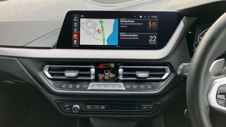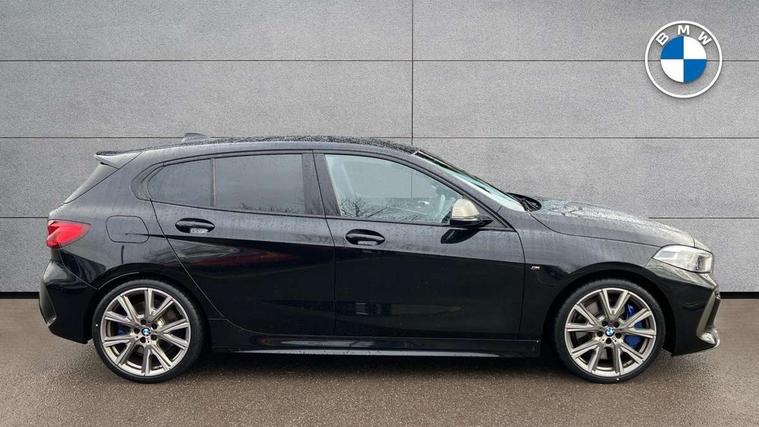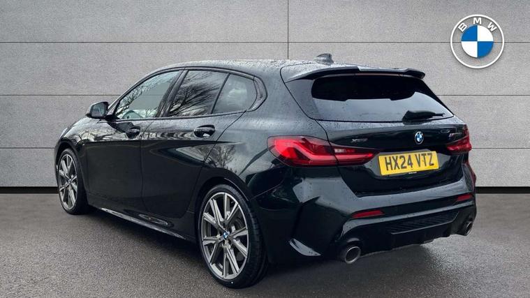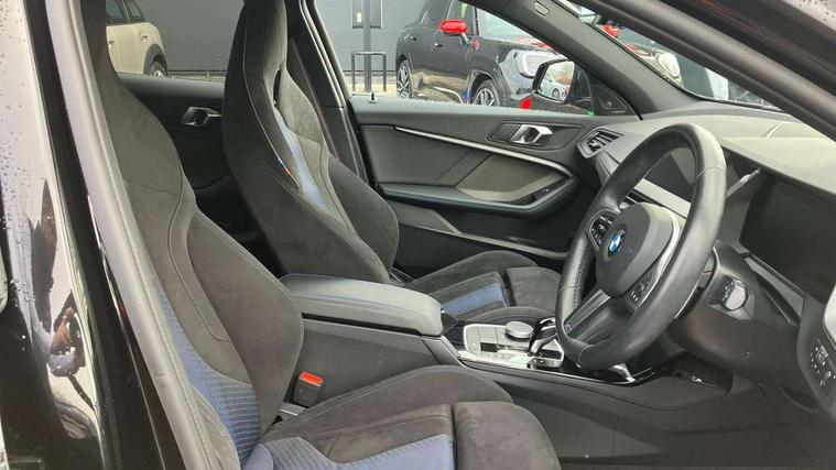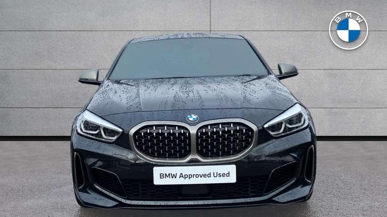 Active guard plus, Attentiveness assist, BMW ConnectedDrive online services, BMW Teleservices, Check Control warning system for monitoring of lights and door/luggage compartment open warning, Cruise control with speed limiter, Eco pro mode, Electric power steering, Electro hydraulically controlled multi-plate clutch transfers drive to rear axle and with power take-off device located on the front differential., Energy efficient operating strategy, Front axle single joint with specific axle kinematics to minimise drive influences on steering + provide increased rigidity agile driving behaviour, Gearshift time display in manual mode, Integrated owners handbook, Lane departure warning system, M Sports steering with M135i xDrive specific settings, Oil sensor for level and grade, On board computer, Optimum shift indicator, Personal Profile, Pull away assistant, Rigidly mounted rear subframe - Multi link construction with separate spring / damper configuration and excellent driving characteristics, Speed limit Info including no-overtaking indicator, Sporty fast gear shifting in sport mode, Aluminium lightweight construction, Anti roll bar front and rear, Balancer shaft, Double VANOS, Drive Performance Control, Eight speed sport automatic transmission with gearshift paddle switches, Electronic differential lock, Electronic selector lever, Engine cover with M performance designation, High precision injection, Larger fuel tank capacity (50 litres), Launch control, M135i specific heavily de-throttled engine intake air guide, M135i specific high-performance cooling package, M135i specific larger turbocharger with integrated divert-air valve, Petrol Particulate Filter, Twin tube gas filled shock absorbers with degressive characteristic curve, VALVETRONIC engine management, Variable, stepless and infinitely adjustable distribution of drive torque between the front and rear axles, xDrive intelligent all wheel drive with M135i specific reinforced components, DAB Digital radio, Auto dimming rear view mirror, Automatic headlight beam throw control, Automatic windscreen wipers and automatic headlight, Body colour door handles, Body colour roof trims, Cerium grey exterior mirror caps, Direction indicator side lights in exterior mirrors, Electrically adjustable exterior mirror with mirror adjustment switch on drivers armrest and aspheric on driver side, convex on passenger side, Exhaust tailpipe, Cerium Grey with bevelled finish - twin, round 100mm, left and right split, Fading support, Folding side mirrors with auto dimming/folding wing mirrors with auto dimming, Follow me home headlights, Front and rear bumper system with replaceable deformation elements, Front and rear electric windows with open and close fingertip control, anti trap facility and comfort closing, Front door sill finishers with M135i designation, Green tinted heat protection glazing, High gloss shadowline window frame, Recess cover mirror frames and B/C pillar embelisher trim, High level third brake light, Integrated front windscreen with washer jets, Kidney grille frame in Cerium Grey with Mesh design, LED daytime running lights, LED eyebrow turn indicators, Lightweight engineering, M logo designation side in cerium grey, M Performance exhaust system with valve control and minimised exhaust back pressure, M Performance specific setup, M Sport spoiler, Matt black air guide grilles, Matt black wheel arch trim, Model designation on electric bootlid includes xDrive designation for M135i xDrive, Nearside reverse light in rear light cluster, Preparation for high beam assistant, Rear fog lights, Rear side wing doors, Rear window wiper, Reinforced crank drive, new pistons and adapted con rods, Shark fin antenna, Trailer stabilisation logic, Visible VIN plate, Welcome lighting, 12V power socket in front centre console with blanking plug, 3 rear seat head restraints, 3 seat bench in 2nd row, 3 spoke sports leather steering wheel with black leather and stitching, pearl chrome decorative finish, specific M Badge, Anthracite headlining, Black boot net with lashing eyes, Cargo function on 2nd seat row, Child seat ISOFIX attachment for two outer rear seats and front passenger seat with anchorage points, Conditioned based service, Driver and front passenger backrest net on rear, Driver and front passenger seat heating, Driver side folding compartment in instrument panel, Folding rear clothes hook, Four grab handles integrated in roof lining, Front and rear door pockets with bottle holders, Front and rear side armrest integrated into door trim, Front armrest, Front M sports seats, Glove compartment, Height adjustable front head restraints, Luggage compartment for bag hooks on left and right, foldable luggage compartment liner and four lashing eyelets, Manual adjust steering wheel, Multi-function controls for steering wheel, Single front passenger seat, Storage compartment in centre console, Storage compartment in luggage compartment, Stowage of the parcel shelf in luggage compartment trim, Sun visors with vanity mirrors and insert tab, Two front centre console cupholders, Two zone automatic air conditioning, Type C two USB ports in rear centre console, Velour floor mats, Additional interior lighting pack - 1 Series M135i, BMW live cockpit professional pack- 1 Series, Connected pack professional - 1 Series, Interior lights pack - 1 Series, M Sport exterior styling aerodynamics pack - 1 Series 135i, 2 tone horn, 3 point seatbelts on all seats, front pyrotechnic belt tensioners, stopper and belt force limiters, rear coded belt buckles, Airbags - Front driver/passenger, front and rear curtain head protection, front side, manual deactivation of front passenger airbag, Anti lock braking system (ABS) with brake assist, BMW emergency call, Brake drying, Braking readiness, Child proof locking system in rear door, City braking function, Comfort modes, Cornering brake control, Crash sensor activating of airbags, Unlocking doors, hazard warning lights, fuel cut off, 