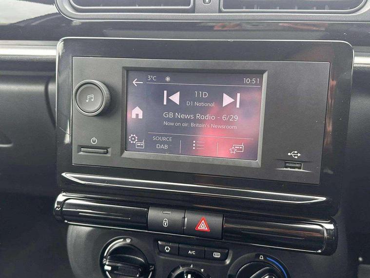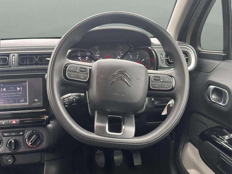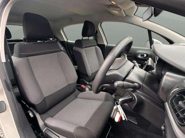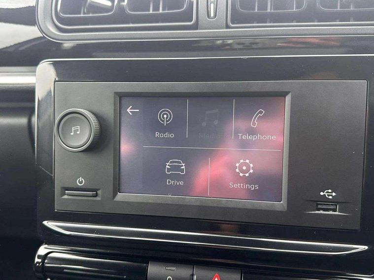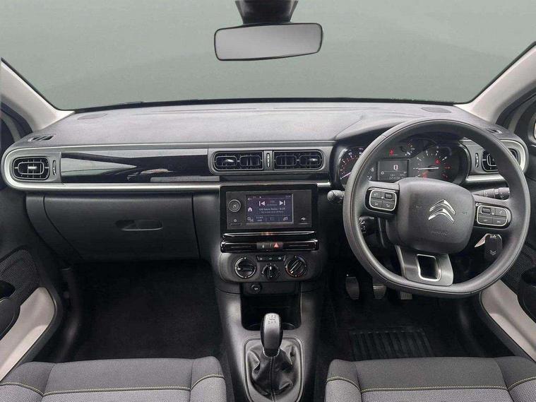 Coffee Break Alert, Cruise control + speed limiter, eCall emergency call system, Exterior temperature display, Instrument cluster with white LCD and analogue gauges, Multi function trip computer, Variable assistance power steering, Radio with DAB Digital Radio, 5" Black/White Touchscreen and Bluetooth, 3D rear light signature, Automatic activation of hazard warning lights, Body colour bumpers, Body colour door handles, Chrome decoration on front face, under chevrons and around daytime running lights, Citroen illuminated signature in LED headlights and LED daytime running lights, Electric front windows, Electrically adjustable door mirrors, Fog lights integrated into front bumper, Front windscreen wipers with two speeds and intermittent mode linked to vehicle speed, Heated door mirrors, LED Headlights, LED third brake light, Manual folding door mirrors, Manual rear windows, Matt black finish B pillar, Polar white fog light surround, Polar white rear view mirror caps, Rear side wing doors, Rear windscreen wiper with intermittent mode linked to vehicle speed, Standard day night switchable interior rear view mirror, Tinted side windows, You sticker, 1/3 to 2/3 split folding rear seat, 12V socket, Boot light, Cloth upholstery, Driver and passenger's sun visor with courtesy mirror, Driver's seat height adjustment, Front lighting panel, Front seats adjustable with forward back slide and adjustable backrest, Height adjustable front head restraints, Height/reach adjust steering wheel, ISOFIX mounting on outer rear seats with top tether and labels indicating fixing points, Manual air conditioning, Parcel shelf, Row 2 - Three seats with individually adjustable head rests, Seatbelt unfastened on the move audible and visual alert for front and rear seats, Single front passenger seat, Soft touch gear lever with leather effect gaiter, Standard ambience, Steering wheel with satin chrome elements and audio/telephone controls, Three rear headrests, Upholstered armrest in front and rear doors, Safety pack 1 - C3, ABS with Electronic brakeforce distribution and Emergency braking assistance, Driver and front passenger seatbelts with pyrotechnic pretensioners and force limiters, Driver's airbag, Electric child locks, ESP with anti skid system, Front passenger airbag, Front passenger airbag deactivation, Front side airbags + front/rear curtain airbags, Hill start assist, Manual parking brake with chrome finish button, Mono-tone horn, Outer rear seats with pretensioners and force limiters, Three rear 3-point seatbelts, Tyre pressure monitoring system, Anti theft alarm, Automatic door and boot locking when moving off with automatic unlocking in case of impact, Central locking with locked indicator and interior one touch lock button, Immobiliser, Remote control central locking with two plip keys, Gloss black dashboard finish with grey surround, 15" steel wheels with arrow wheel covers, Tyre puncture repair kit,