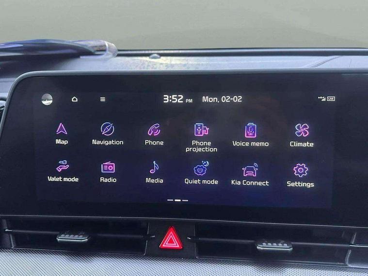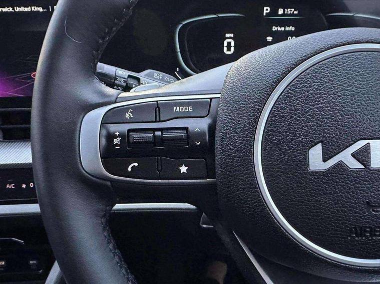 12.3" Display with navigation, 4.2" supervision colour cluster display, Apple car play/Android Auto with voice control, Drive mode selector, E-call, Forward collision avoidance assist (FCA) - city/pedestrian/cyclist/junction covering, Front and rear parking sensors, Highway Driving Assist (HDA), Intelligent speed limit assist, Kia Connect (UVO), Lane Following Assist (LFA), Lane keep assist, Low washer fluid warning, Rear view monitor, Reversing camera system integrated into centre fascia screen, Smart cruise control with stop and go functionality, Speed sensitive power steering, Trip computer, Windscreen washer level indicator, Intelligent Stop and Go, 6 speaker audio system, Bluetooth audio streaming, DAB Radio with MP3, Rear USB port, Steering wheel mounted audio controls, USB C type charging ports on centre console, USB C type charging ports on side of front seats, USB port for connection of a media device, All round electric windows with drivers and front passenger auto up/down function, Automatic headlight control system, Automatic window defogger, Backlite glass heated with timer, Black bumpers, Body colour exterior door handles, Body colour radiator upper garnish and door garnish, Electrically adjustable/heated/folding door mirrors with LED indicators, Front and rear chrome skid plates, Gloss black door mirrors, Gloss black radiator grille, Gloss black side sill and wheel arch body mouldings, Glossy black roof rack, High beam assist, Interior electrochromic mirror, LED daytime running lights, LED front fog lamps, LED headlamps (low and high beam - MFR type), LED High mounted stop light, LED rear combination lamp, Rain sensing wipers with aero blades, Rear fog lamp, Rear privacy glass, Rear side wing doors, Rear spoiler, Rear wiper, Satin finished beltline, Silver coloured inserts to bumpers, Tinted rear glass, Trailer stability assist, 12V power socket in front centre fascia and luggage compartment, 2nd row personal lamps, 3 seat bench in 2nd row, 3 x passenger assist grips, 40/20/40 split folding rear seat, All-round height adjustable headrests, Black headlining, Centre console storage box, Cupholders in rear armrest, D-Shaped sports leather steering wheel and perforated inserts with GT-Line logo, Door courtesy lamps, Drink holder at centre armrest, Driver and front passenger side sunvisors with illuminated vanity mirrors, Driver's seat manual height adjust, Drivers seat power lumbar support, Front and rear door storage, Front seat and rear pockets, Front/rear centre armrests, Gear shift indicator, Glovebox illumination, Heated front seats, Heated steering wheel, Interior door lock/unlock function, ISOFIX Child seat top tethers and anchor fixings outer rear seats, Luggage area light, Luggage area load cover, Luggage net with hooks, Metal paint interior door handles, Overhead console lamp, Paddle shift controls, Rear cabin light, Rear coat hooks, Single front passenger seat, Sports pedals, Suede leather upholstery, Three zone climate control, Tilt/telescopic adjustable steering wheel, Ventilation ducts to rear compartment, Active front headrests, All round 3-point seatbelts, Anti-lock braking system (ABS), Dual front side airbags, Dual horn, Electronic parking brake, Electronic stability control with downhill brake control, Front passenger airbag cut-off switch, Front seatbelt pretensioners + load limiters, Height adjustable front seatbelts, Hill start assist control (HAC), Impact sensing auto door unlocking, Multi collision brake assist, Rear door child safety locks, Rear seat alert system, Traction control, Twin curtain airbags, Twin front airbags, Tyre pressure monitoring system, Advanced anti-theft system including immobiliser and alarm, Door deadlocks, Engine Start/Stop Button with Smart Entry System, Locking wheel nuts, Speed sensitive auto door locking, Visible vehicle identification number, Aluminium pattern finish centre fascia and door garnish, 19" GT-Line alloy wheels, Tyre mobility kit,