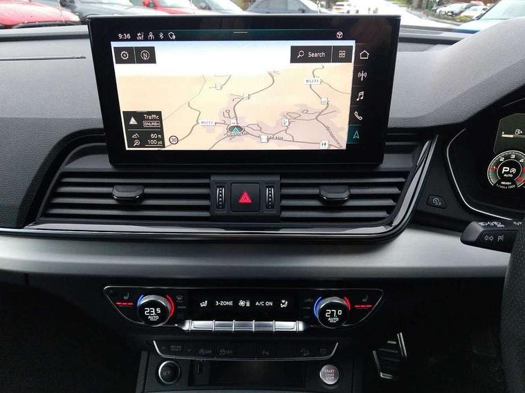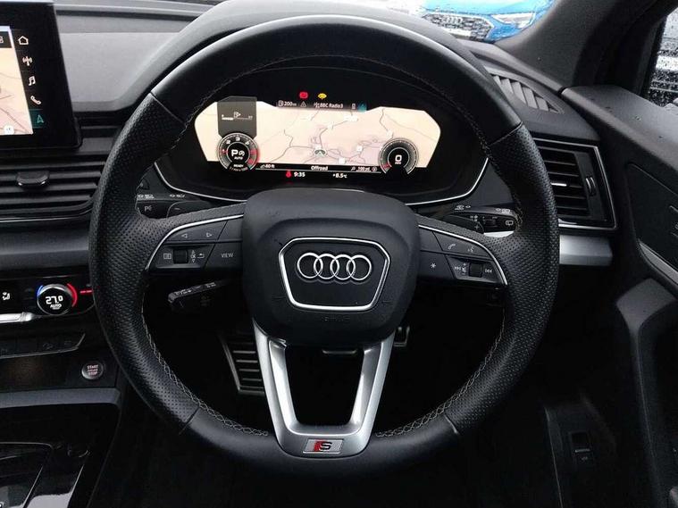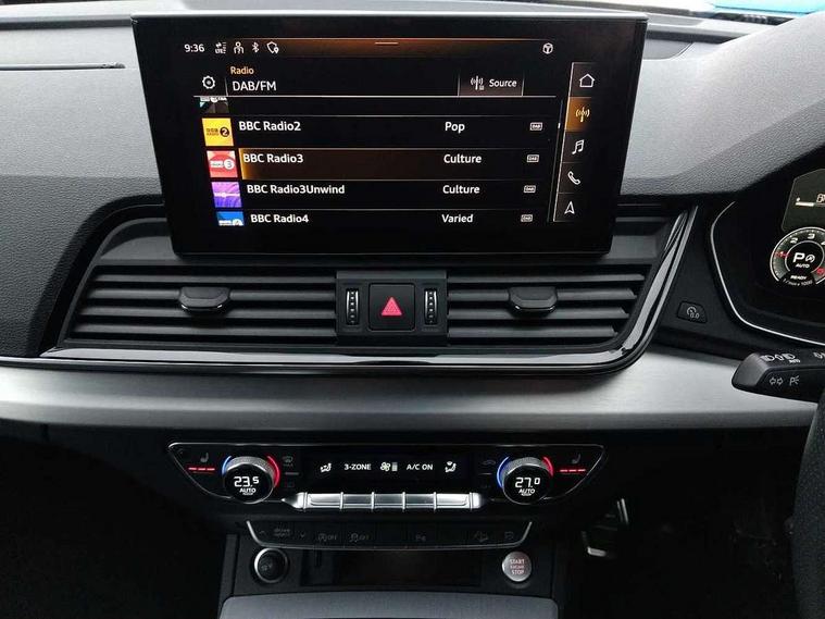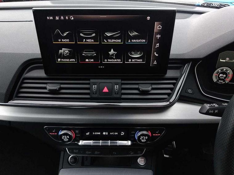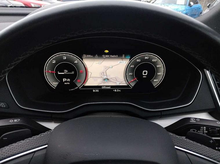 Amazon alexa Integration, Audi connect safety and service (e-call), Audi drive select, Audi lane departure warning, Audi smartphone interface includes wireless Apple carplay/Android Auto, Audi Virtual Cockpit - 10.25" display, Bluetooth interface, Camera based traffic sign recognition, MMI Navigation Plus with high resolution 10.1 inch touchscreen colour display, Power operated tailgate, Progressive steering, Reversing camera, Service interval indicator, Start stop system with recuperation, Voice control system with natural language interaction, Sports suspension, 2 USB-C ports with charge and data functions, DAB digital radio module, SONOS premium sound system, Acoustic windscreen, Aluminium roof rails, Aluminium window trim, Auto dimming frameless rear view mirror, Body coloured bumpers, Electrically folding, adjustable and heated door mirrors with integrated LED side indicators and kerb view function for passenger side, Front and rear electric windows, Front fog lights, Front side air inlets in matt platinum grey, Front spoiler blade in matt platinum grey, Grille vertical bars in aluminium silver/Matt, High gloss black finish B and C pillars, LED headlights with LED daytime running lights, LED rear lights, LED third brake light, Privacy glass dark tinted rear and rear-side windows (from B-pillar backwards), Rain and light sensors, Rear diffuser strip in matt titanium black, Rear side wing doors, Rear wiper, S line badges on front wings, S Line front and rear bumpers, Side skirt insert in matt Platinium grey, Silver chrome grille surround, Tinted rear windows, Titanium black radiator grille, Variable front intermittent wipers, 12V socket in rear centre console, 3 seat bench in 2nd row, 40:20:40 folding with manual adjustment for 60:40 forwards/backwards position and backrest angle, Adjustable rear seat bench/backrest with centre armrest and cupholder, Black cloth headlining, Dual zone electronic climate control, Front and rear black floor mats with contrast stitching in rock grey, Front and rear headrests, Front and rear roof module including reading lights, Front centre armrest, Glove compartment lighting, Heated front seats, Height and reach adjustable steering wheel, Illuminated door sill trims with S logo, ISOFIX child seat mounting for front passenger with airbag deactivation and outer rear seat including top tether attachment point for outer rear seats, Luggage compartment light, Manual front seats with height adjustment, Perforated leather gearknob, Single front passenger seat, Stainless steel luggage compartment sill finisher, Stainless steel pedals, Non smoking pack - Q3, 3x3 point rear seatbelts, 6 airbags - Driver, front passenger, curtain and side windows, Electrically operated child locks on rear doors, Electromechanical parking brake, Electronic stabilisation control including ABS, ASR and EDL, Front seatbelt reminder, Hill descent control, Hill hold assist, Pre sense basic, Seatbelt monitoring, Tyre pressure warning, Warning triangle and first aid kit, Anti theft alarm, Anti theft wheel bolts, Audi pre-sense front with pedestrain and cyclist recognition, Immobiliser, Remote central locking, Dark matt brushed aluminium inlay, Detail dashboard around MMI touch colour display in glass look, black with surround in aluminium look, Leatherette door armrest,