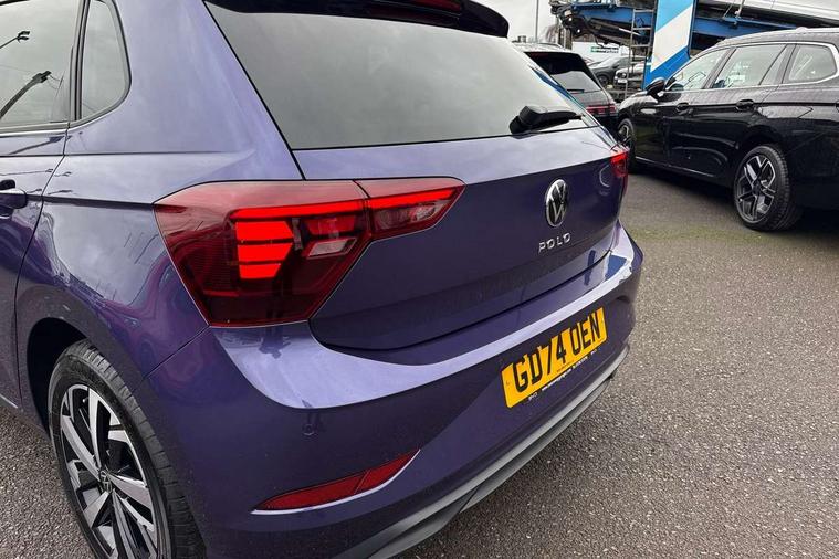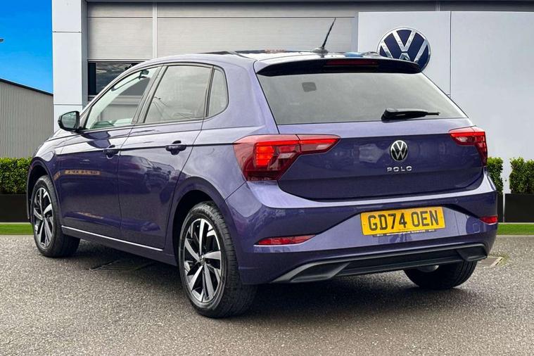 Advanced driver attention and drowsiness monitor, Bluetooth mobile phone interface, Dynamic road sign display, Emergency call service, Multifunction front facing camera for distance control, Park distance control, Power assisted speed sensitive steering, Predictive adaptive cruise control without follow-to-stop and speed limiter, Preparation for navigation system with media and internet package, Preparation for We connect and We connect plus, Rear view camera, Speedo and rev counter, electronic odometer, trip, service interval display and exterior temperature gauge, Standard rear axle, Travel Assist - Lane keeping system and traffic jam assist, Travel assist including emergency assist, Trip computer, Warning signal and warning light for front and rear seatbelts not fastened, Washer fluid level indicator, Wireless app connect, Front wheel drive, Rear shock absorpion, Start-stop system with battery regeneration (recuperation - energy recovery during braking), DAB Digital radio, Diversity antenna for FM reception, Front and rear 6 speakers, Automatic dimming interior rear view mirror, Automatic headlight control with LED separate daytime running lights with coming/leaving home function, Body colour bumpers with chrome inserts, Body colour door handles, Body colour door mirrors, Electric front windows, Engine badge deletion, Headlight range adjustment, Heat insulating and laminated safety glass windshield, LED Headlights, LED rear combination lamps, Power folding adjustable/heated exterior mirrors and front passenger exterior mirror lowering function, Rain sensor, Rear electric windows, Rear fog light, Rear side wing doors, Rear tinted glass from B-pillar backwards approx 65% tinted, Rear windscreen washer and wiper with interval delay, Third brake light, 12V power socket in centre console, 2 front and 2 rear reading lights with switch off delay and dimmer, 2 USB-C ports in the front, 2 USB-C charging sockets on the center console in the rear, 3 rear head restraints, 60/40 split folding rear seat and rear seat bench not split, Ceramique roof lining, Chrome plated radiator grille inserts, air vent surrounds and light switch surrounds, Door and side trim panel, Driver and front passenger seat height adjustment, Driver/passenger sunvisors with illuminated vanity mirrors, Front centre armrest, Front seat backrest storage pockets, Front standard seats, Handbrake lever handle in leather, Hartley/Thomas cloth upholstery, Headliner in recycled material, Isofix child seat preparation easy-fit (for two outer rear seats, and front passenger seat) compatible with I-size, Leather trimmed gear knob, Luggage compartment cover, Luggage compartment lighting, Removable luggage compartment floor, Single front passenger seat, Standard climatic zones, Standard pedal cluster, Three spoke leather wrapped multifunction steering wheel with shifting paddles, Light and vision pack - Polo, 3 point height adj front seatbelts + pretensioners, 3 point seat belt for centre rear seat, 3 point seatbelts, outer rear with ECE lable, ABS, Driver and front passenger airbag with front passenger airbag deactivation, Drivers and front passengers safety optimised head restraints, ESC (Electronic stability control) + EDL (Electronic Differntial lock) and ASR (Traction control), Extended and predictive pedestrian/ cyclist protection, Front assist with autonomous emergency braking (for Adaptive Cruise Control ACC up to 130 mph), Front curtain and side airbags with center airbag, Front disc brakes, Hill hold control, Manual child lock in rear doors, Rear drum brakes, Single tone horn, Tyre pressure loss indicator, Alarm with interior protection, Anti-theft alarm system with interior monitoring, backup horn, and towing protection, Anti-theft wheel bolts, Electronic engine immobiliser, Lava stone black gloss/matt decorative inserts in dash and front door panels, 16" Torsby alloy wheels, Low rolling resistance tyres,
